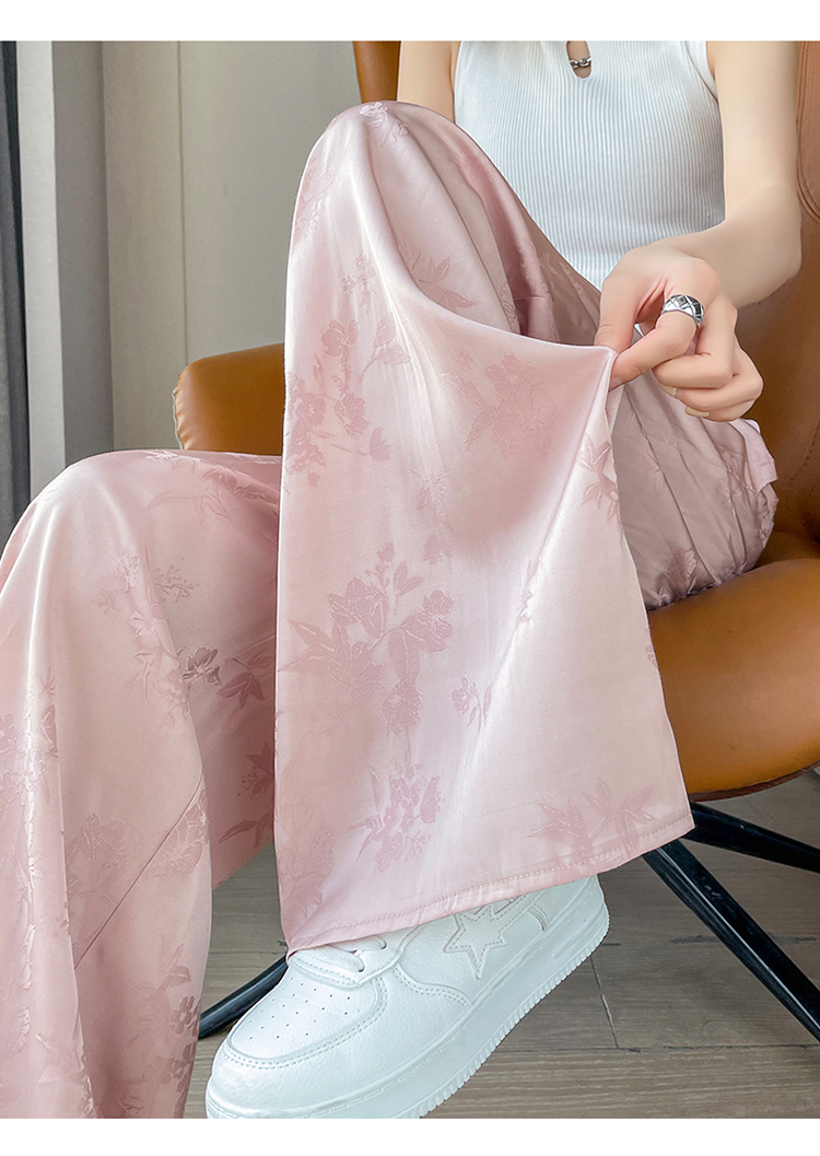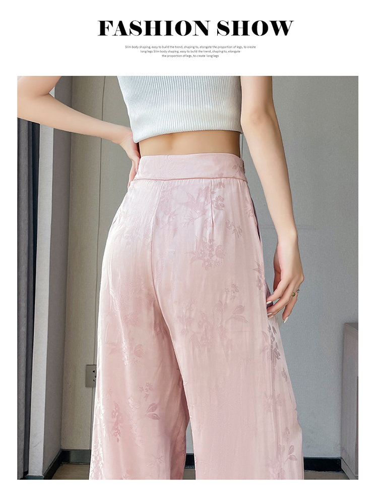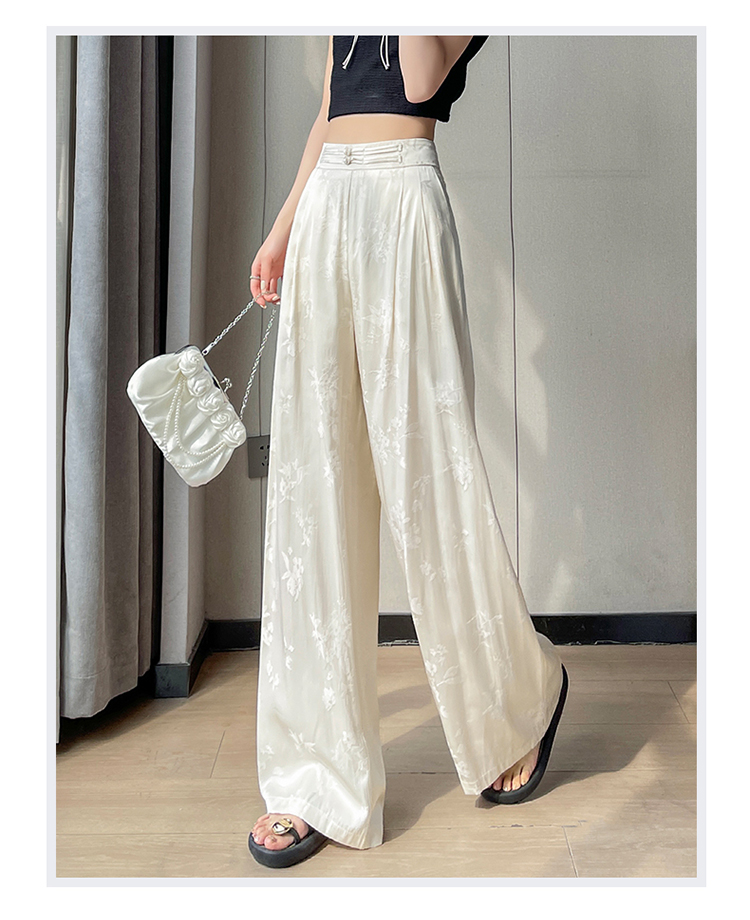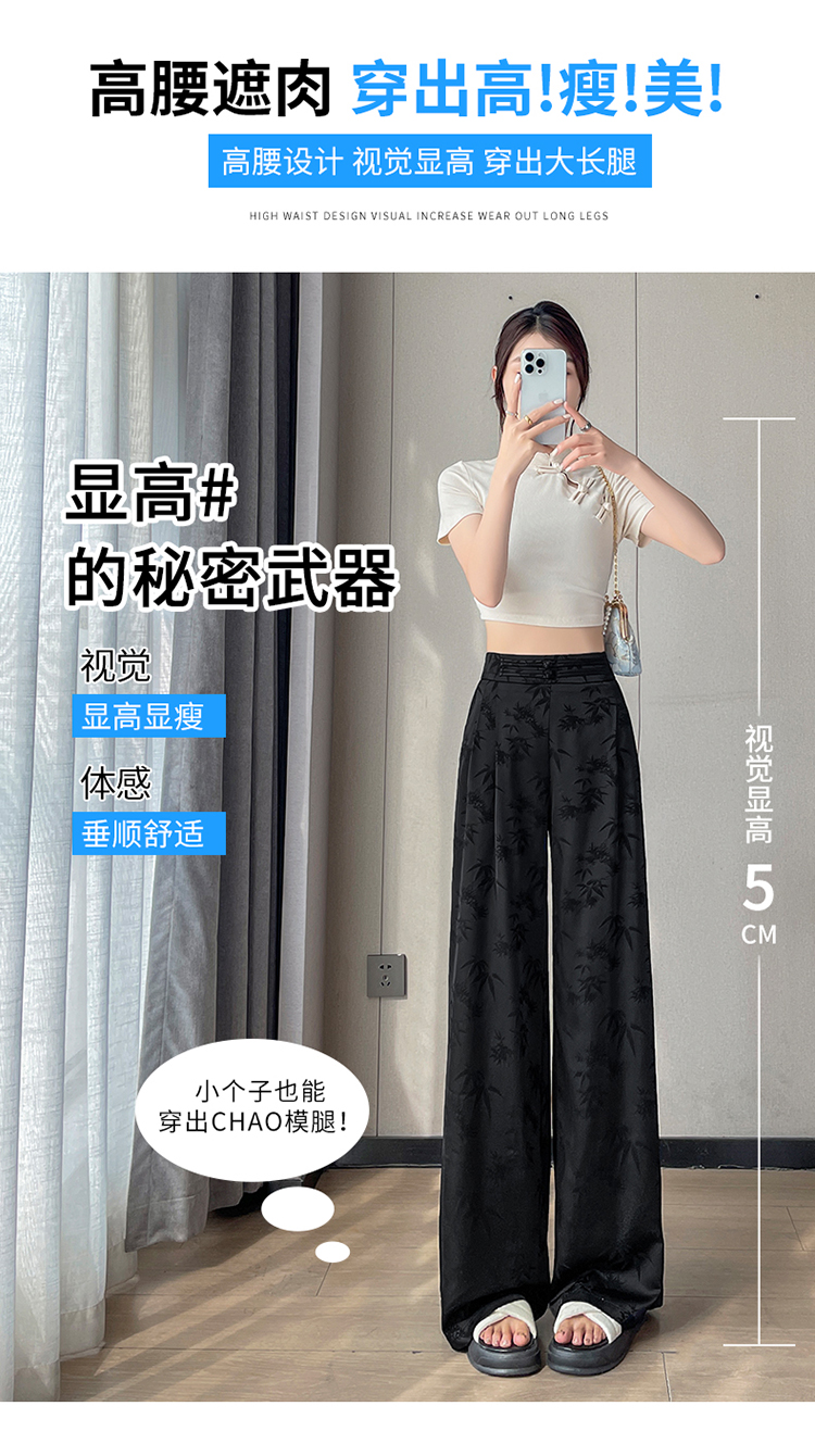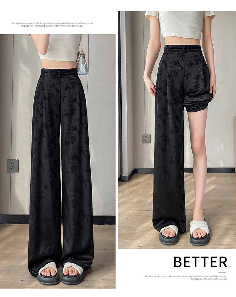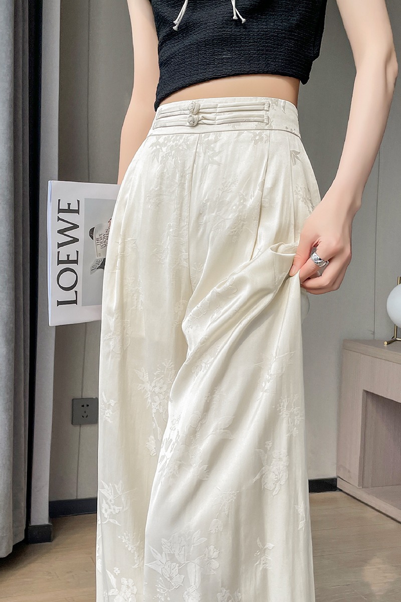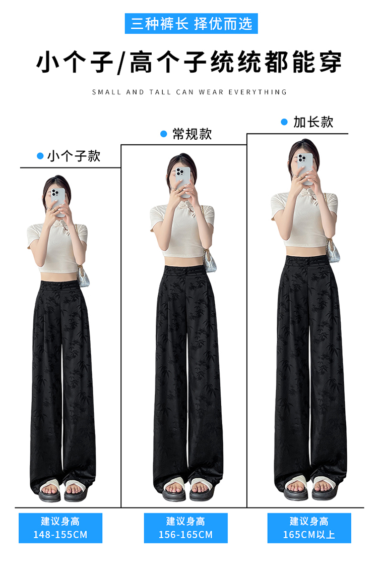 RY2112# 实拍2026夏季新款新中式缎面提花冰丝裤女国风直筒窄版阔腿裤
