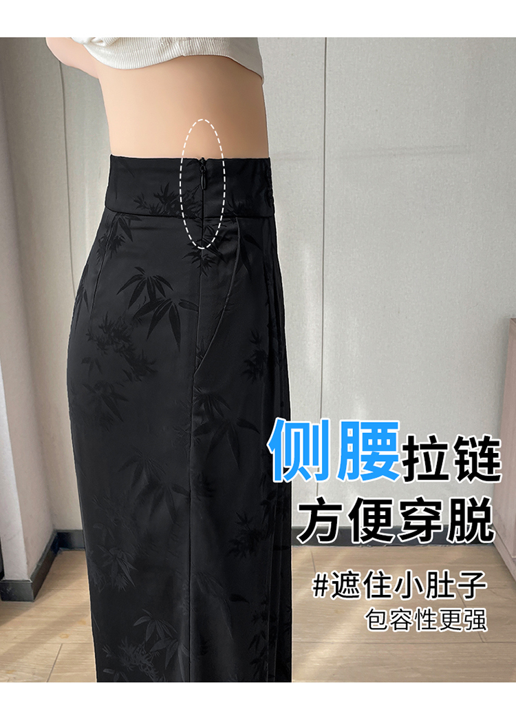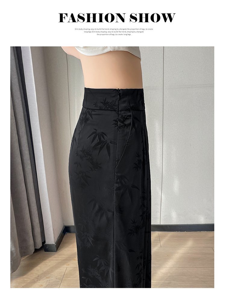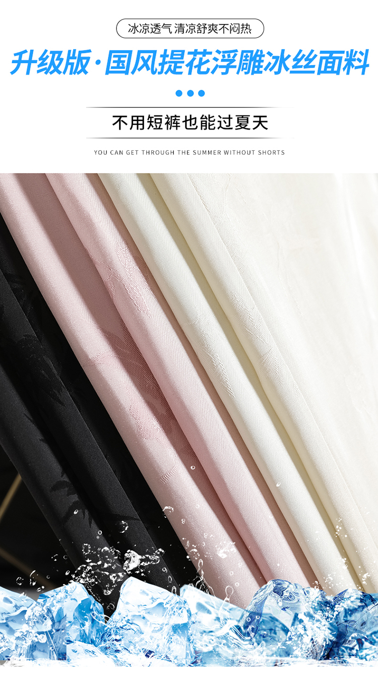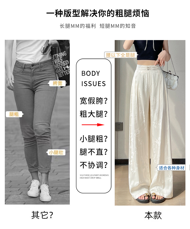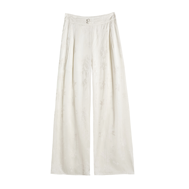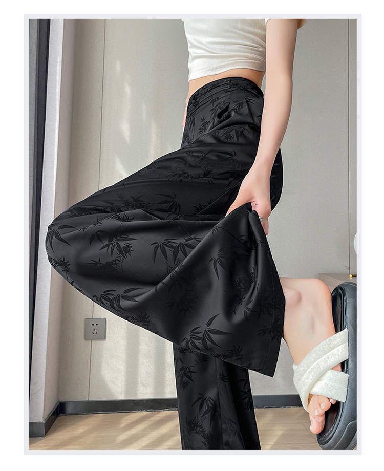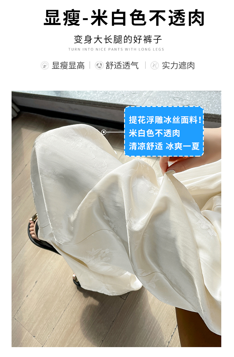 RY2112# 实拍2026夏季新款新中式缎面提花冰丝裤女国风直筒窄版阔腿裤
