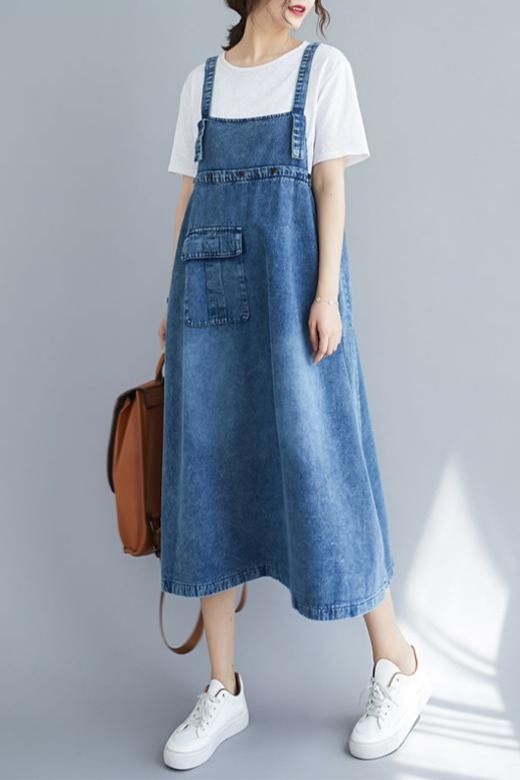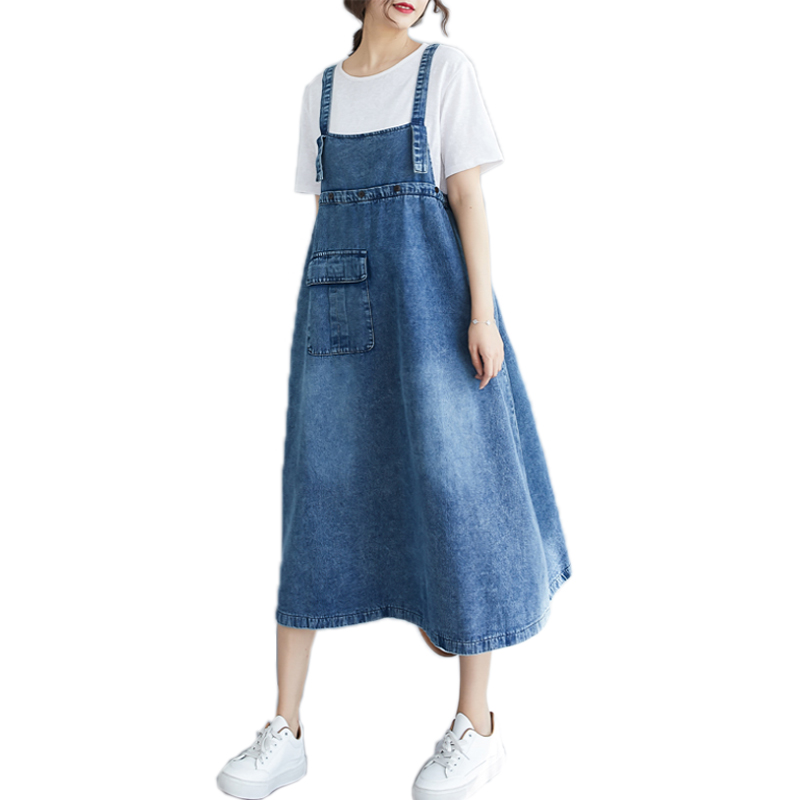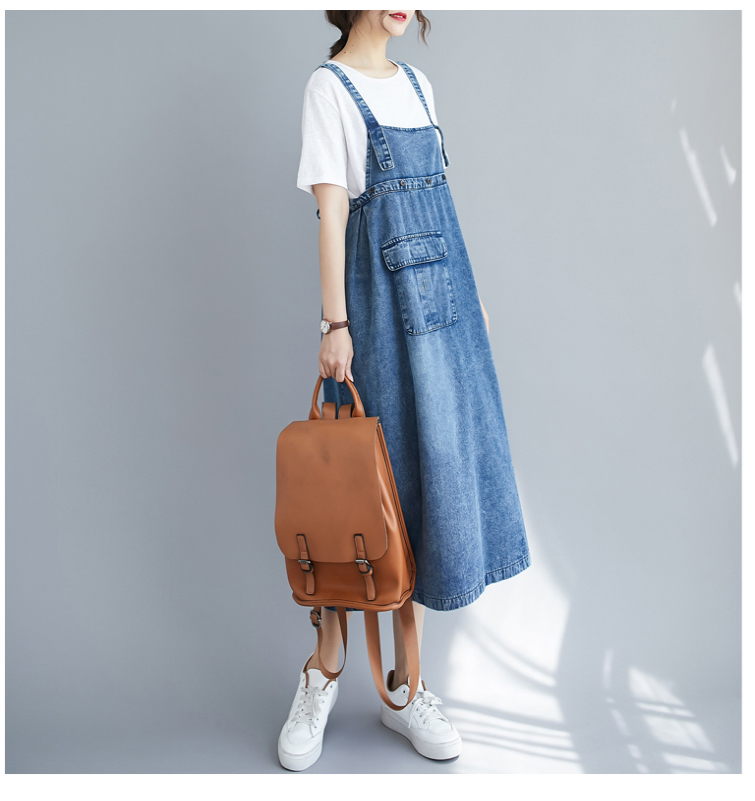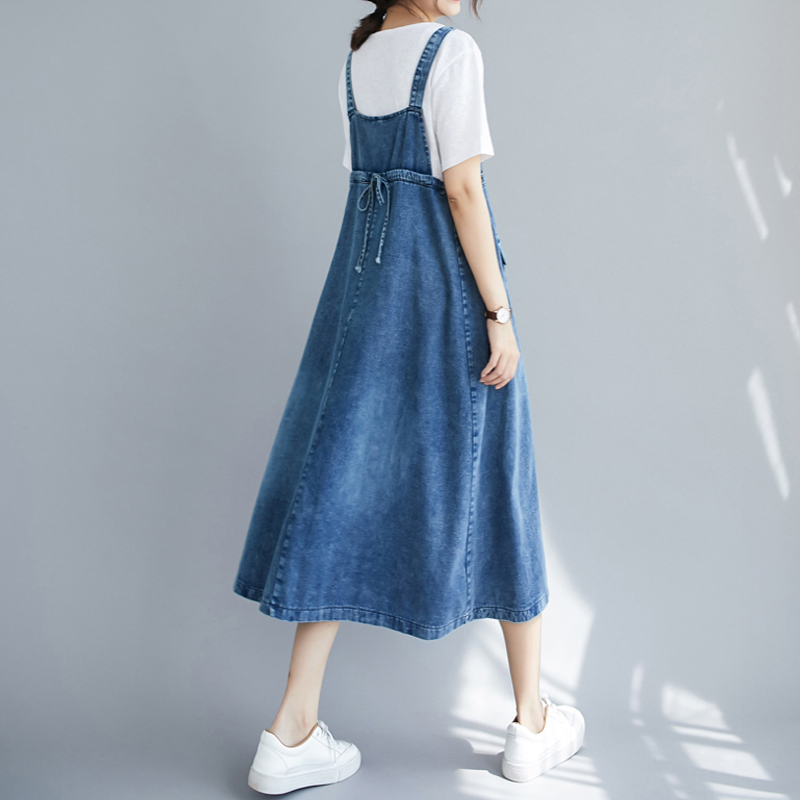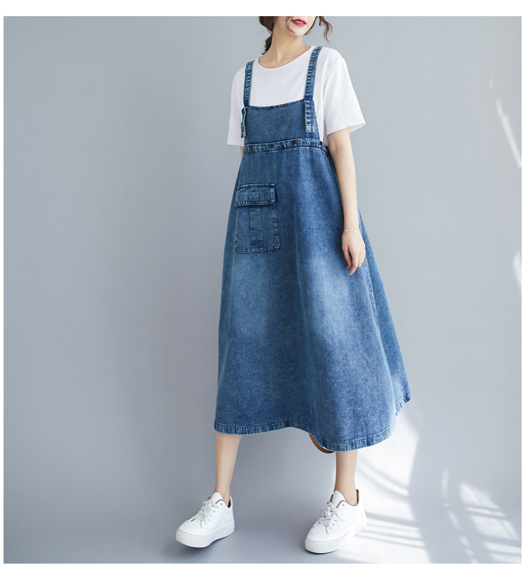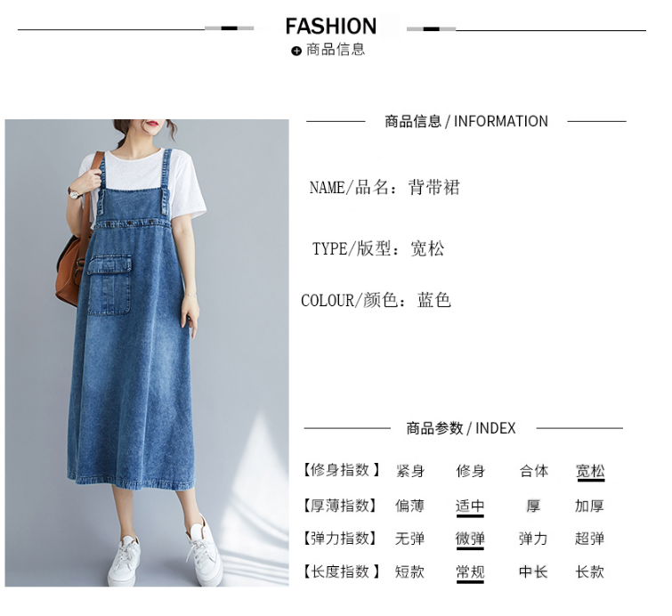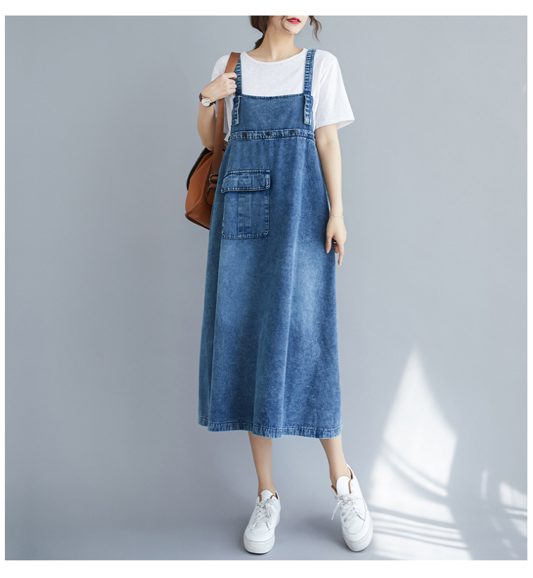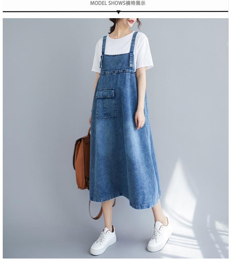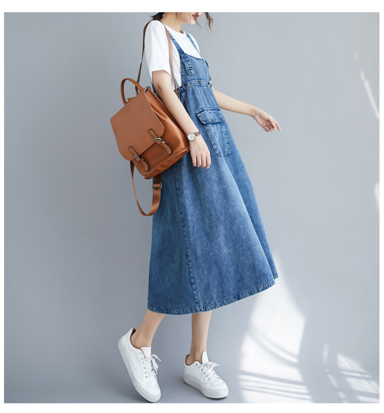 RY2151# 实拍2026春夏新品韩版牛仔背带裙中长款百搭宽松大摆纯色连衣裙