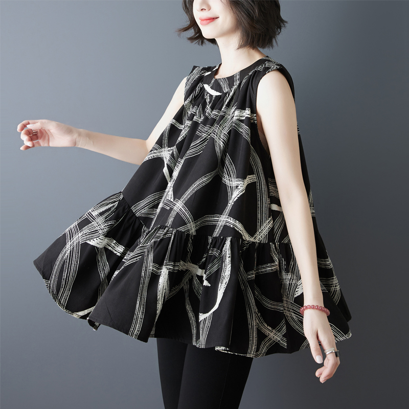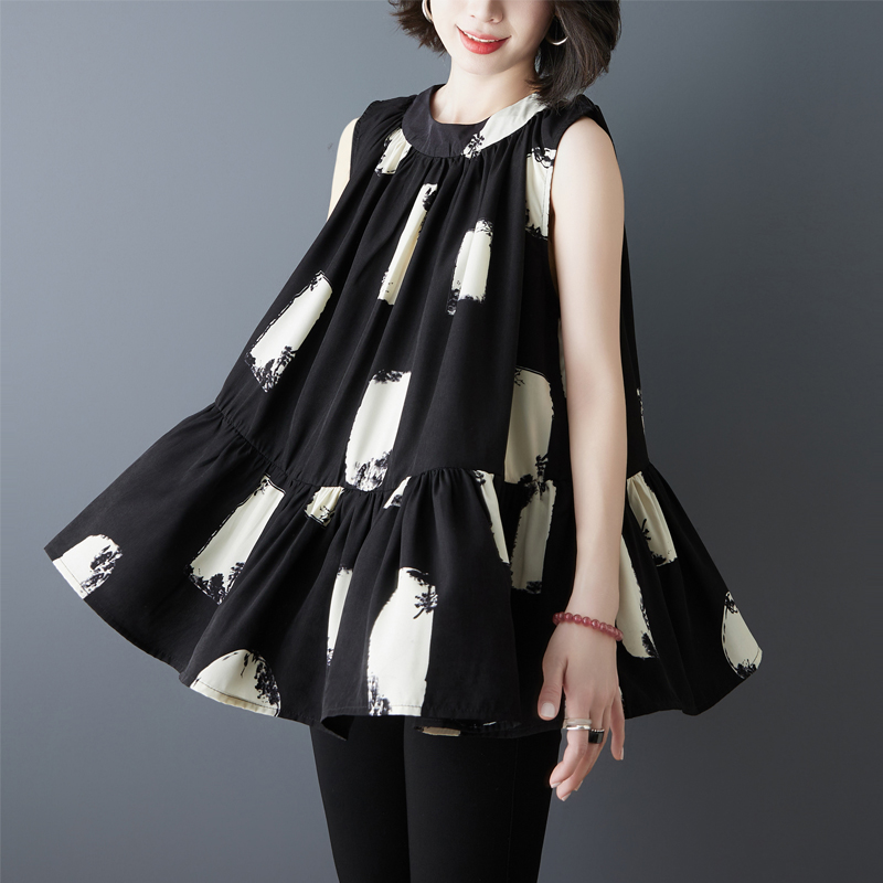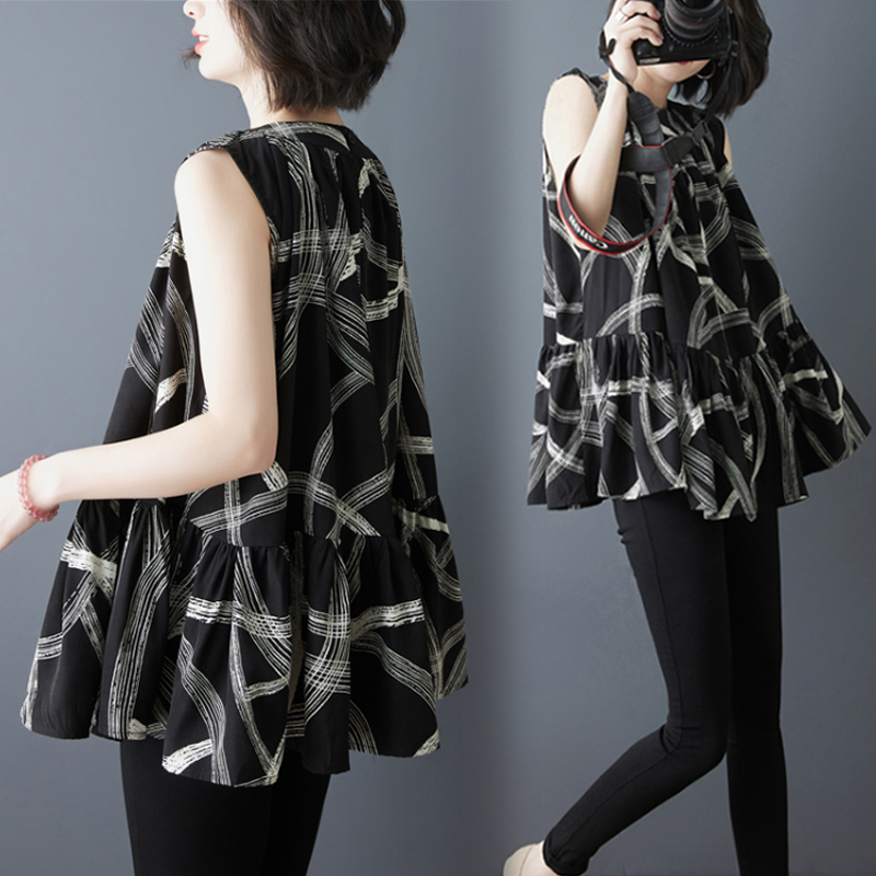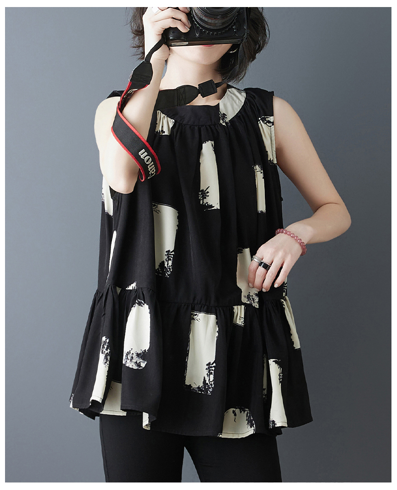 RY2155# 实拍2026夏季新款大码宽松真丝雪纺衫无袖背心百搭遮肚显瘦女上衣
