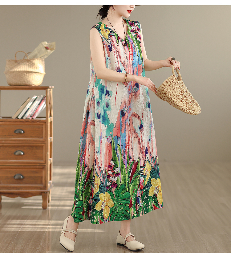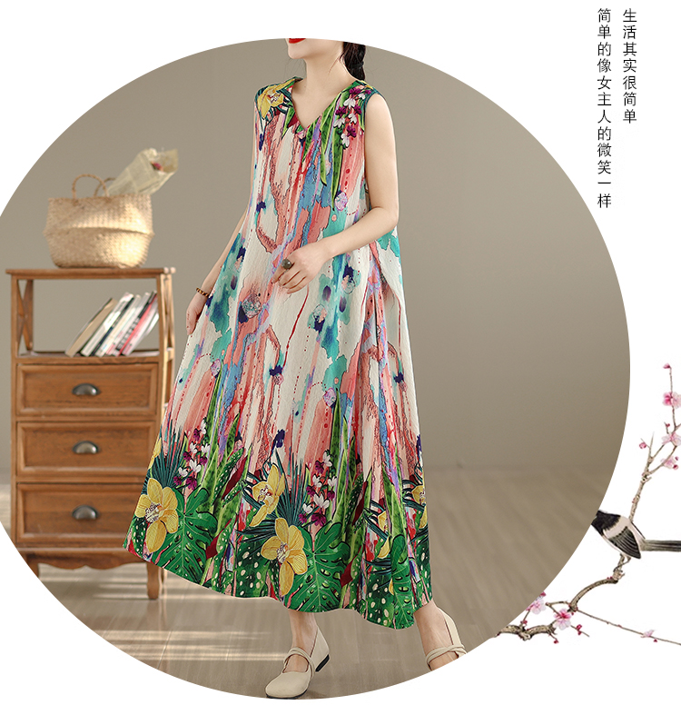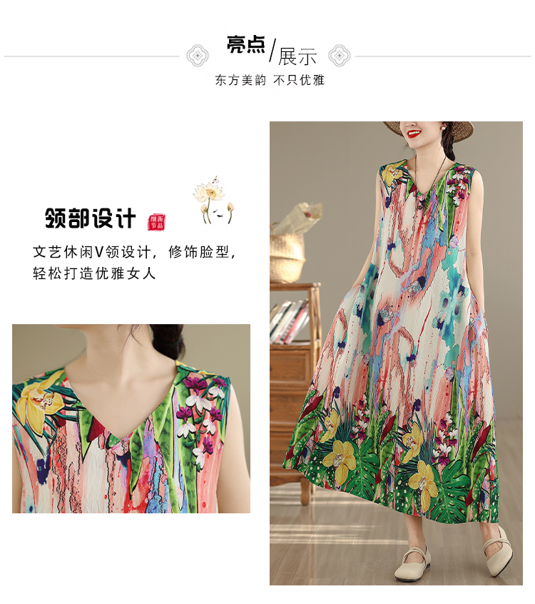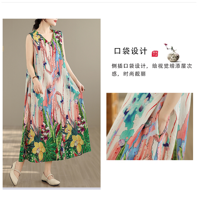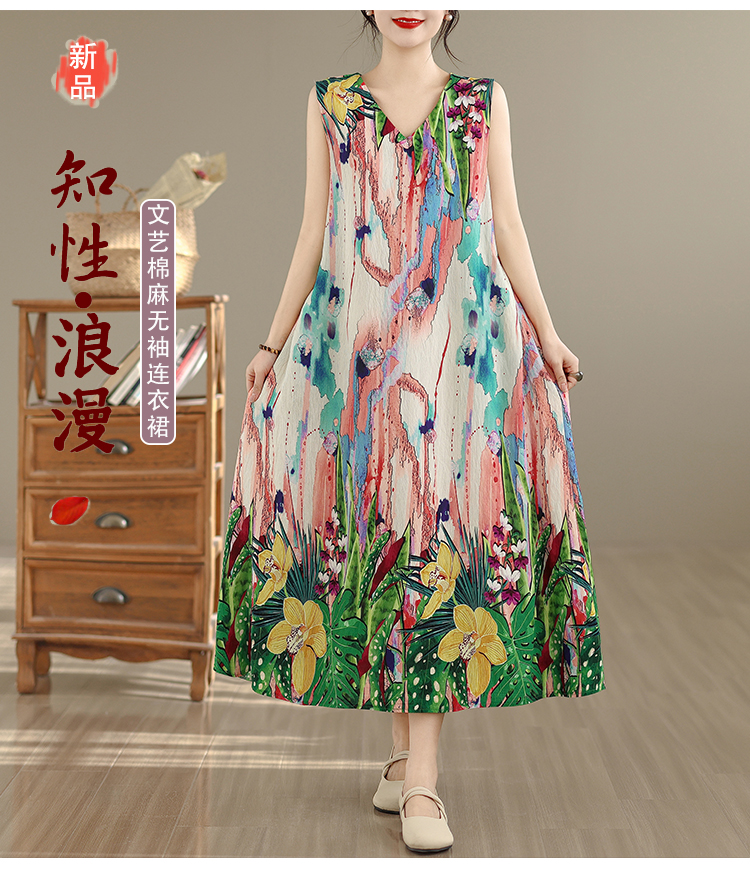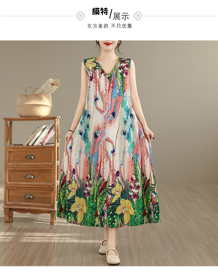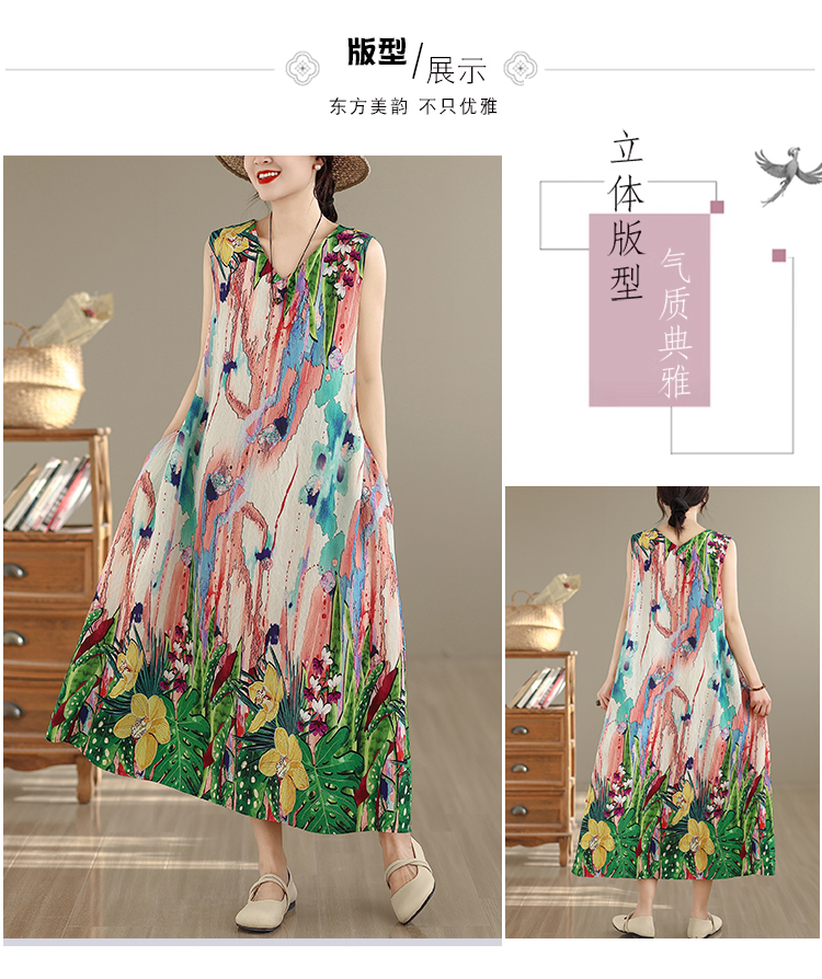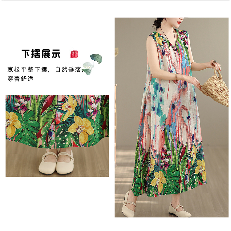 RY2172# 实拍 2026新款胖MM大码简约无袖V领背心式收腰长款连衣裙