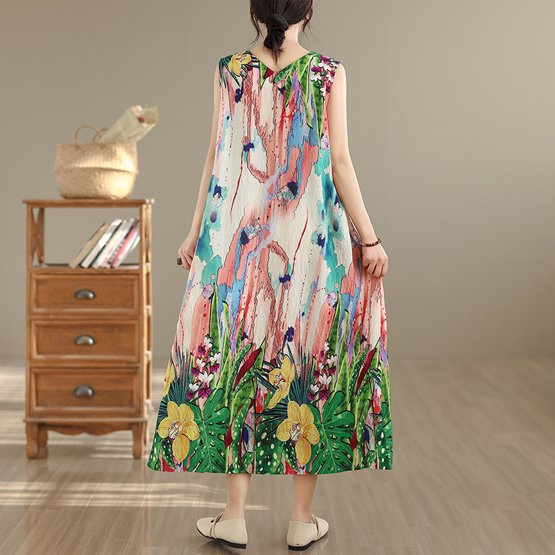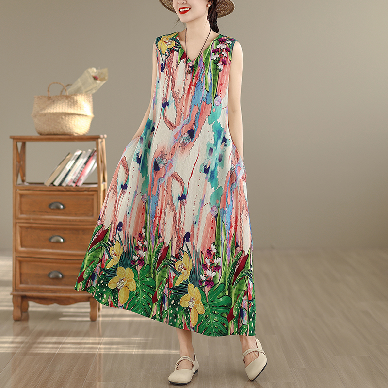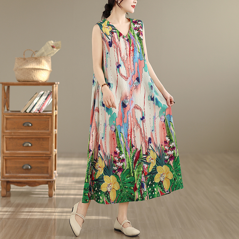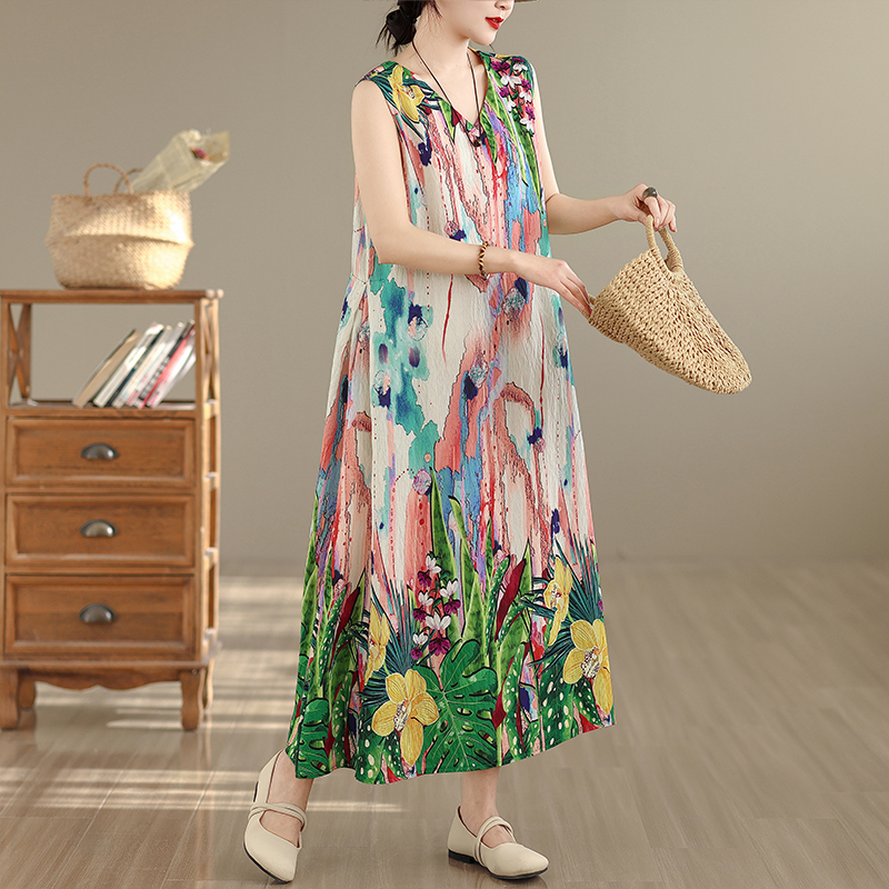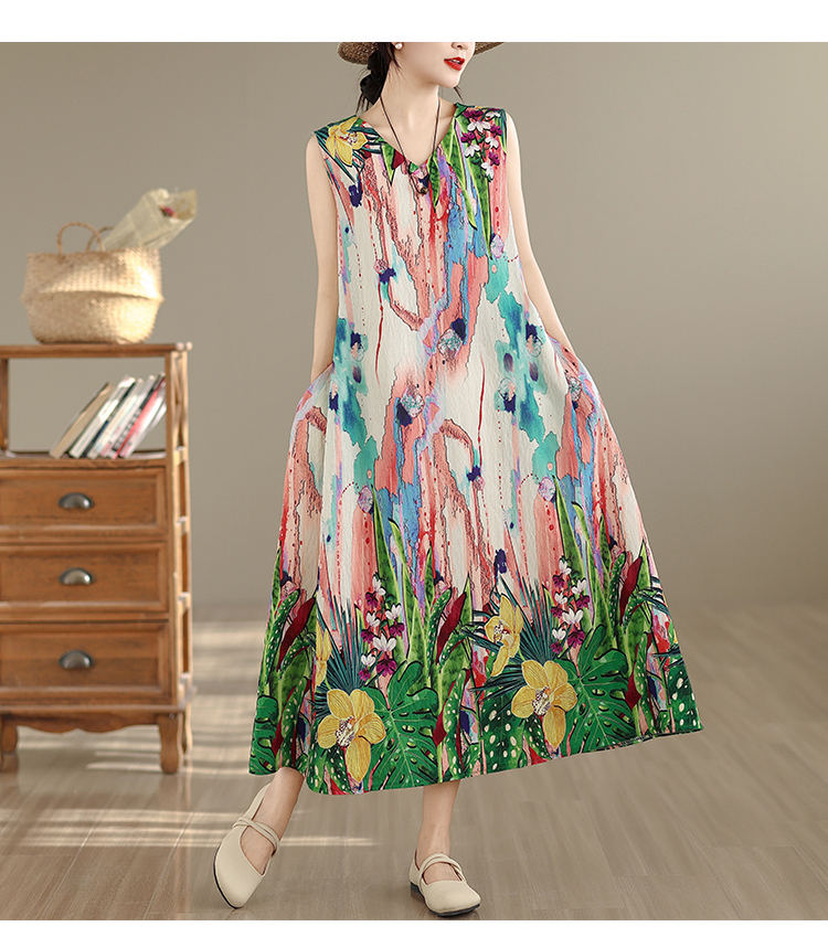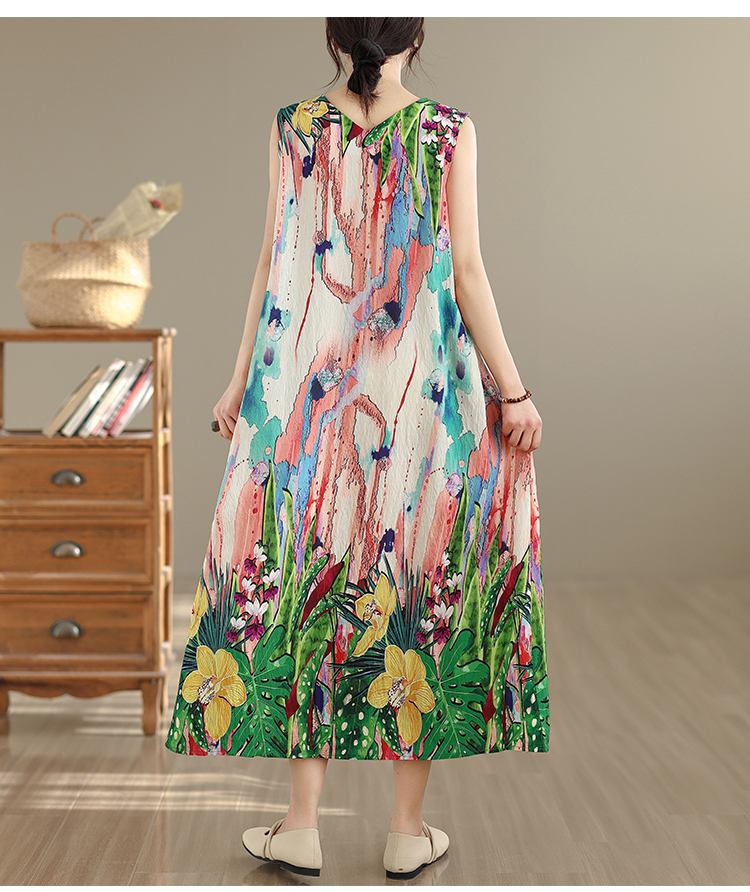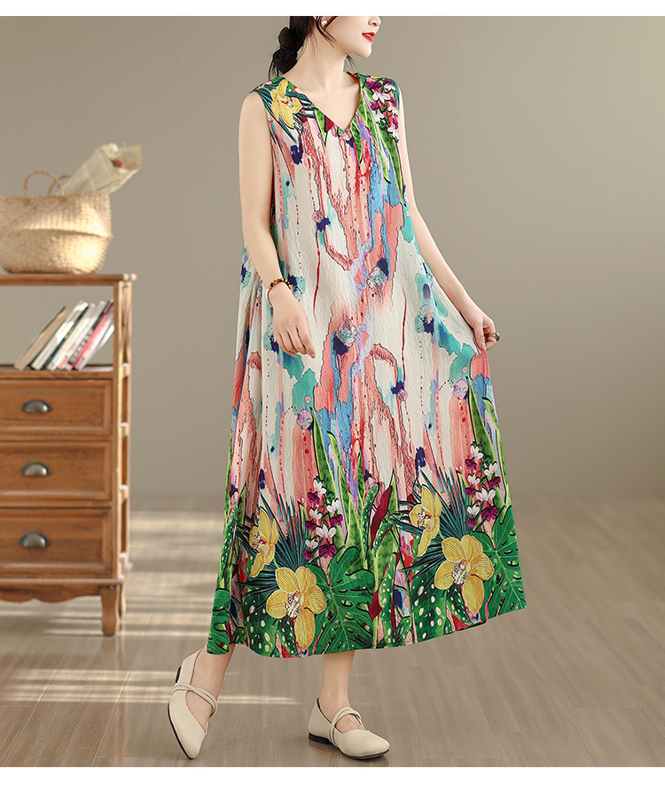RY2172# 实拍 2026新款胖MM大码简约无袖V领背心式收腰长款连衣裙