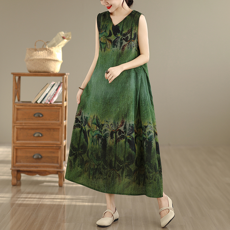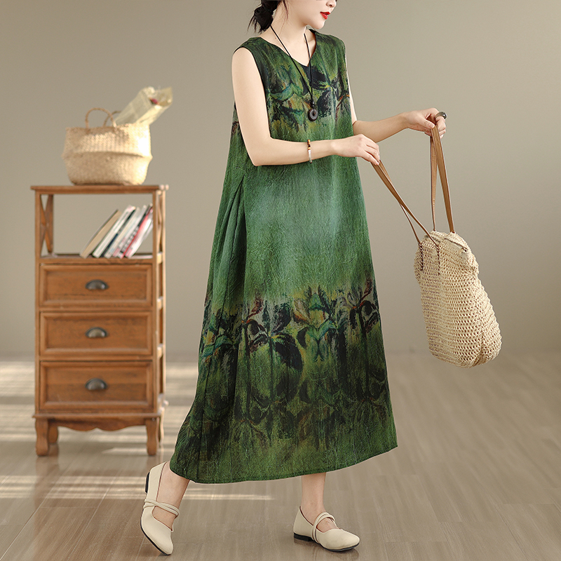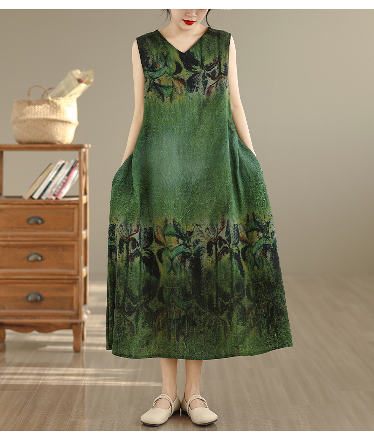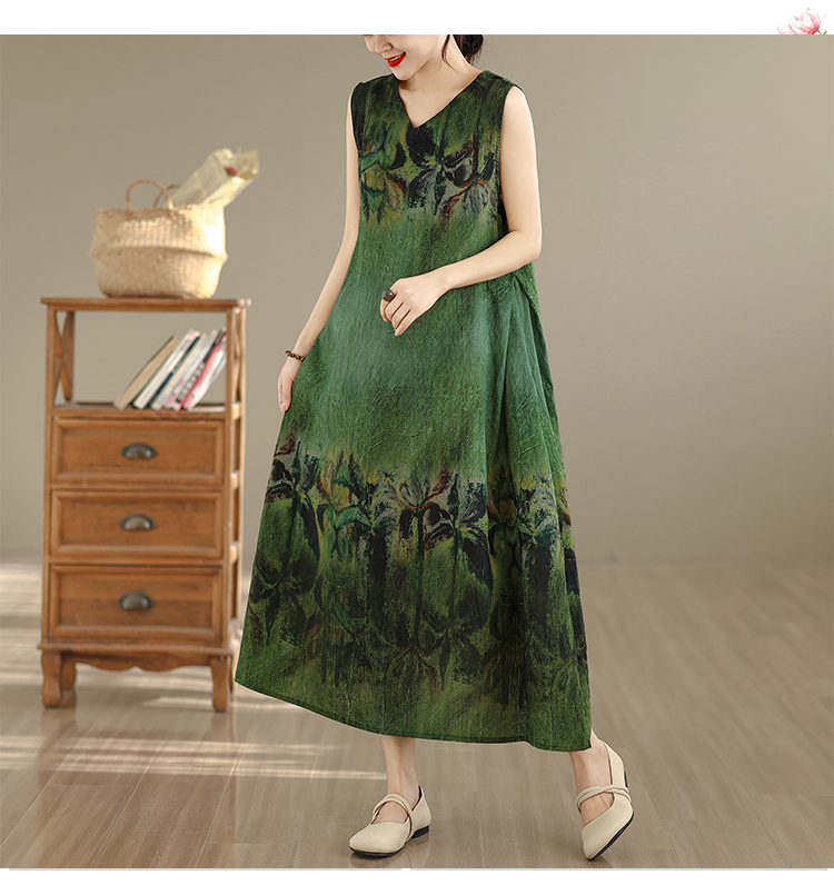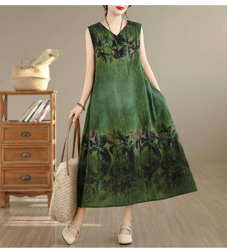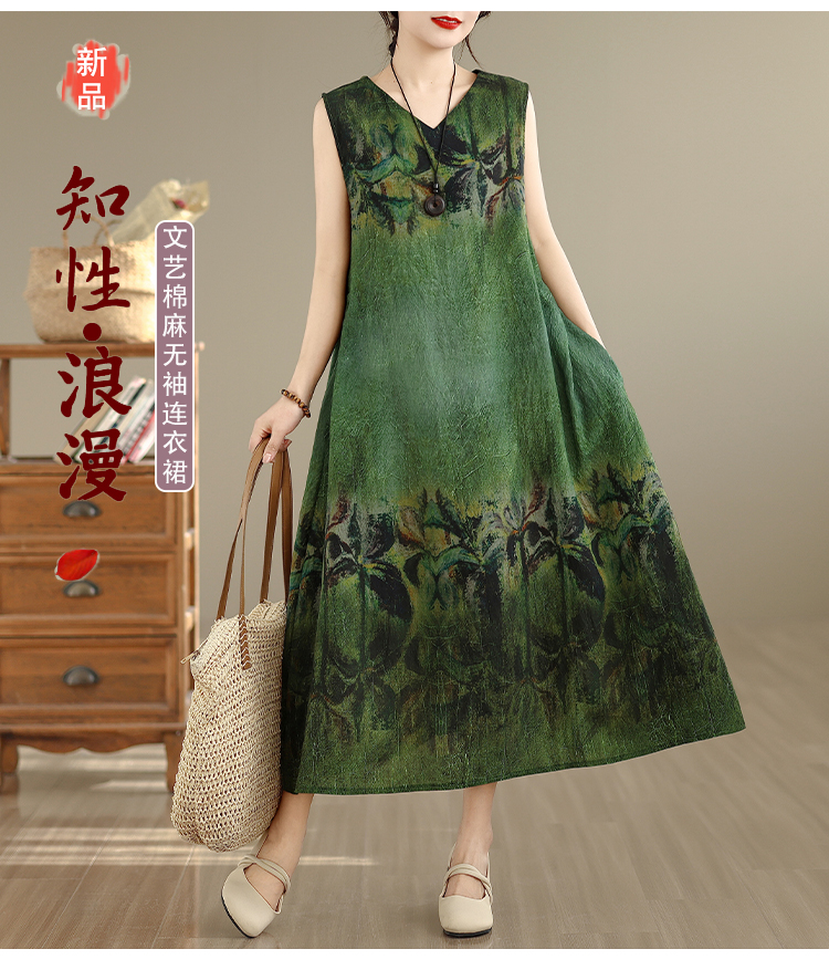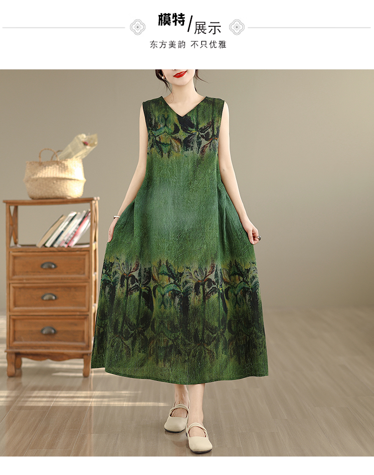 RY2173# 实拍 2026新款胖MM大码简约无袖V领背心式收腰长款连衣裙