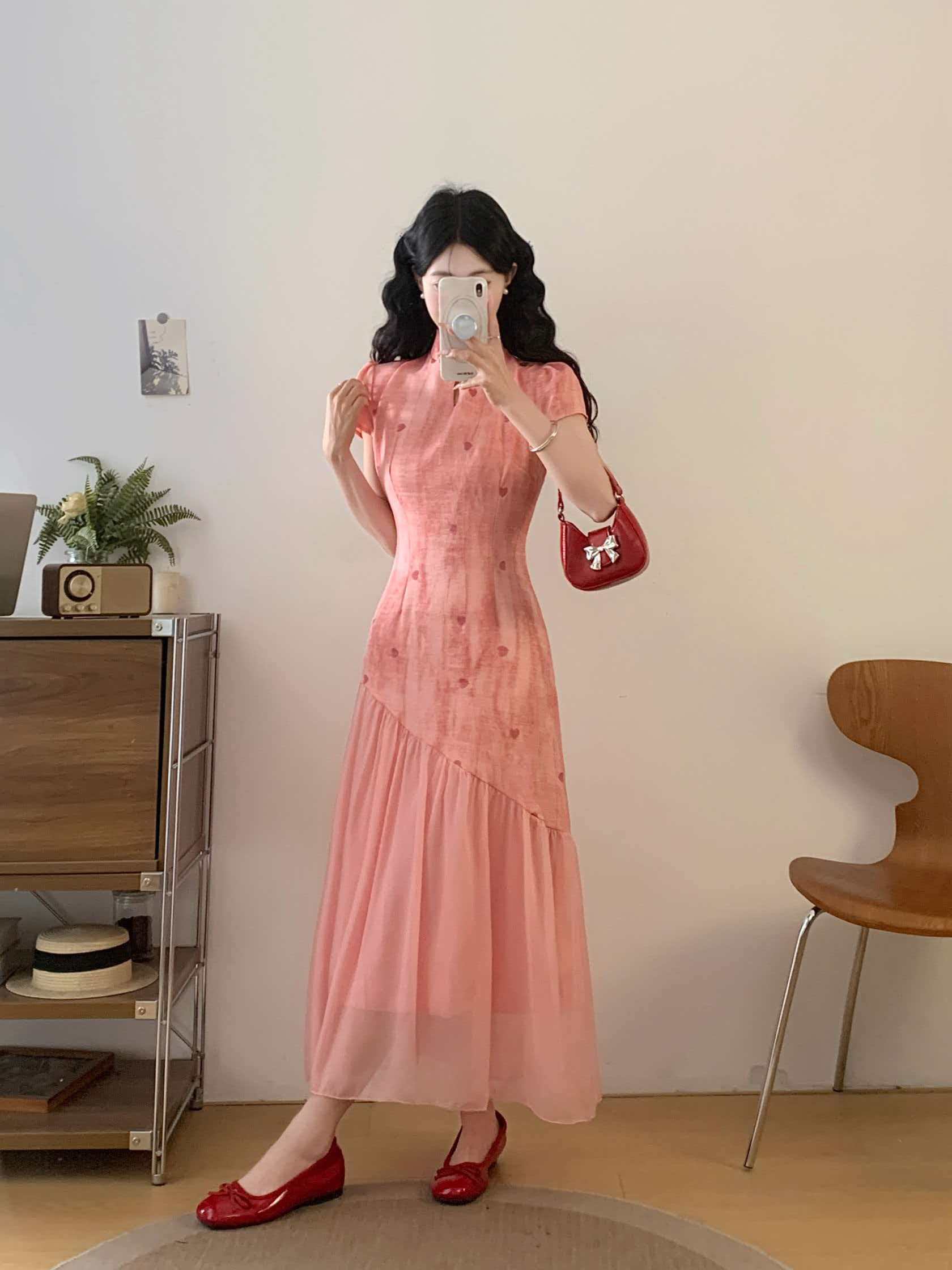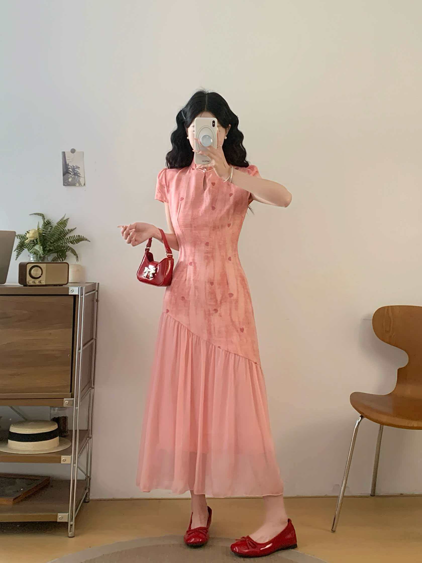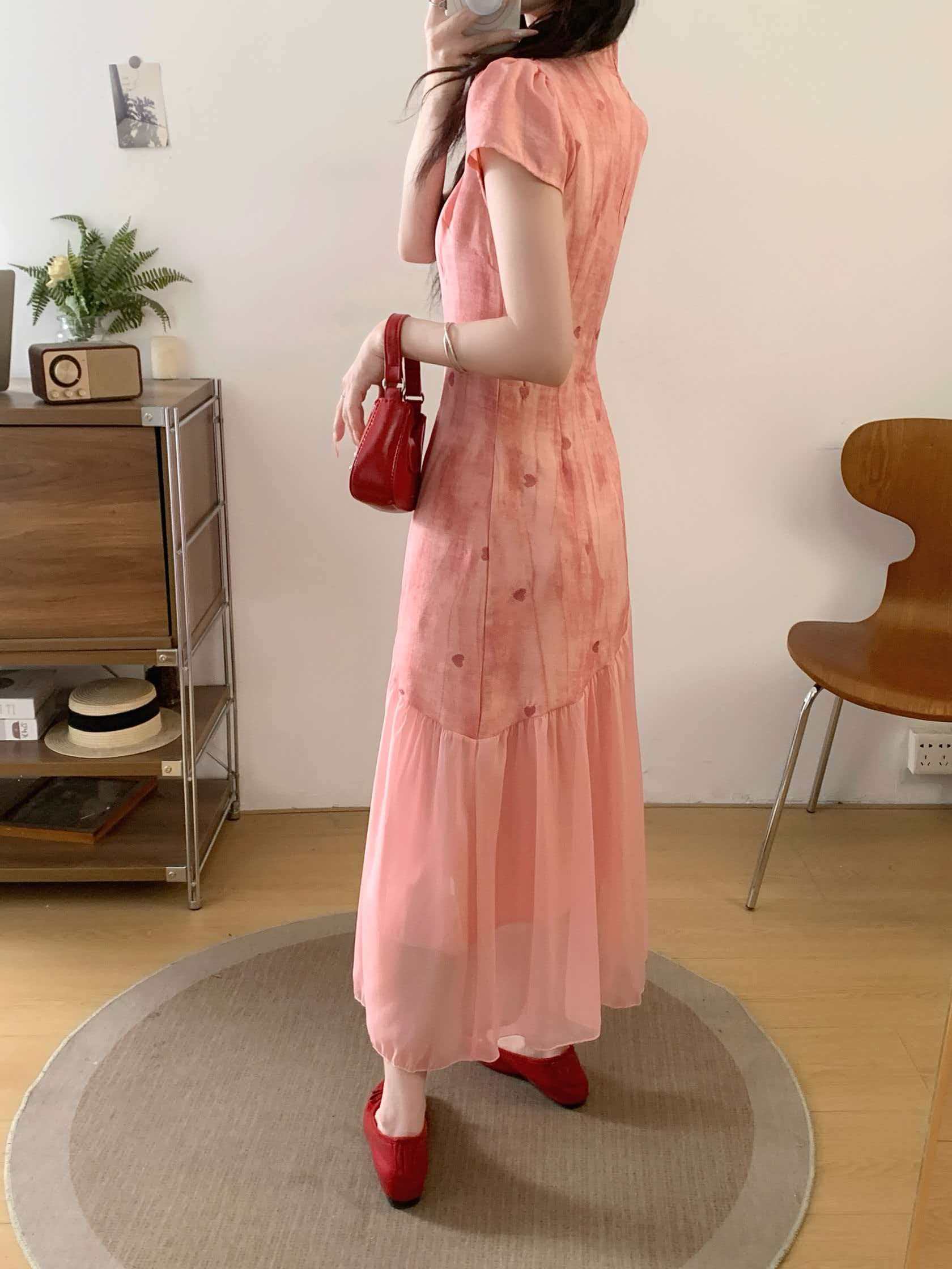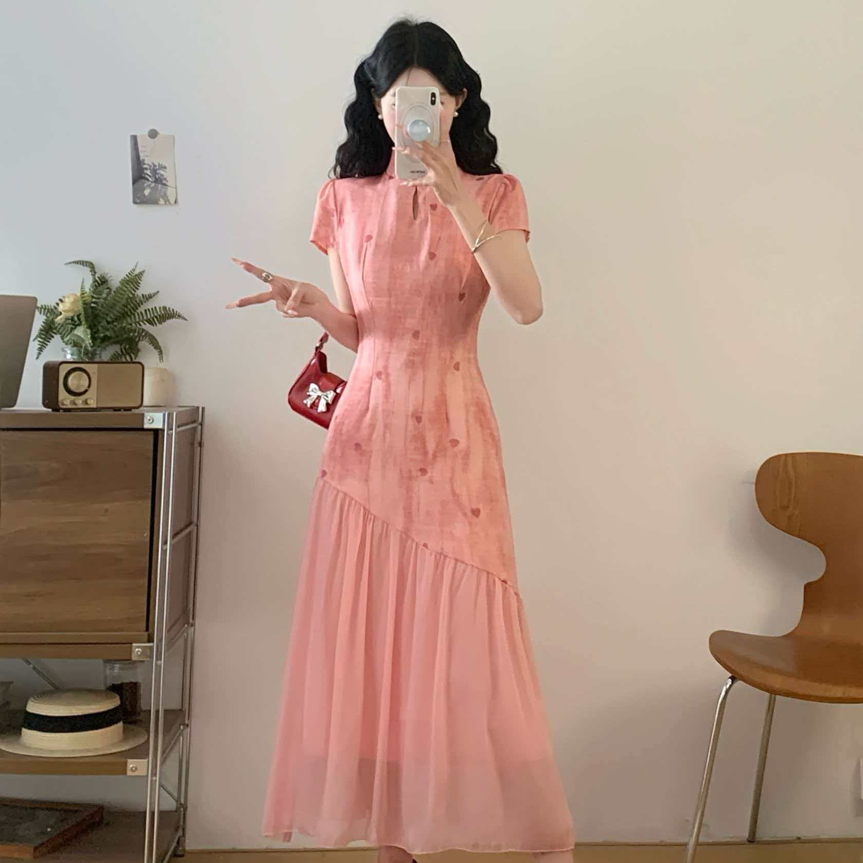 RY2191# 实拍~七七很芒袅袅江南2026夏新品新中式爱心刺绣旗袍连衣裙