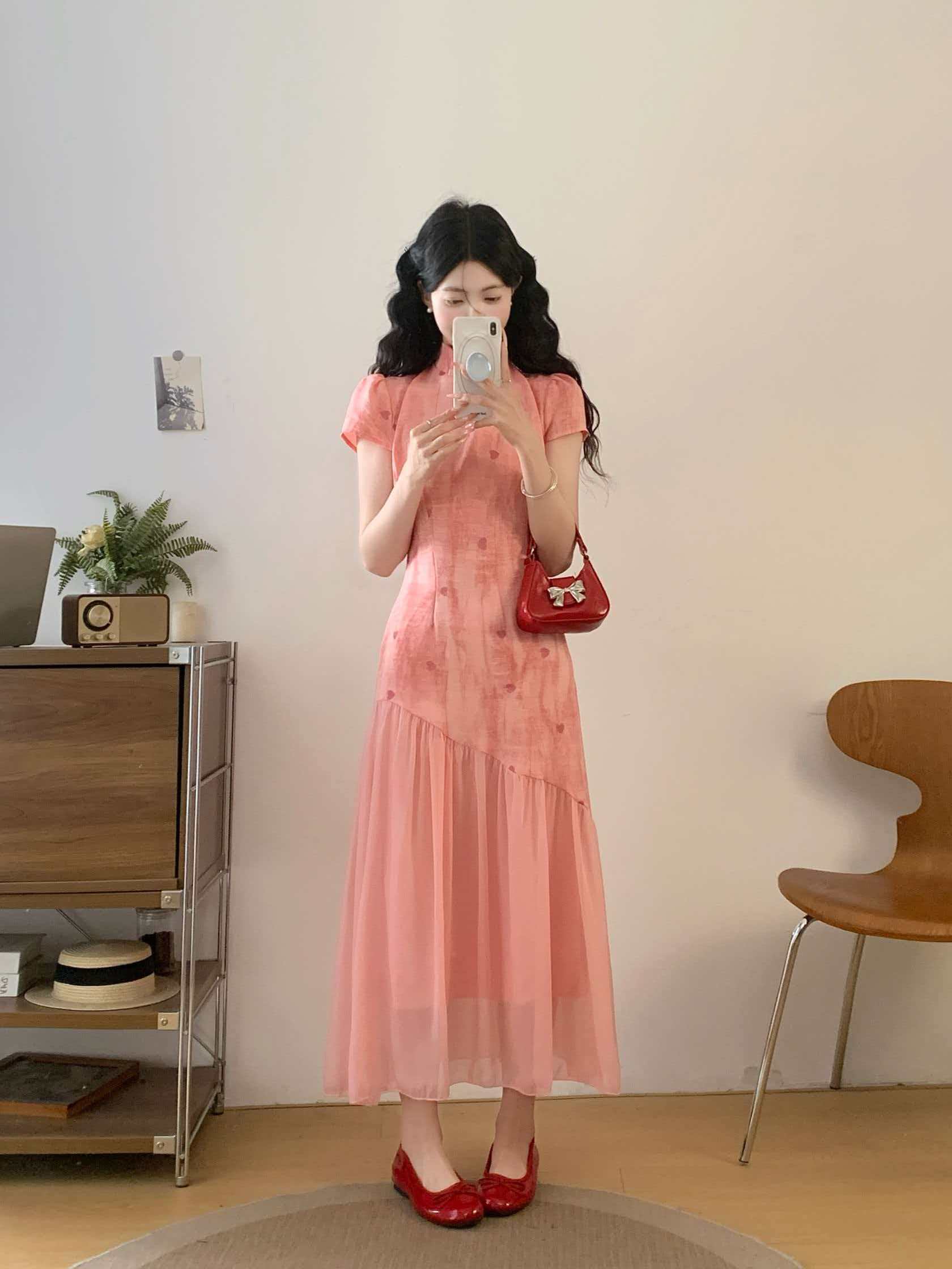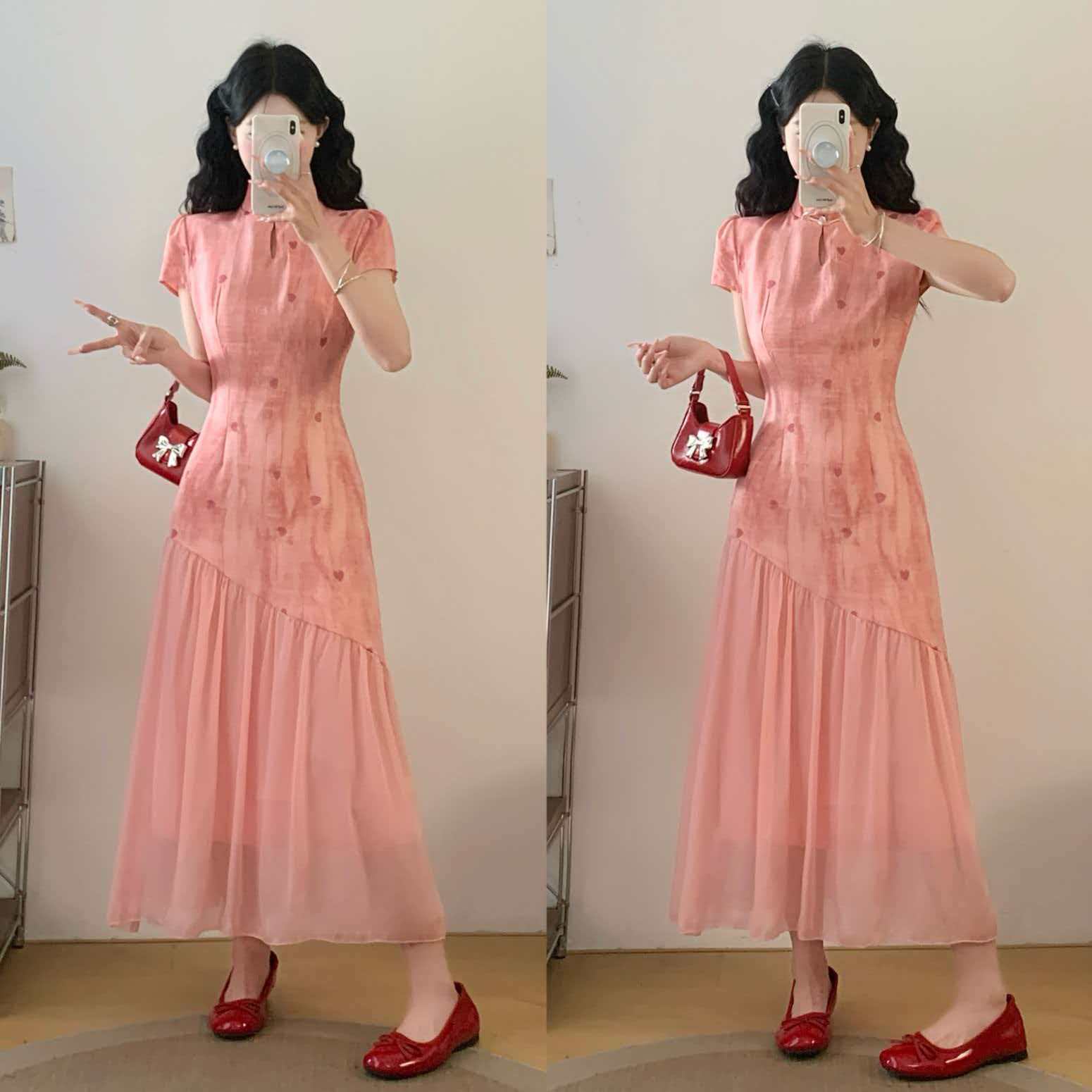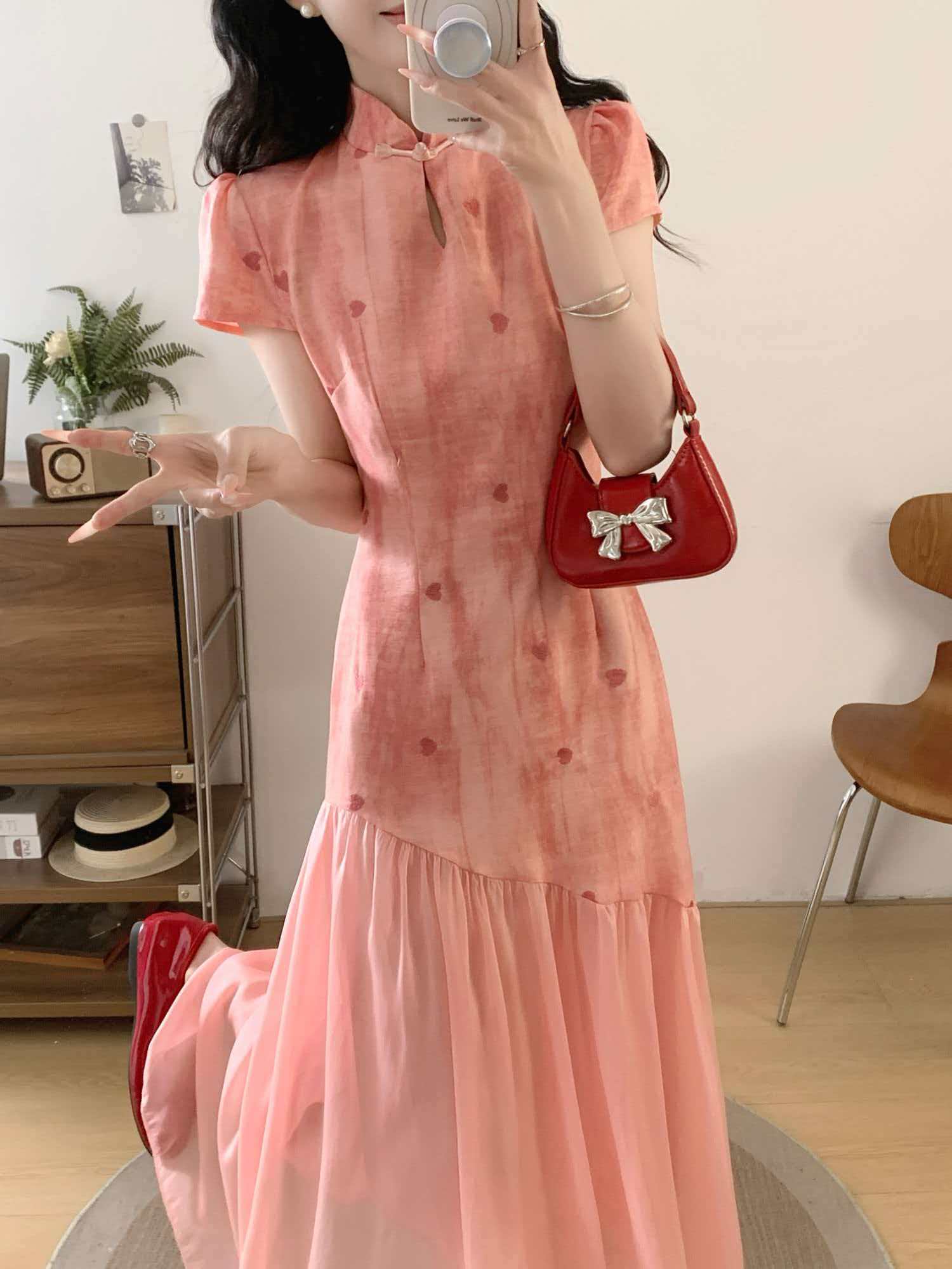 RY2191# 实拍~七七很芒袅袅江南2026夏新品新中式爱心刺绣旗袍连衣裙