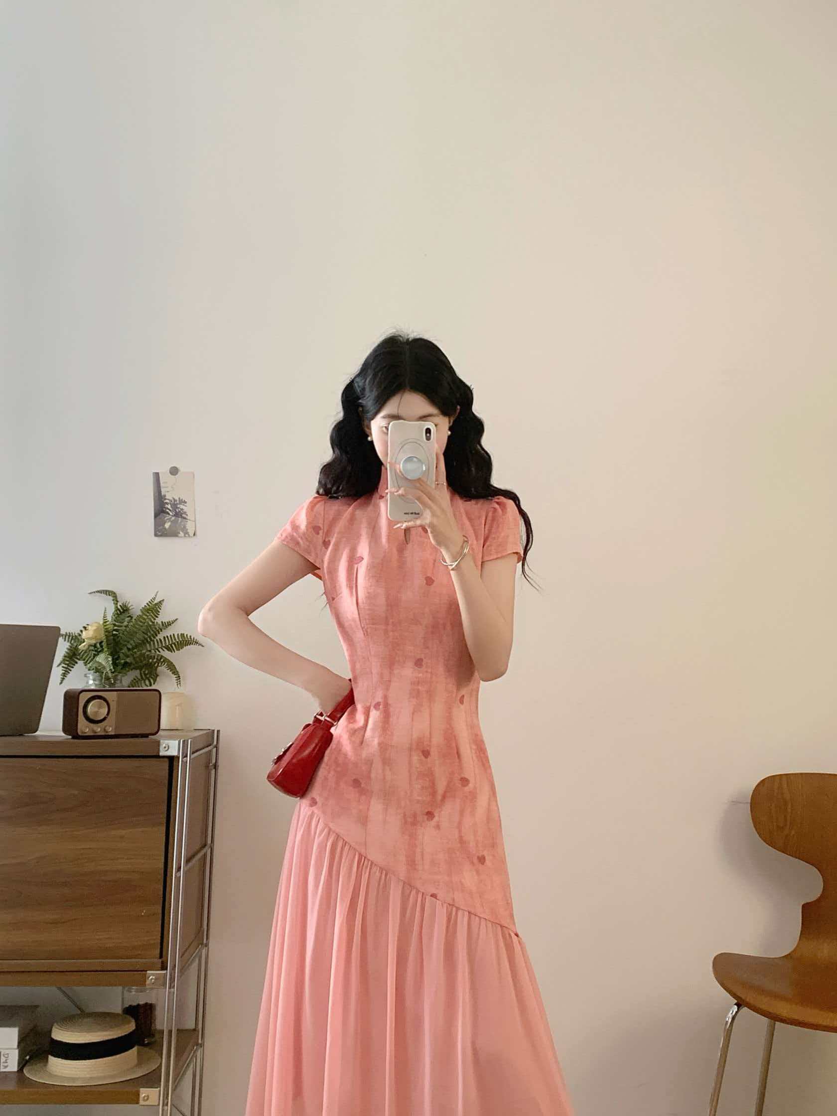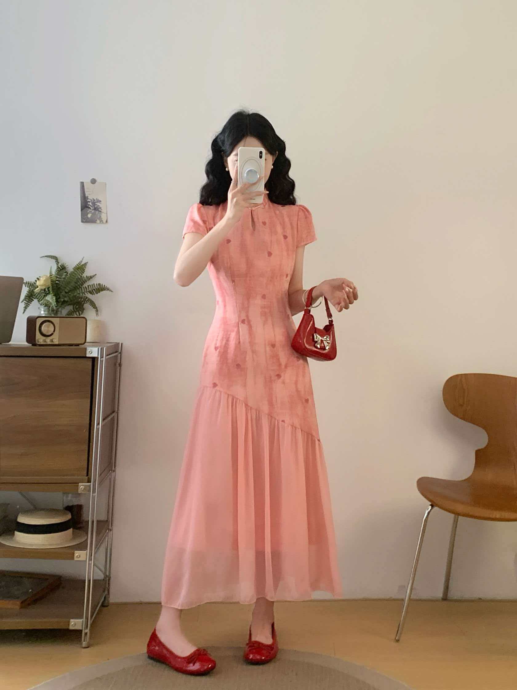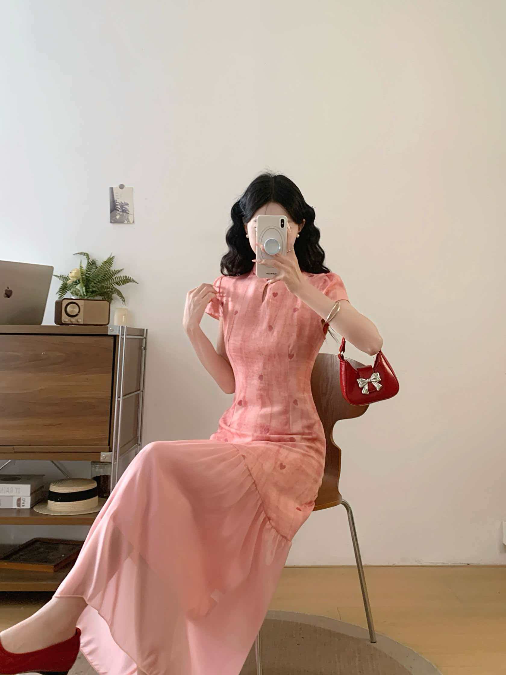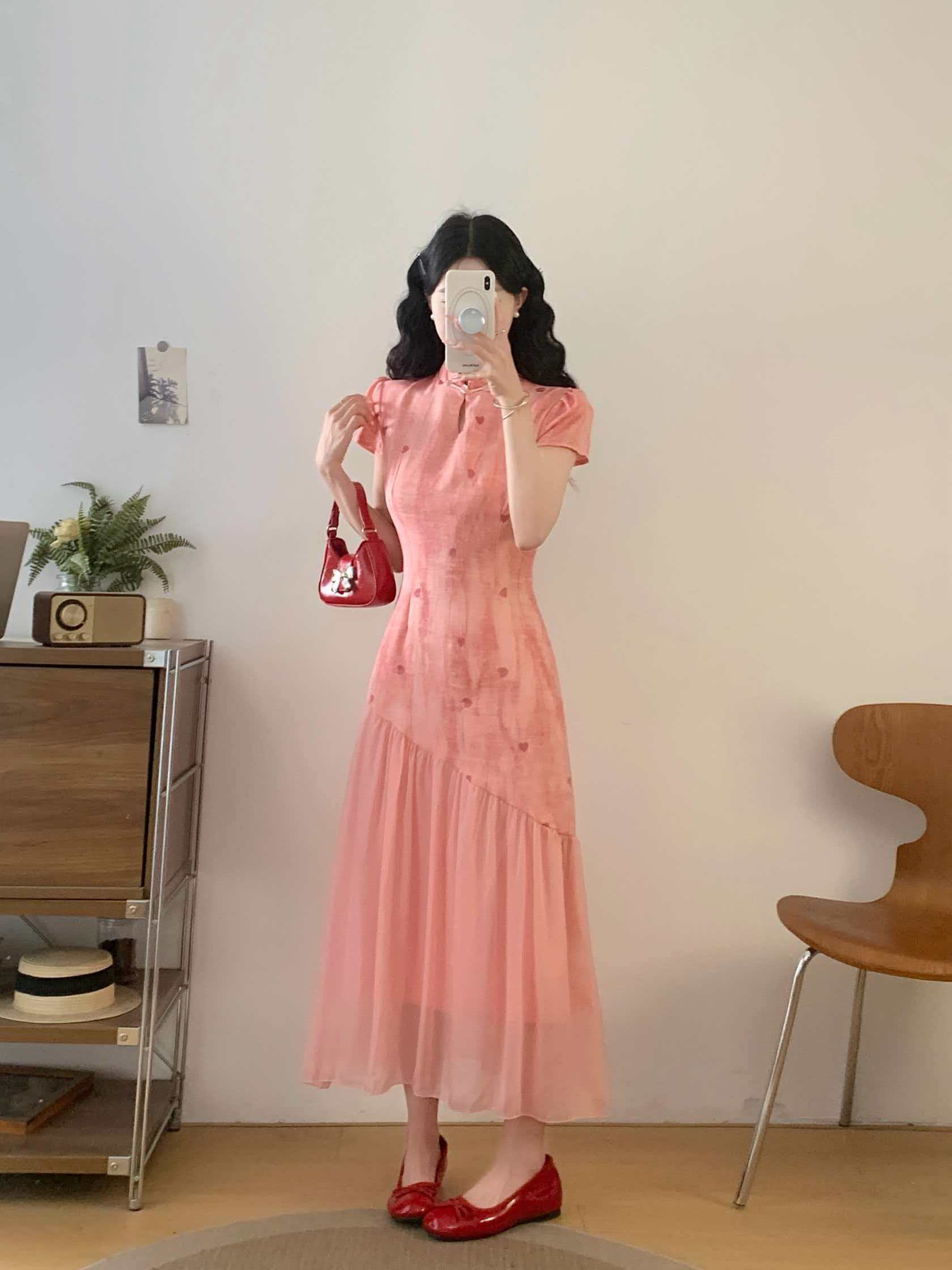 RY2191# 实拍~七七很芒袅袅江南2026夏新品新中式爱心刺绣旗袍连衣裙