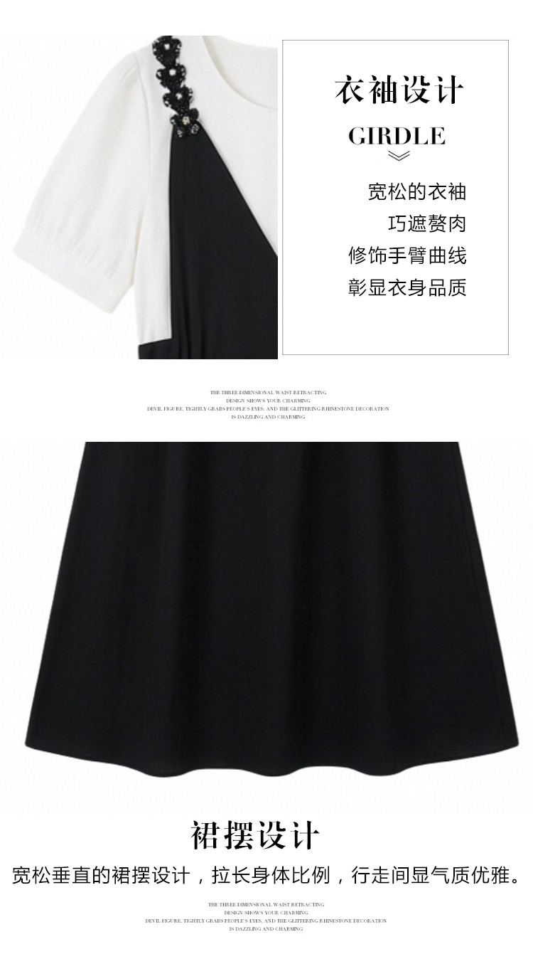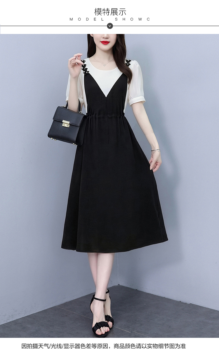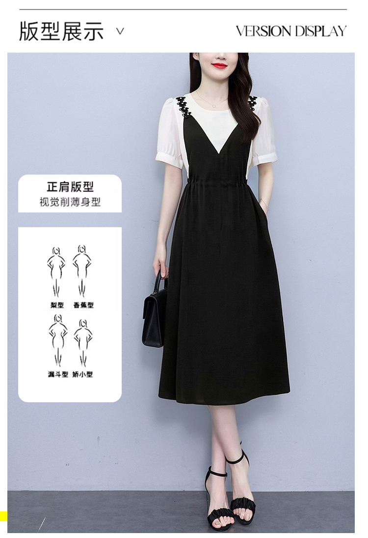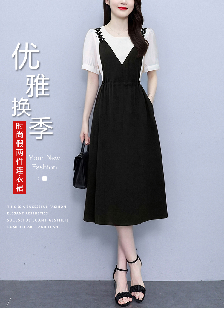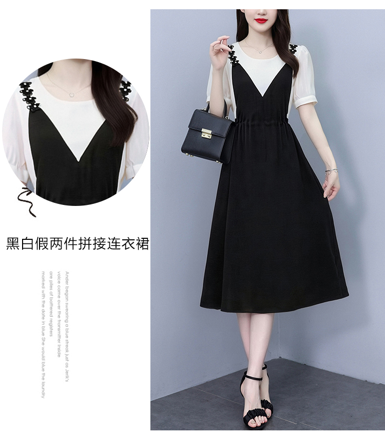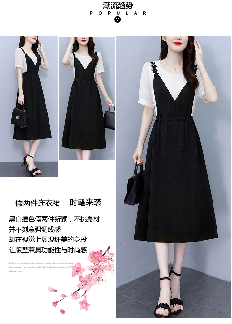 RY2195# 已出货 2025夏季新款大码女装显瘦裙子短袖时尚拼接假两件...