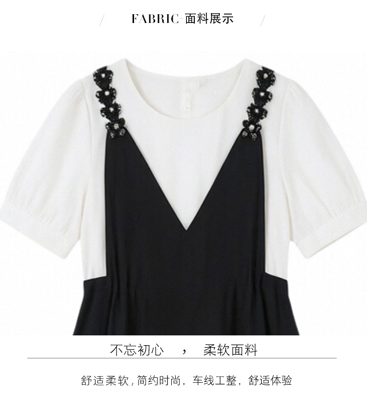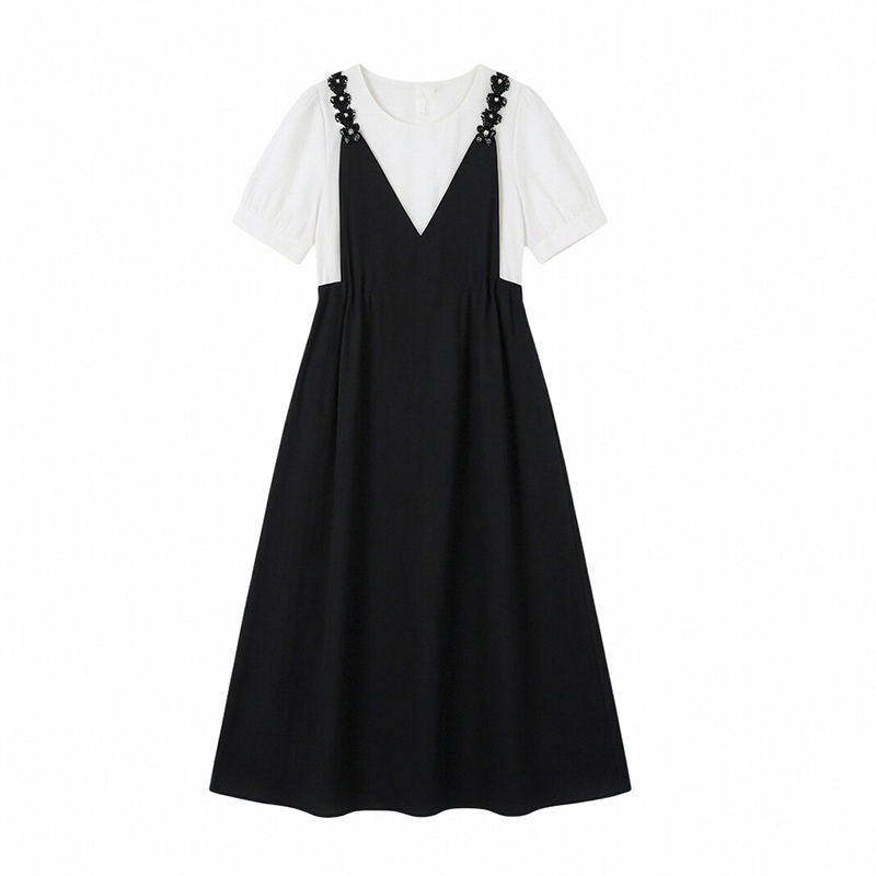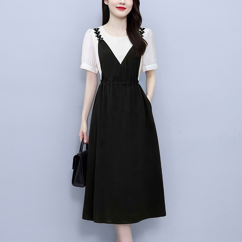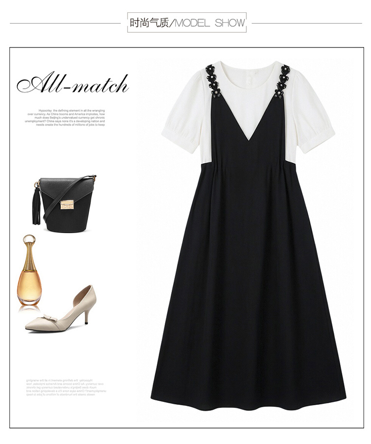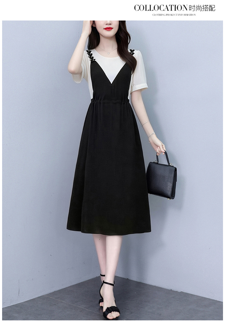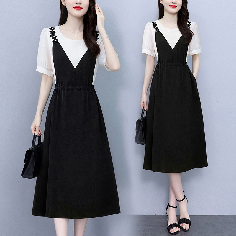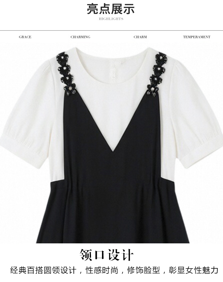 RY2195# 已出货 2025夏季新款大码女装显瘦裙子短袖时尚拼接假两件...