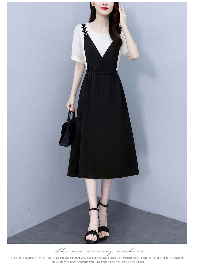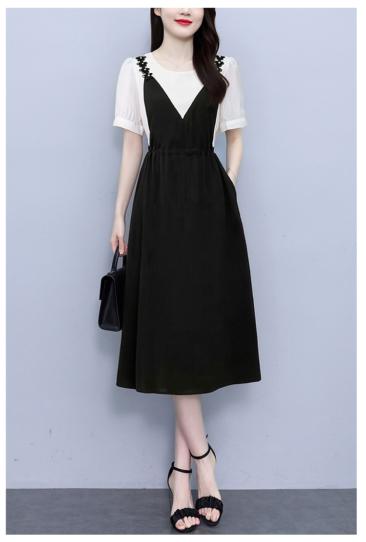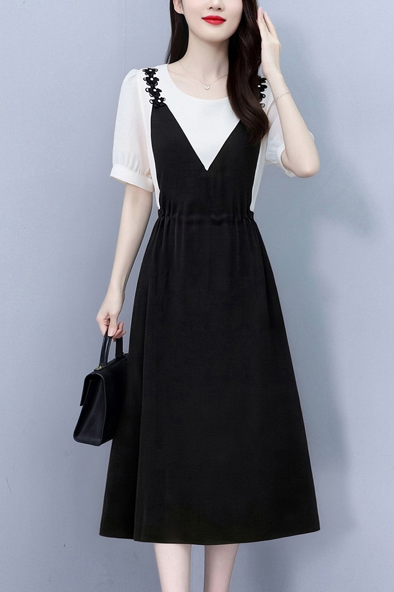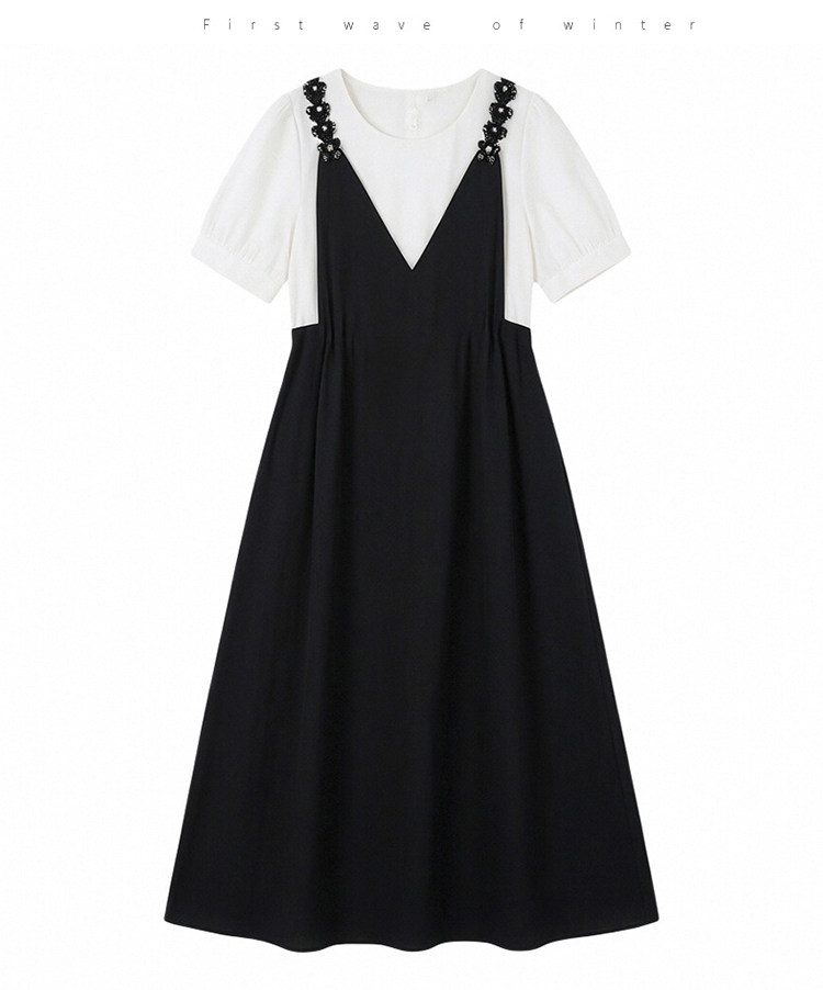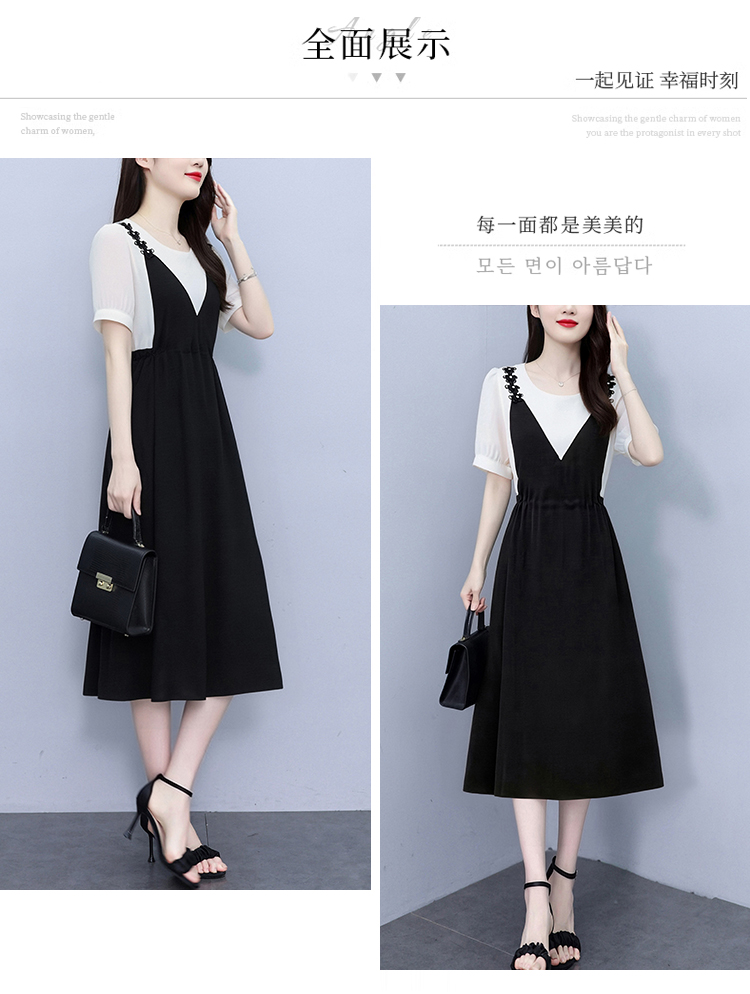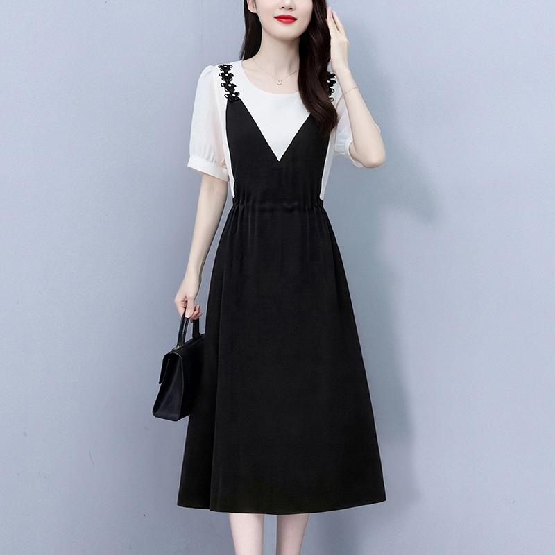 RY2195# 已出货 2025夏季新款大码女装显瘦裙子短袖时尚拼接假两件...