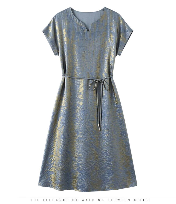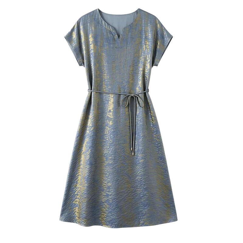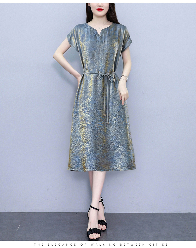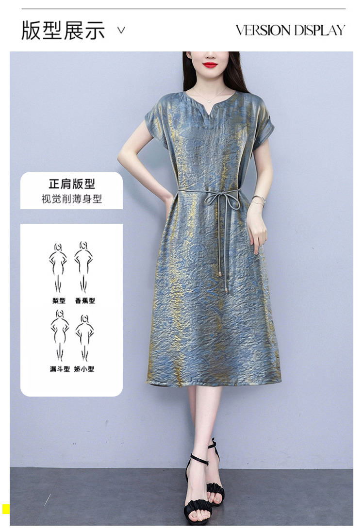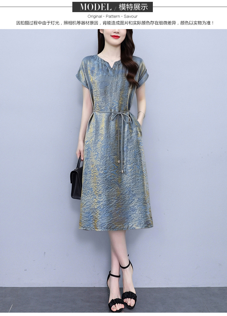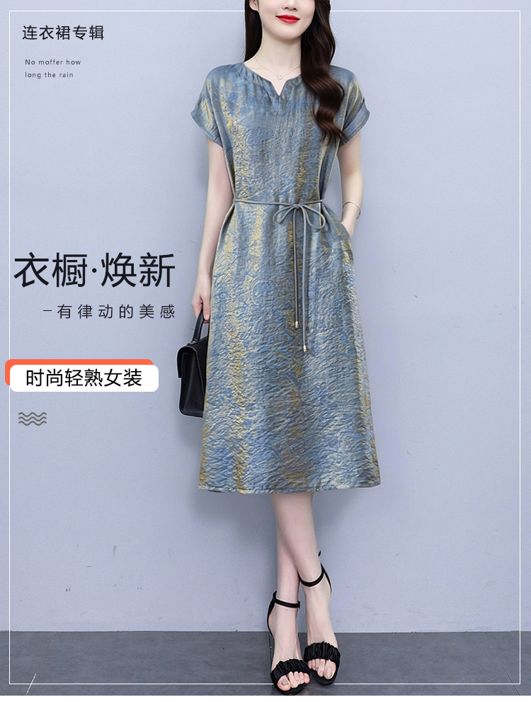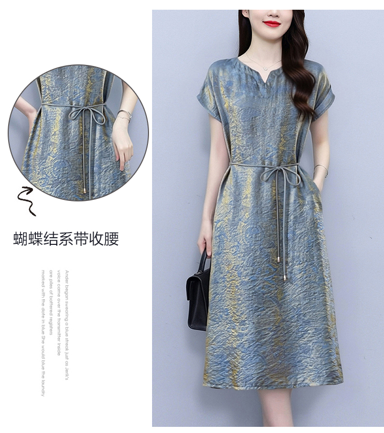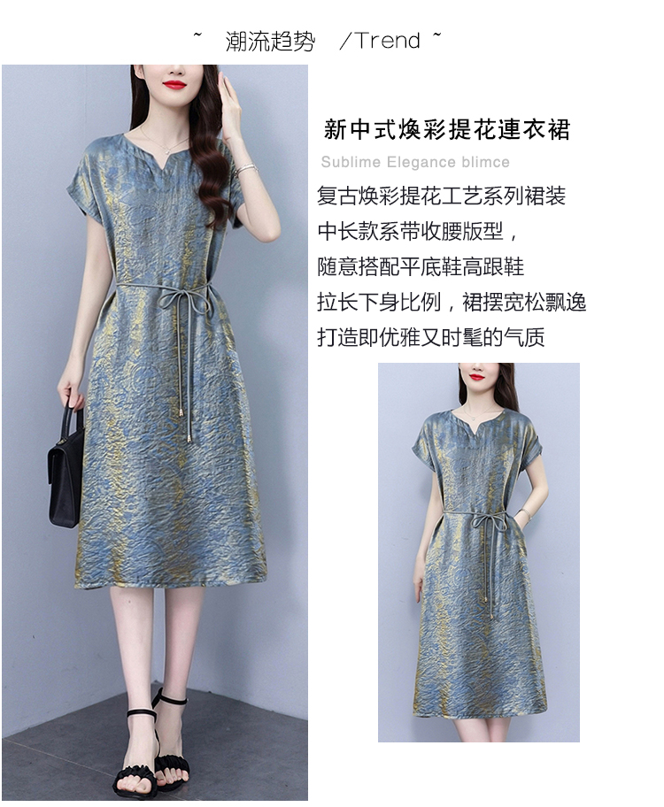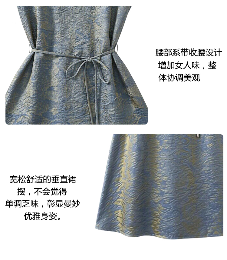 RY2207# 浮光锦新中式连衣裙细腰带A字裙年轻复古高腰显瘦2026夏季新款
