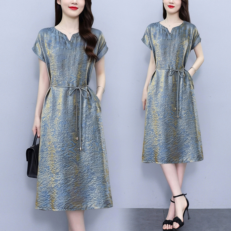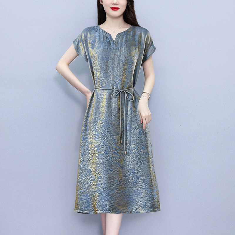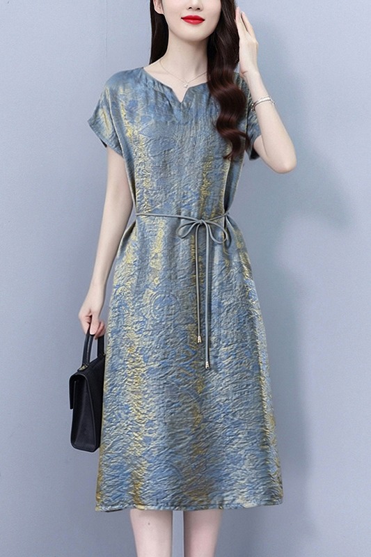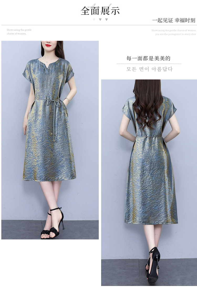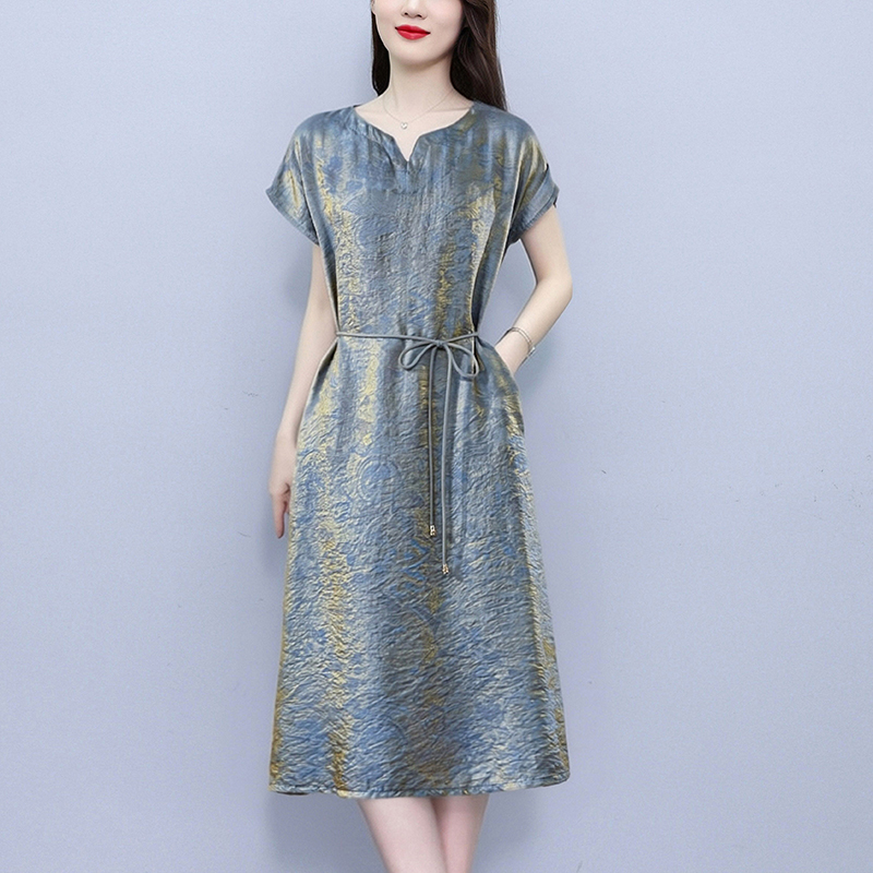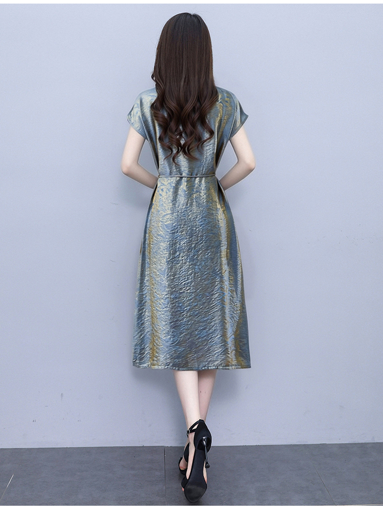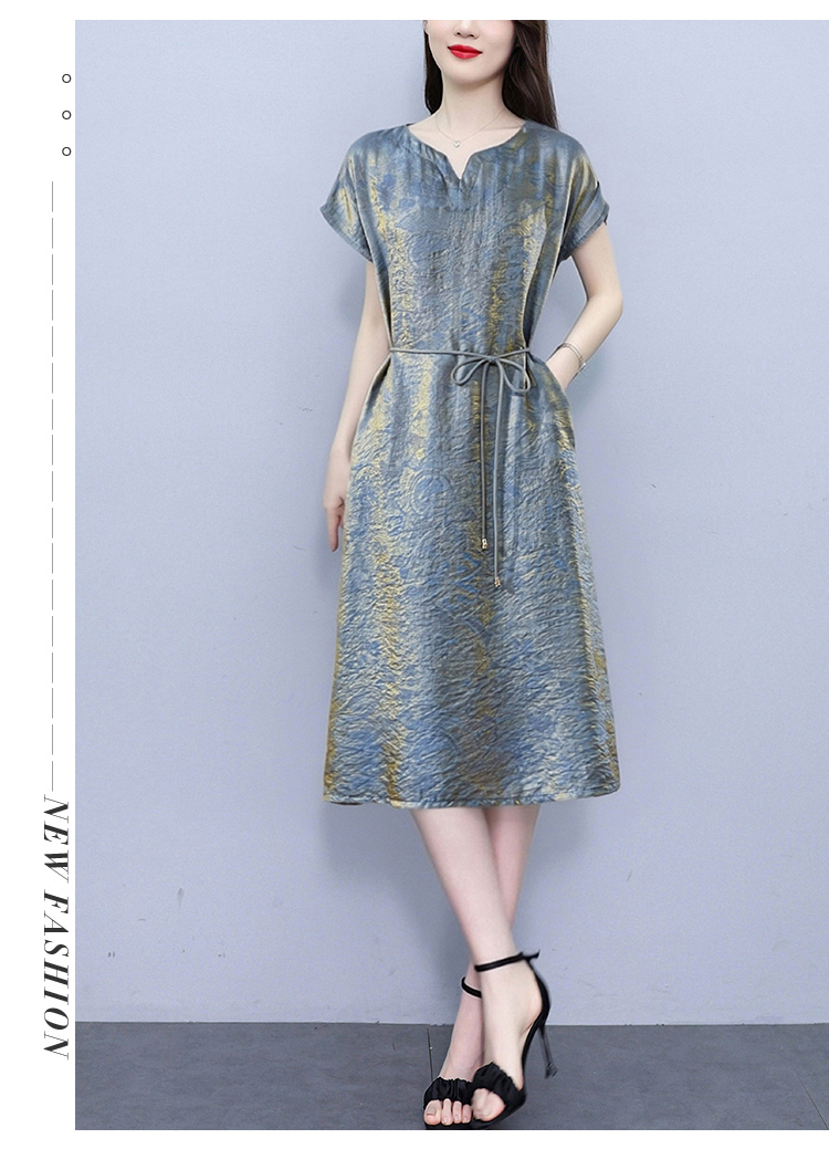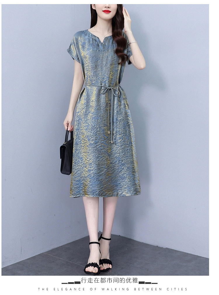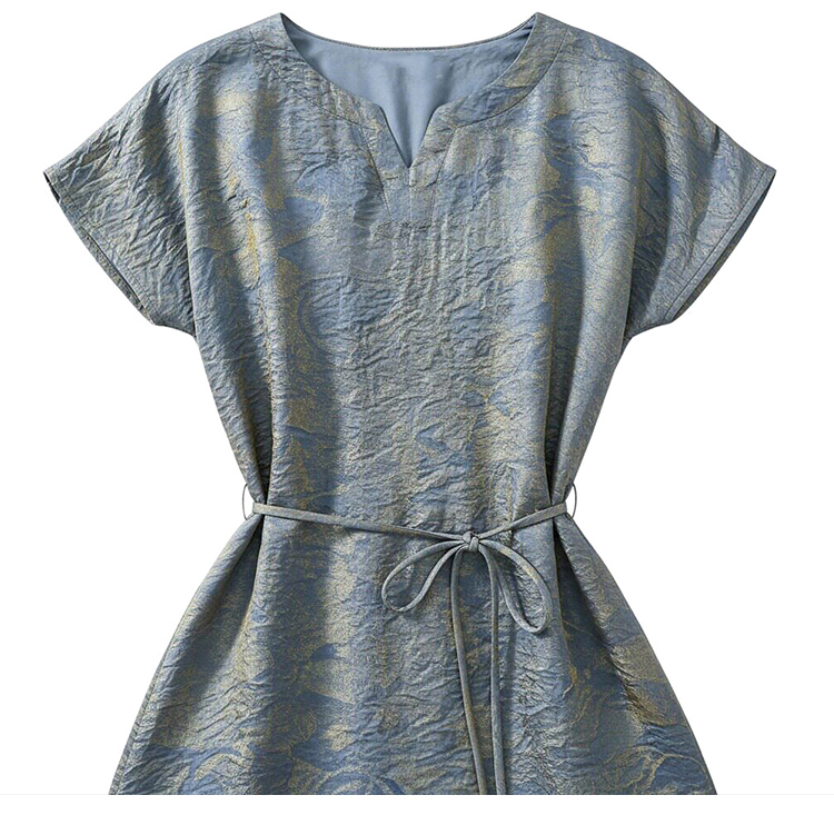 RY2207# 浮光锦新中式连衣裙细腰带A字裙年轻复古高腰显瘦2026夏季新款