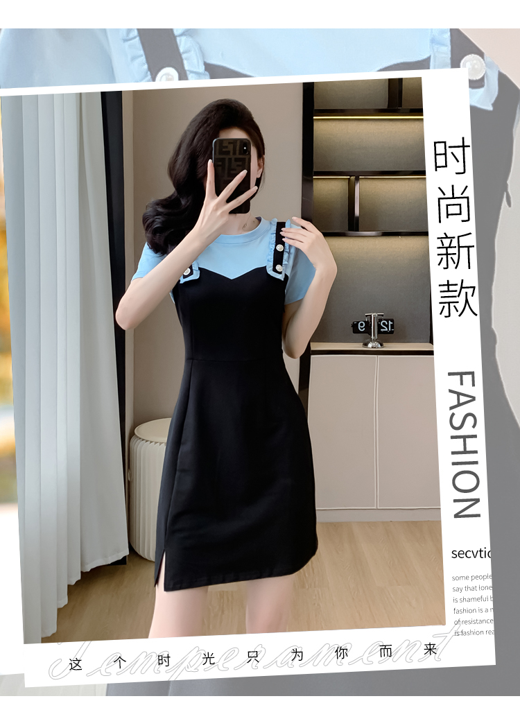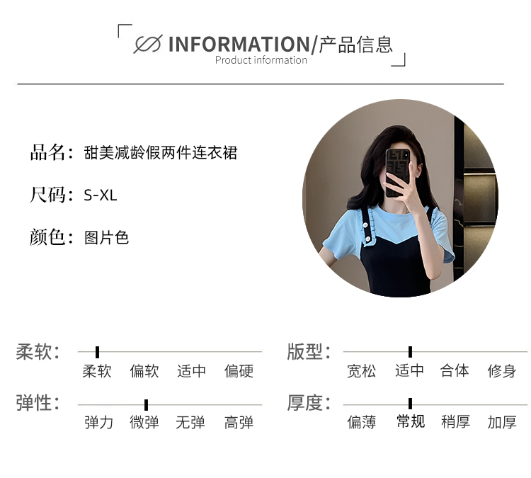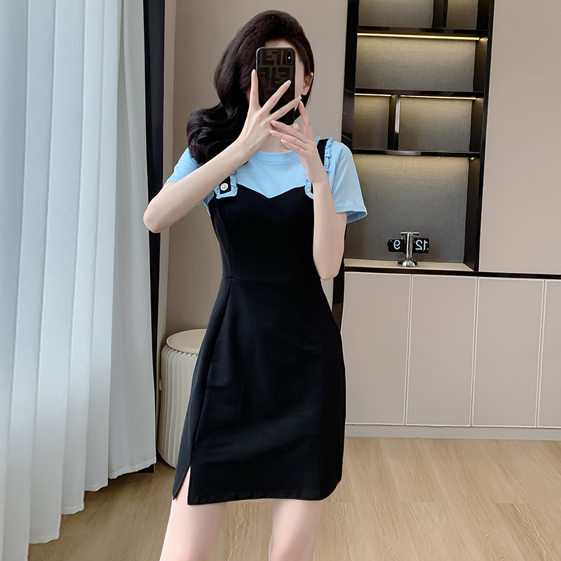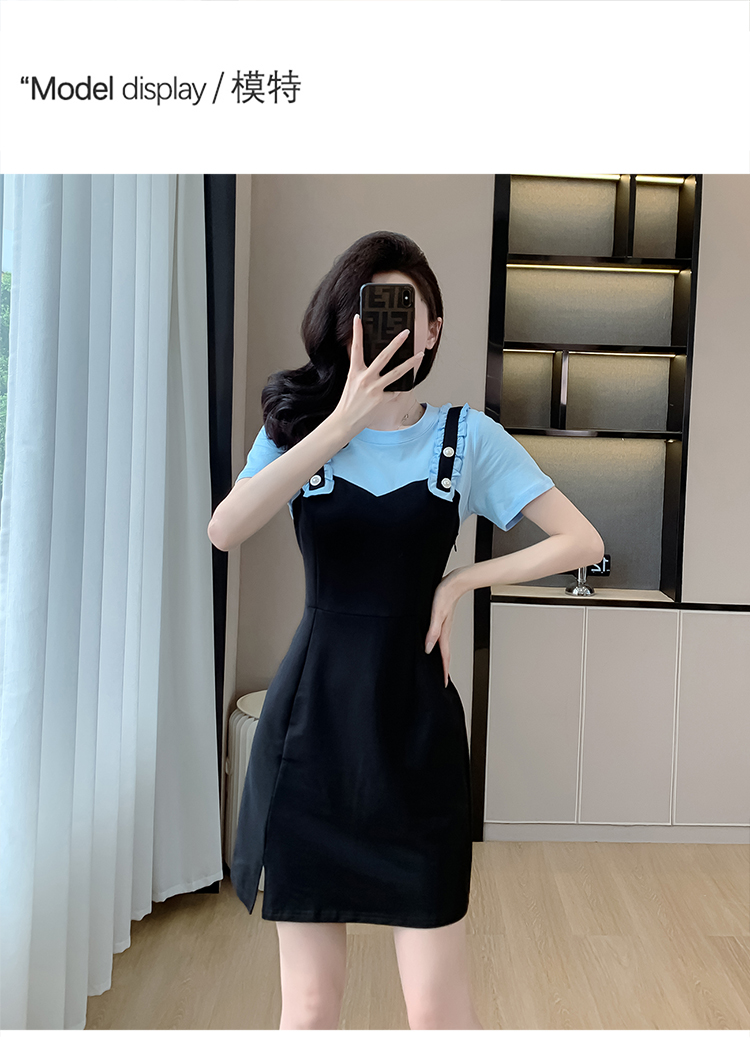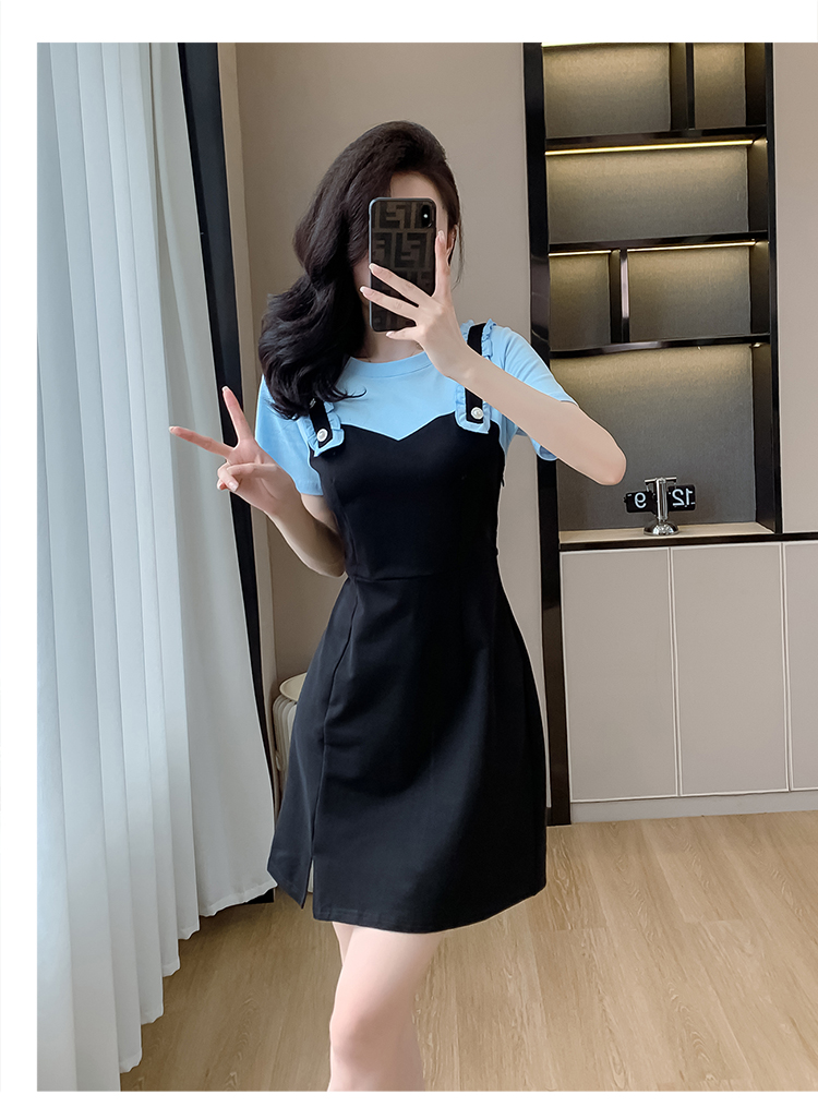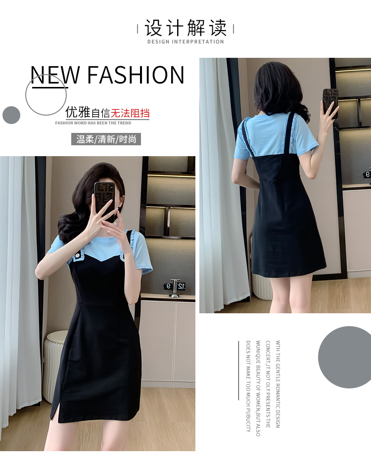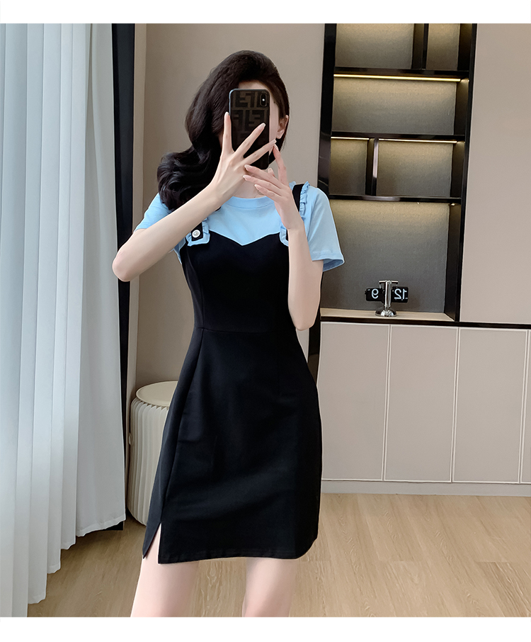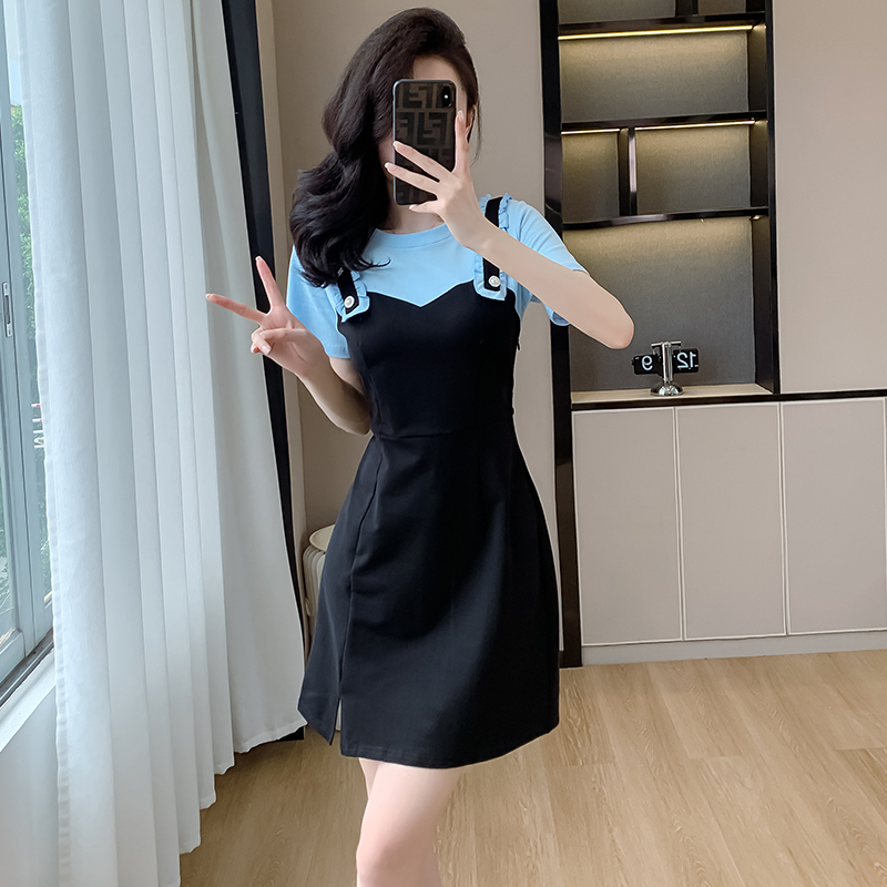 RY2239# 实拍2026夏季新款休闲Tt恤小个子连衣裙假两件拼接减龄显瘦裙子女
