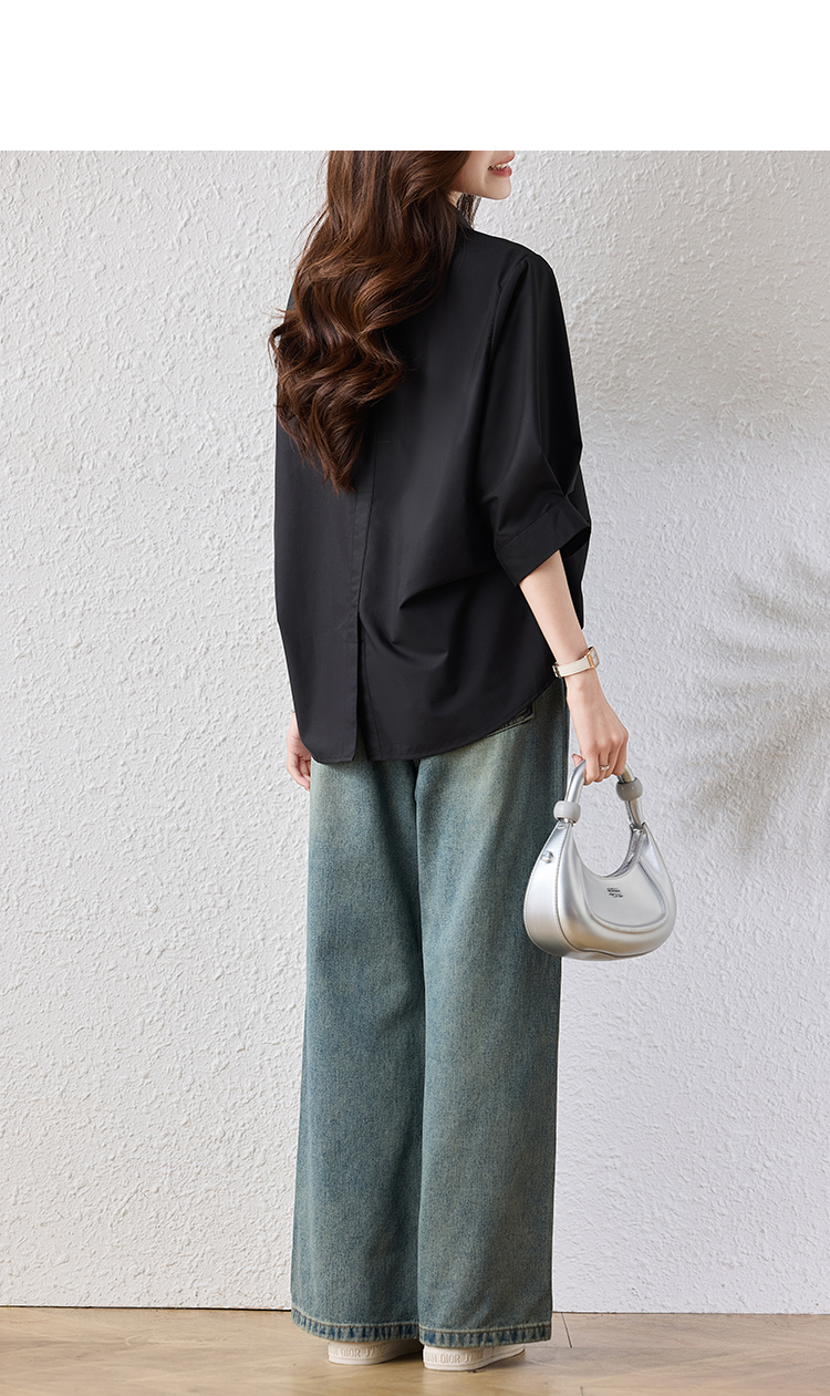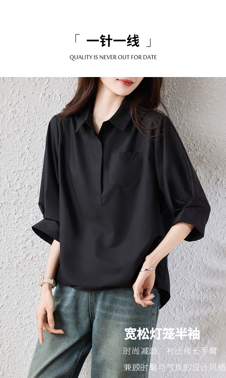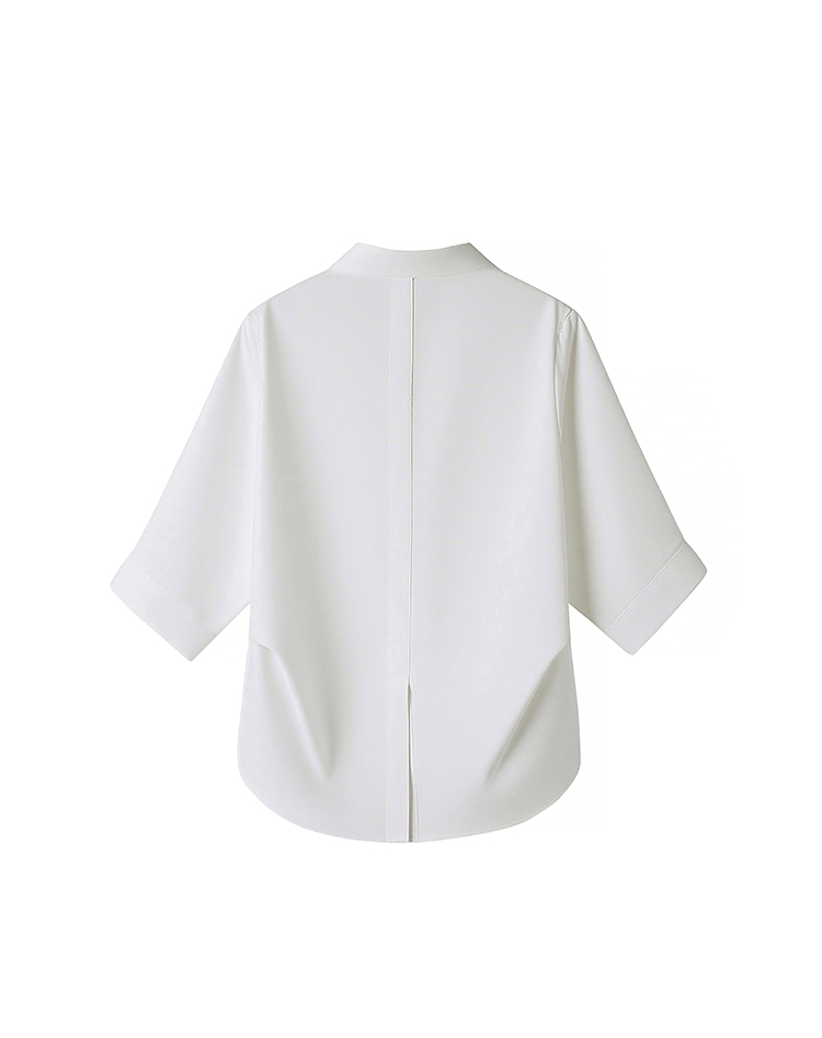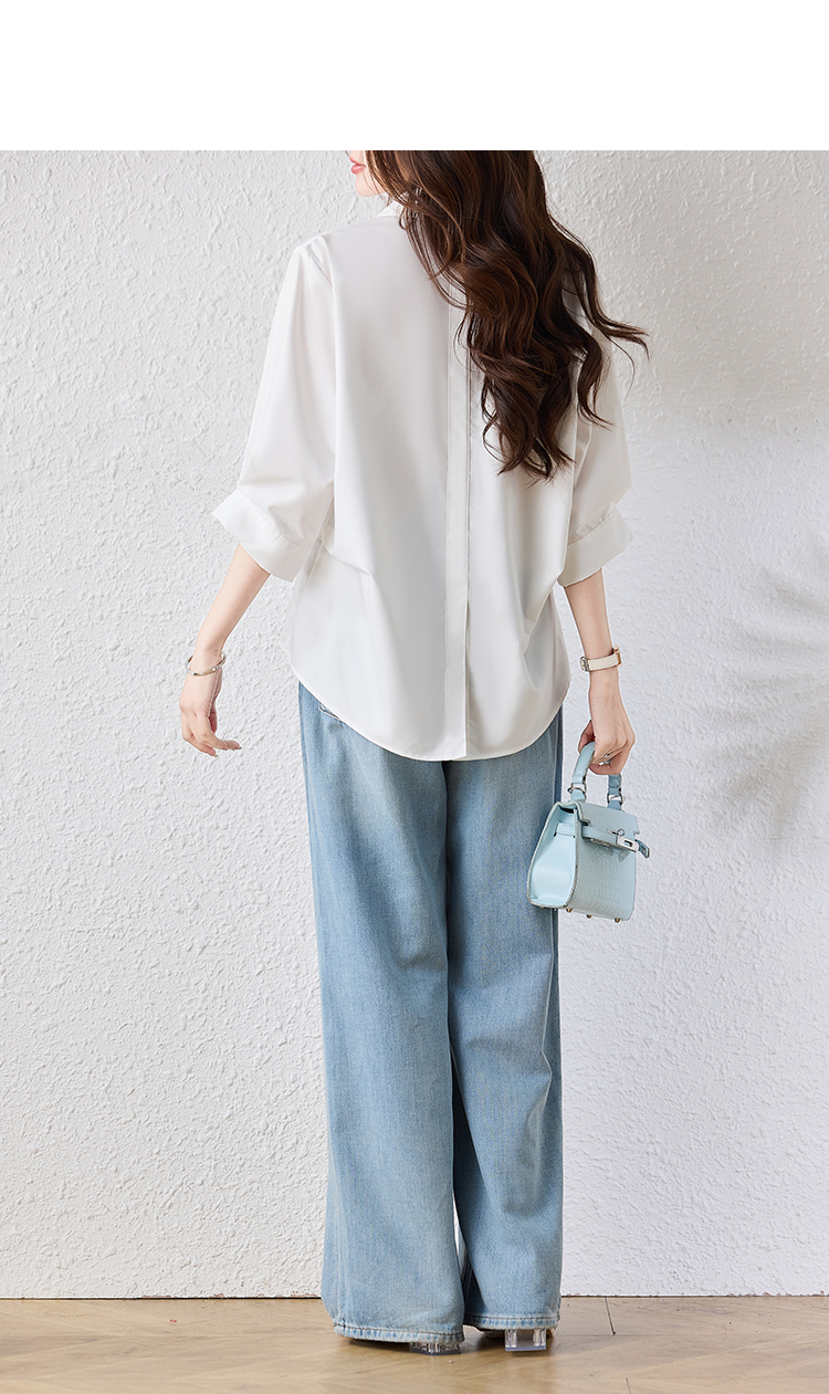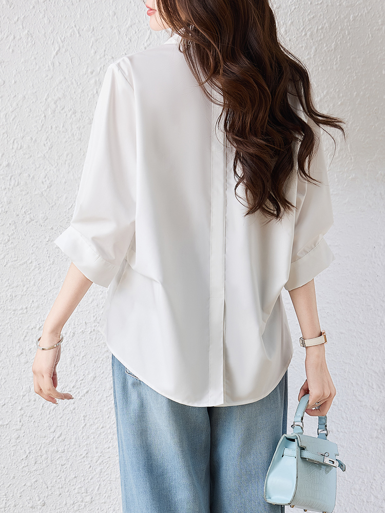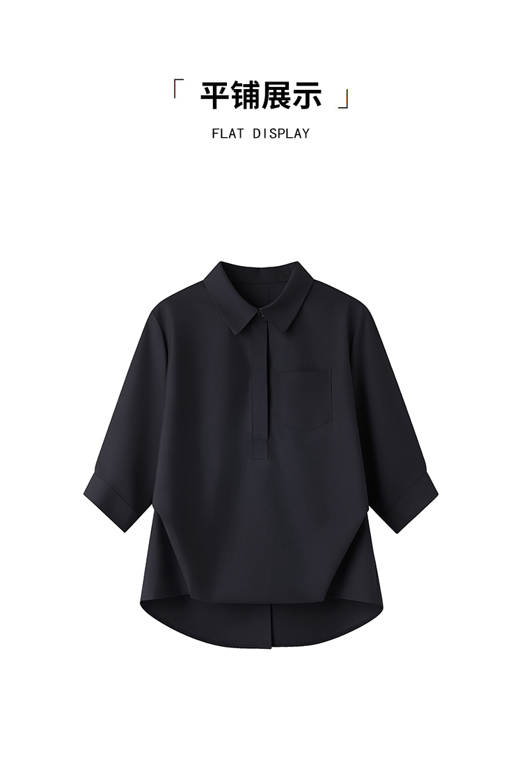RY2251# 实拍纯棉气质纯色短袖衬衫女夏季大码胖mm显瘦设计感后背开叉衬衣