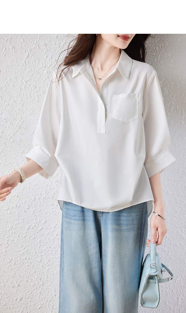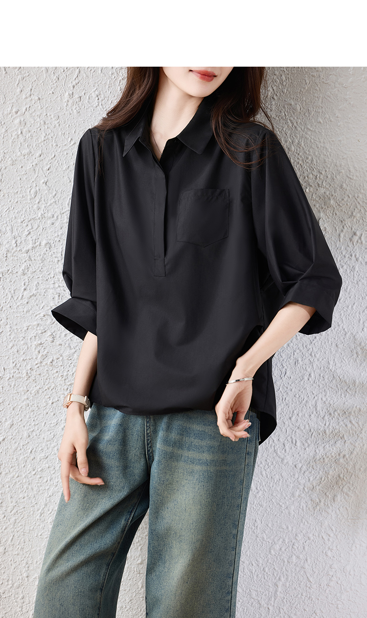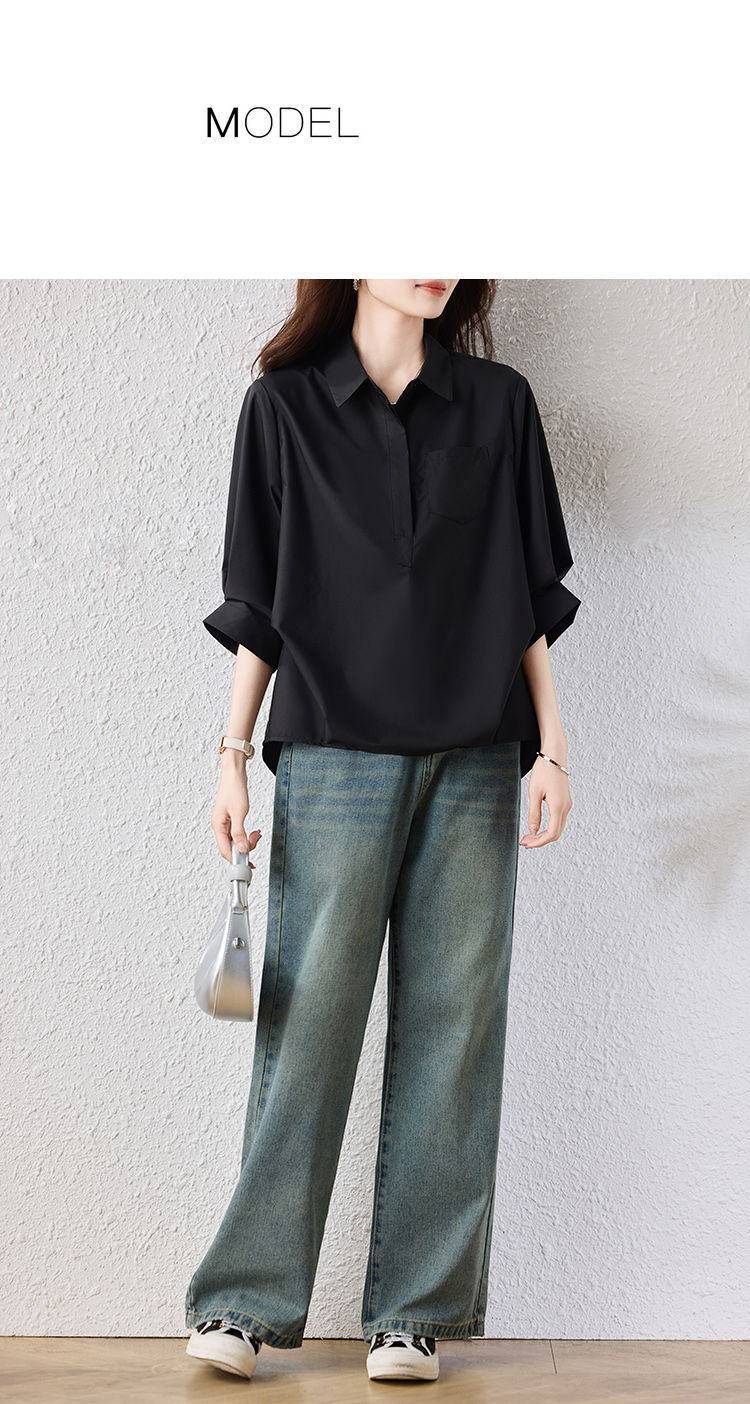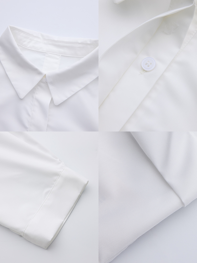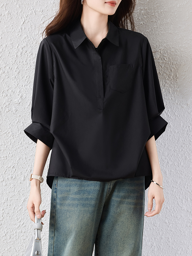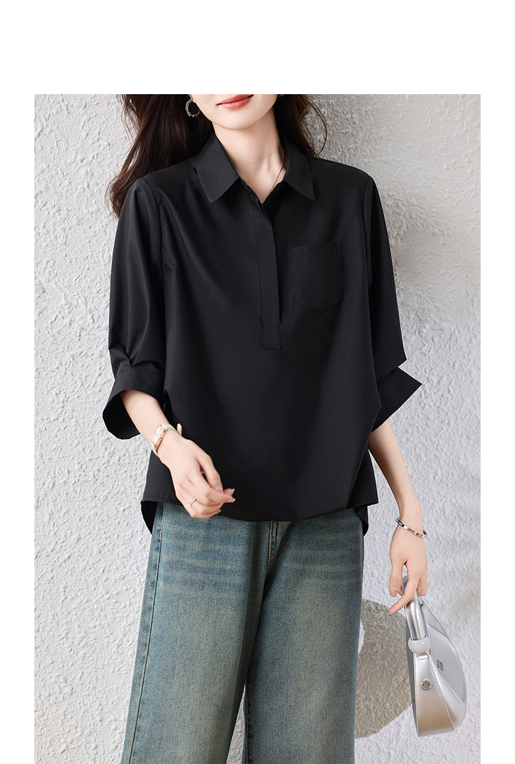 RY2251# 实拍纯棉气质纯色短袖衬衫女夏季大码胖mm显瘦设计感后背开叉衬衣
