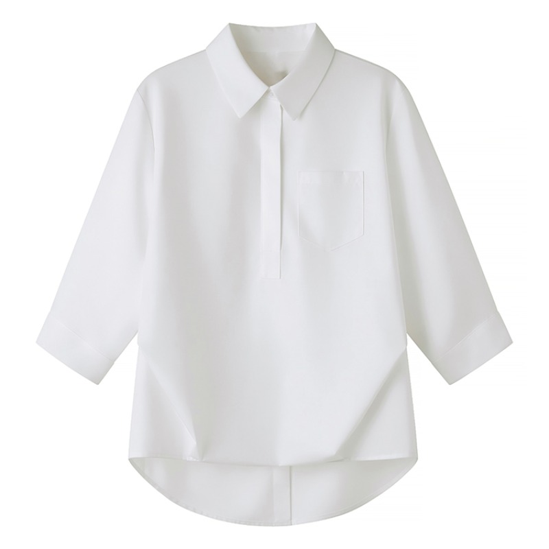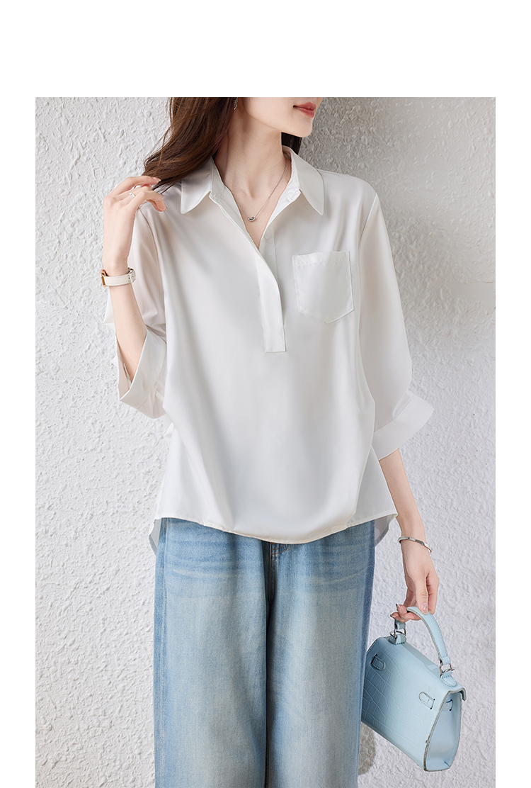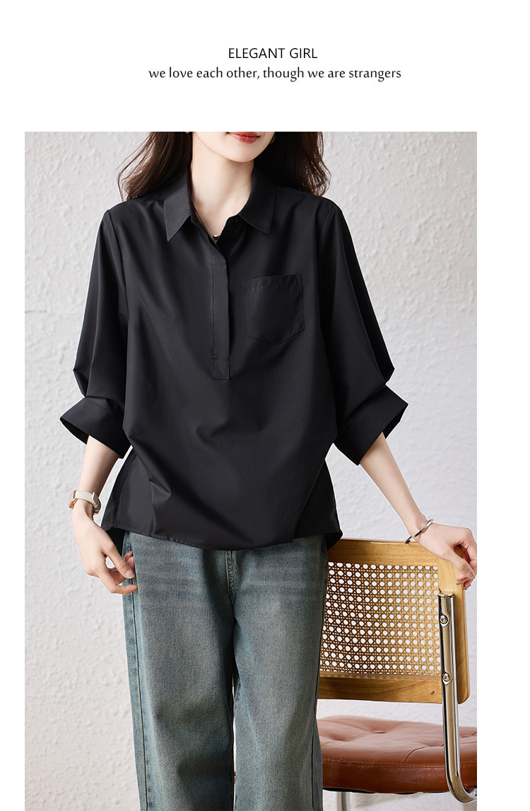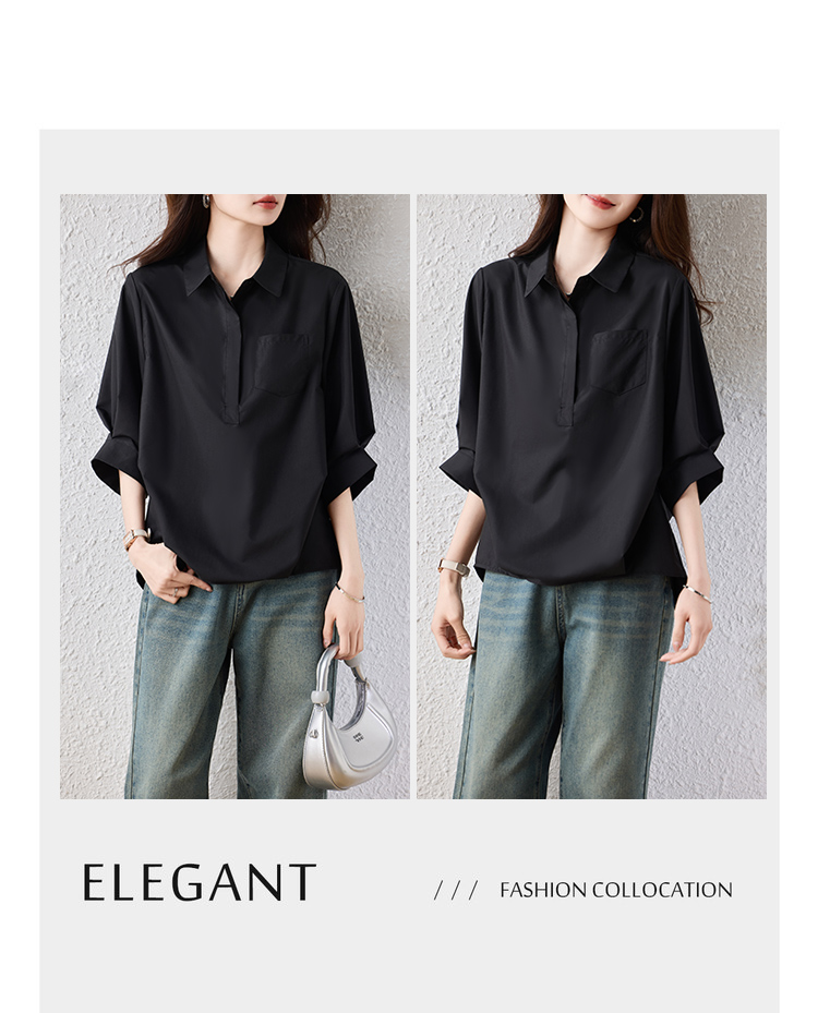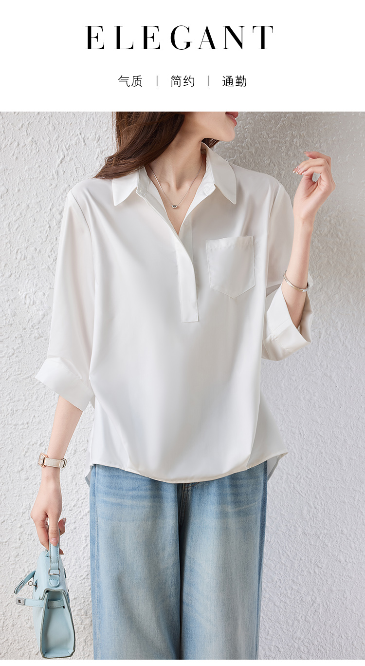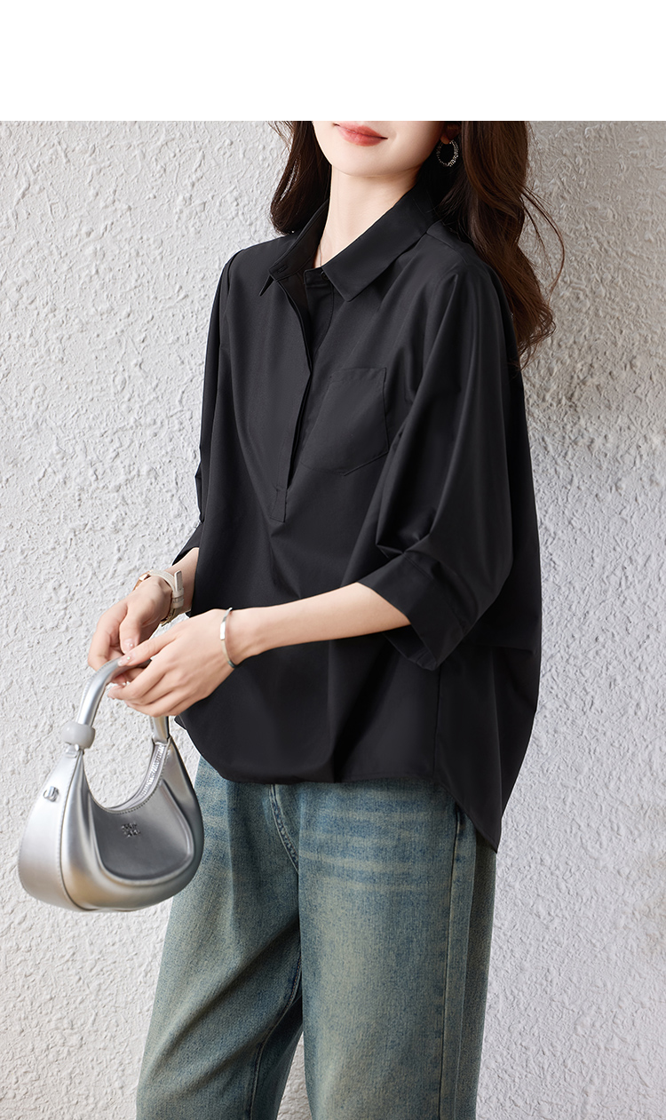 RY2251# 实拍纯棉气质纯色短袖衬衫女夏季大码胖mm显瘦设计感后背开叉衬衣