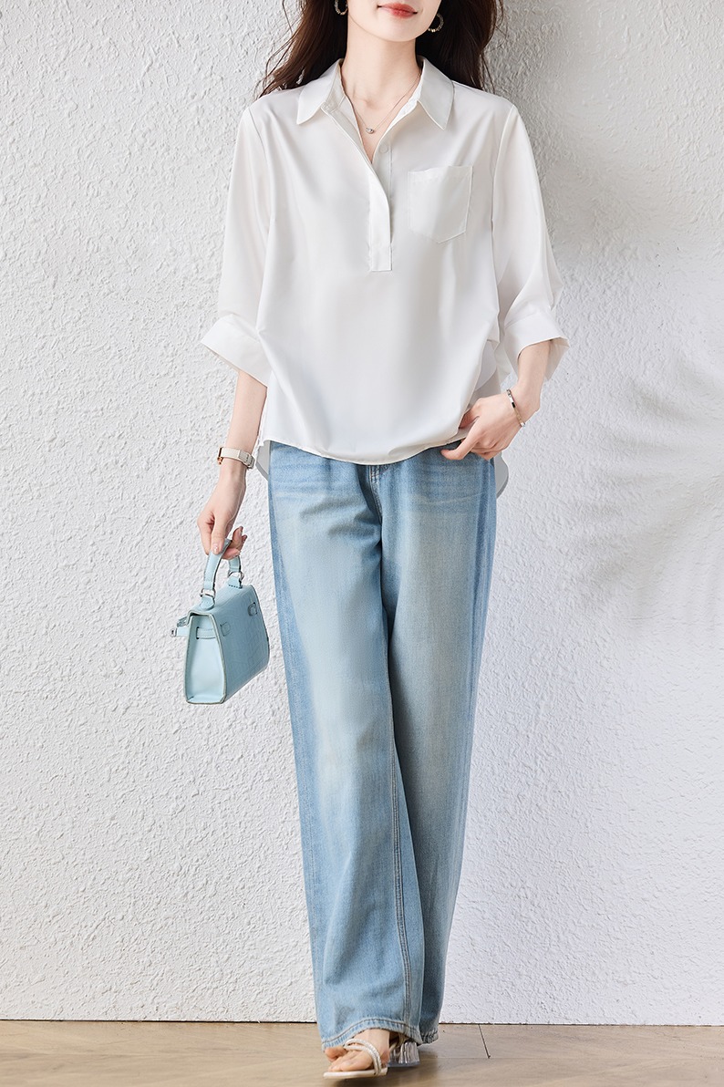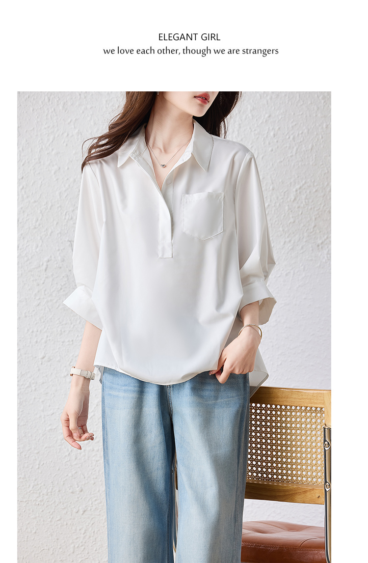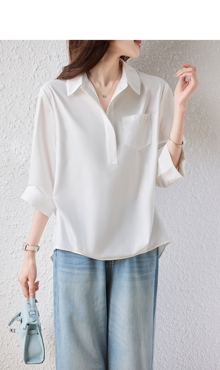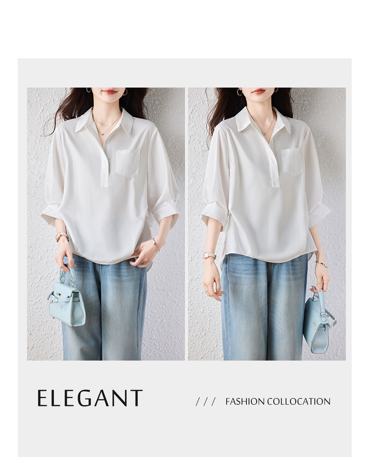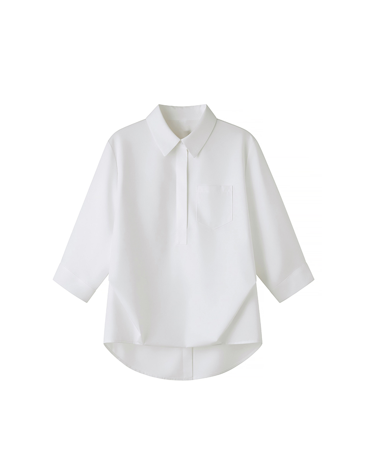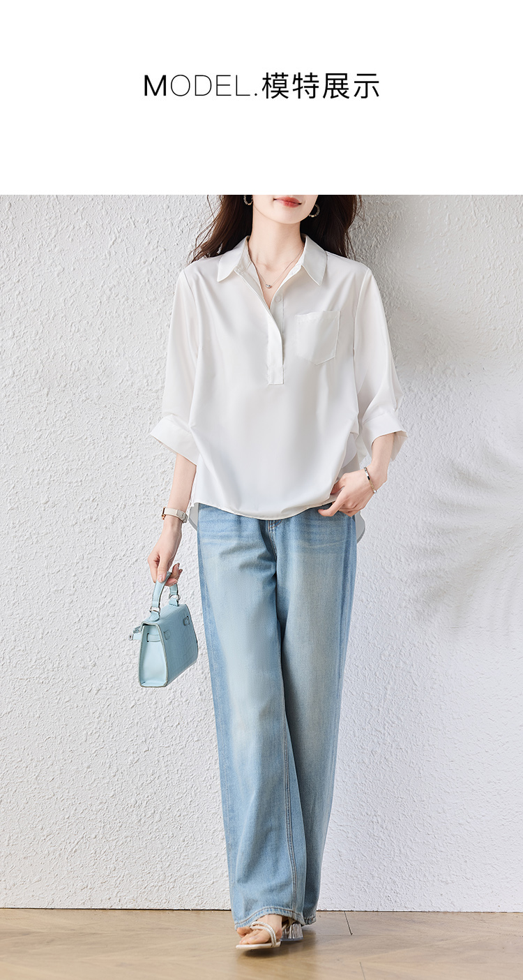 RY2251# 实拍纯棉气质纯色短袖衬衫女夏季大码胖mm显瘦设计感后背开叉衬衣