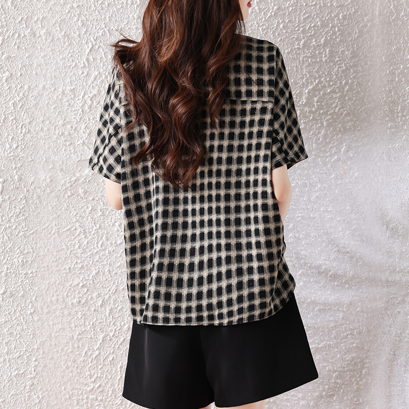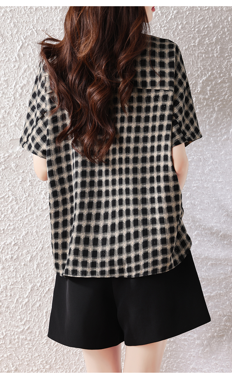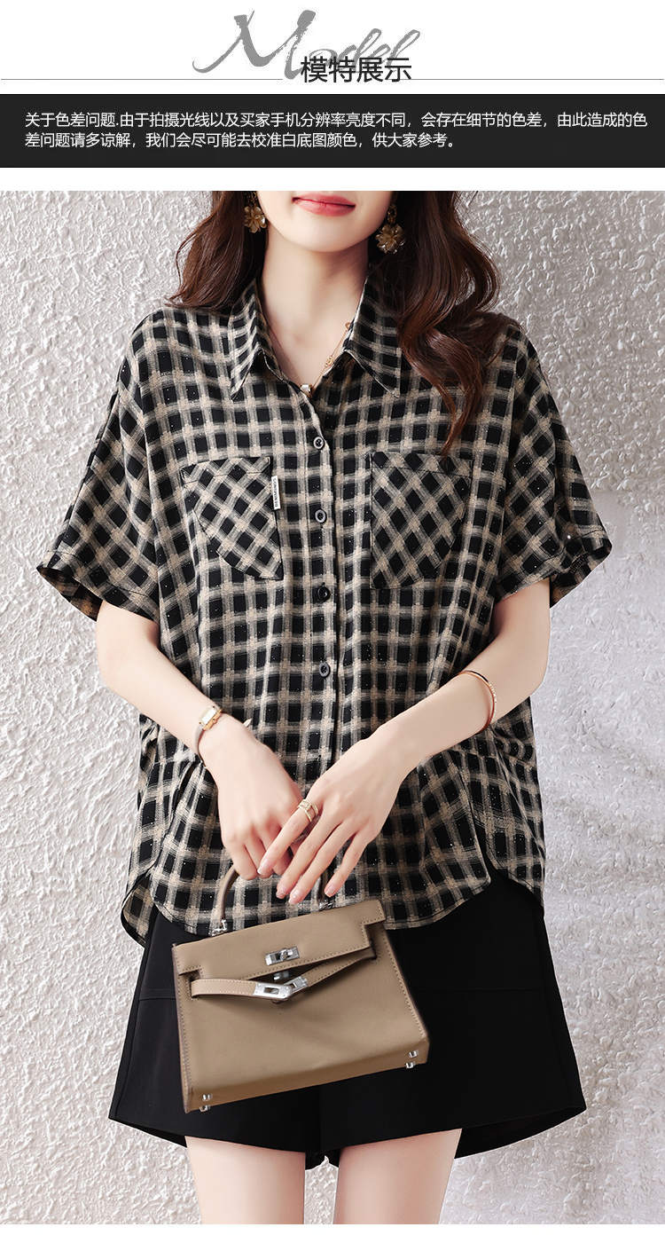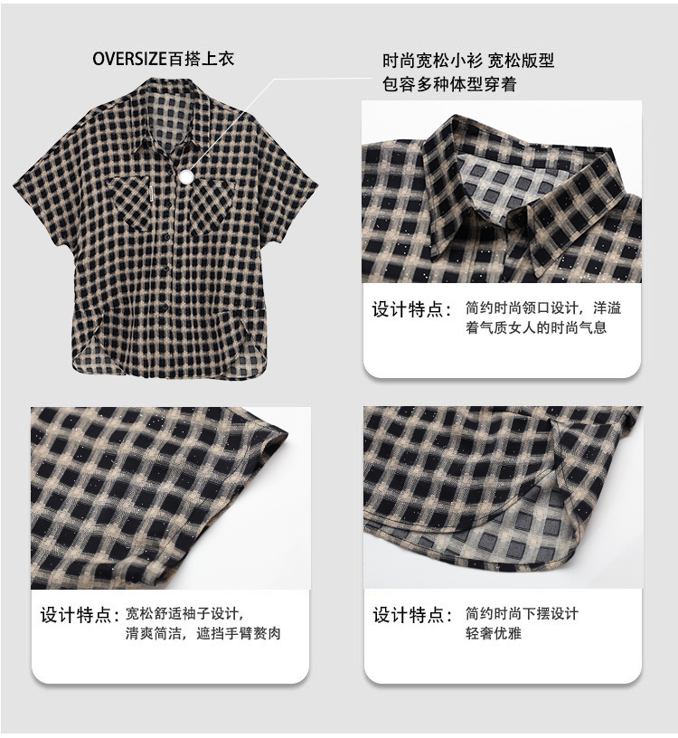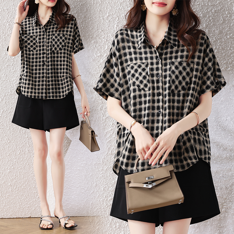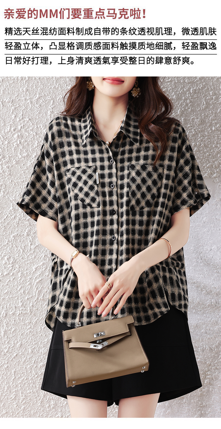 RY2320# 实拍大码女装2026夏季新款短袖百搭衬衣休闲时尚简约格子上衣