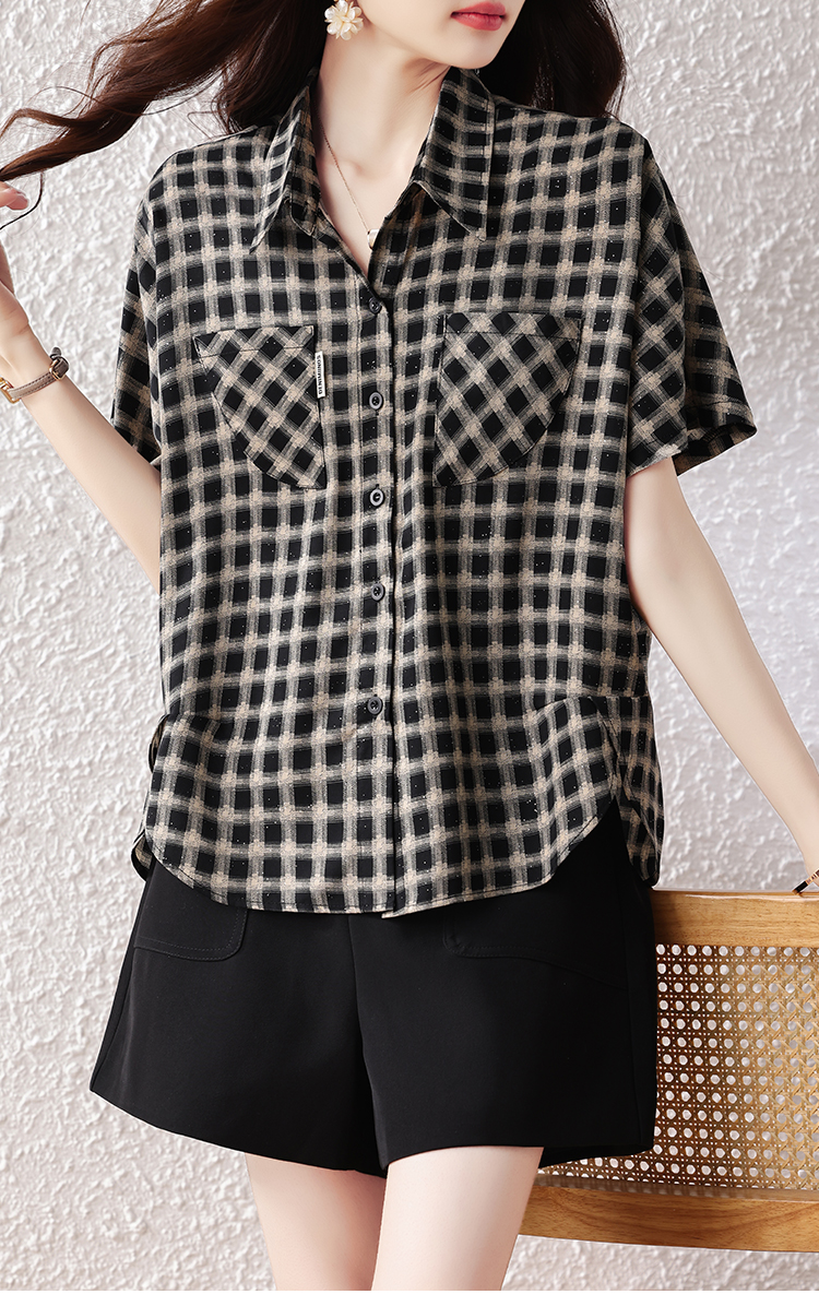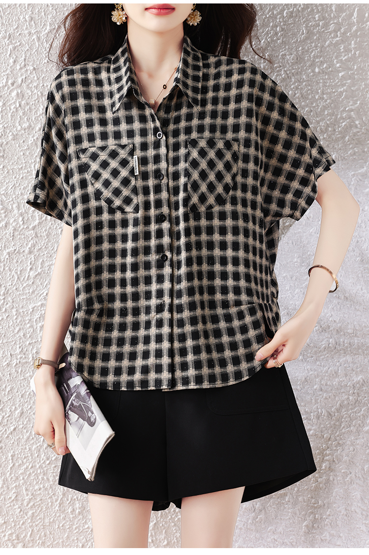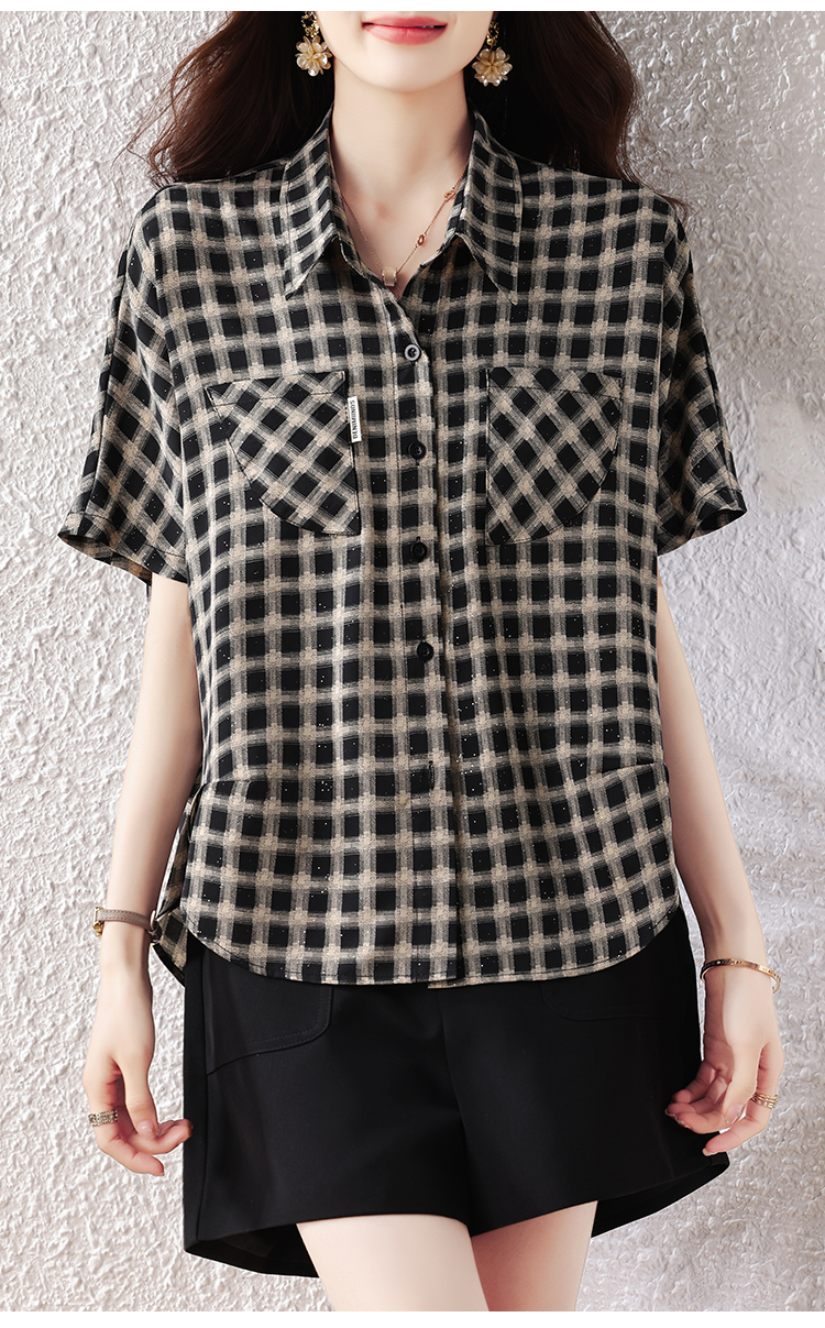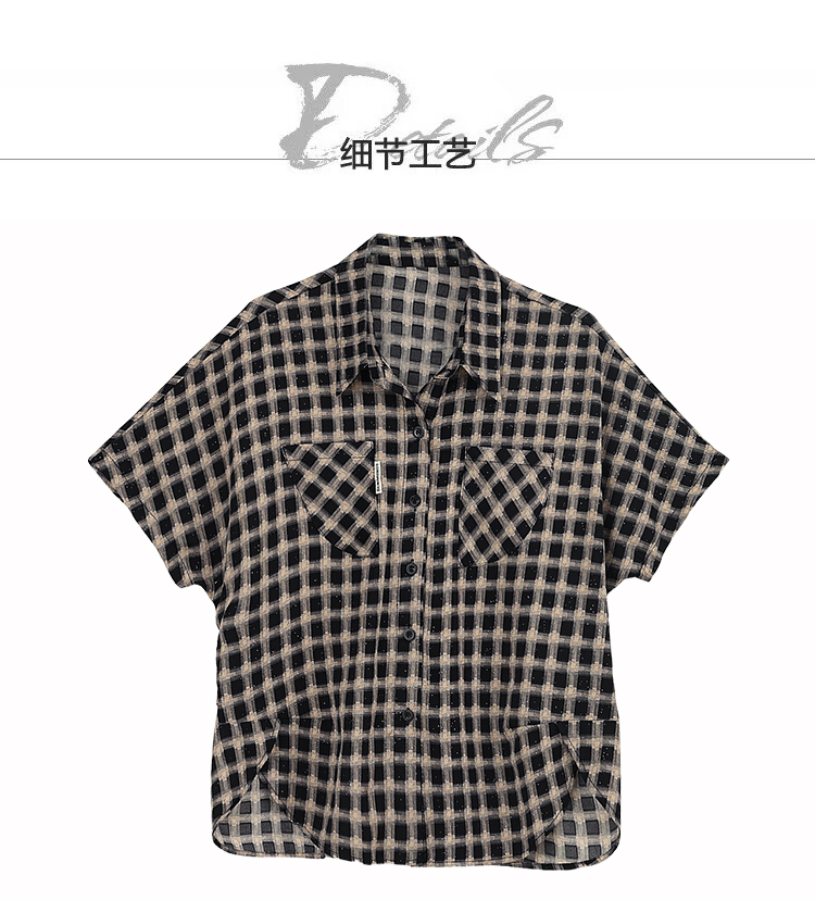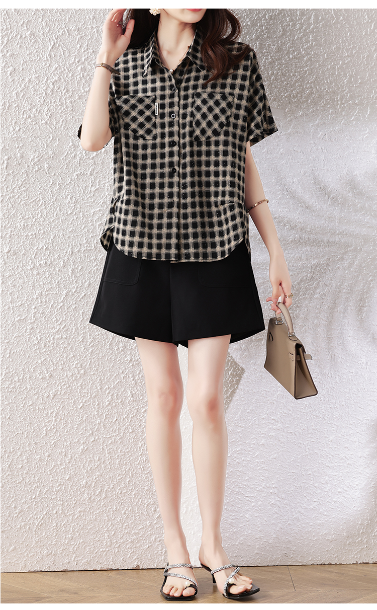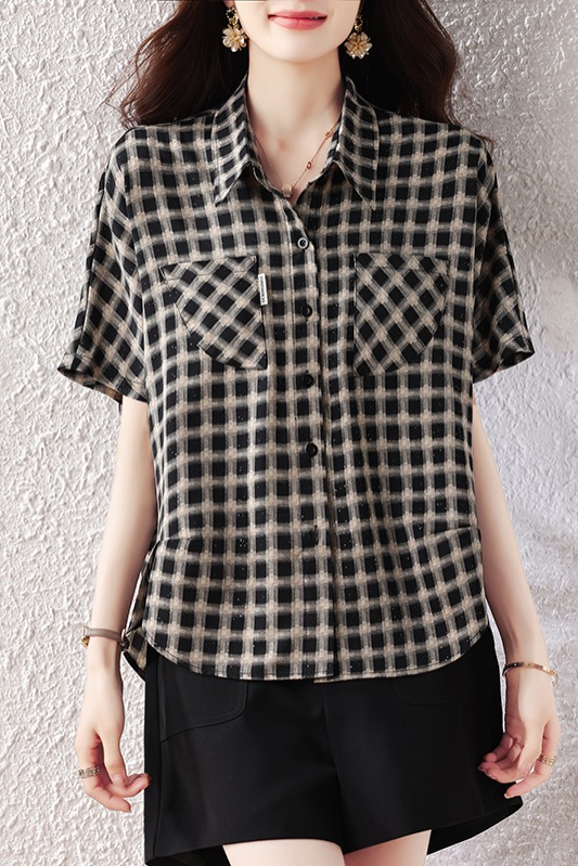 RY2320# 实拍大码女装2026夏季新款短袖百搭衬衣休闲时尚简约格子上衣