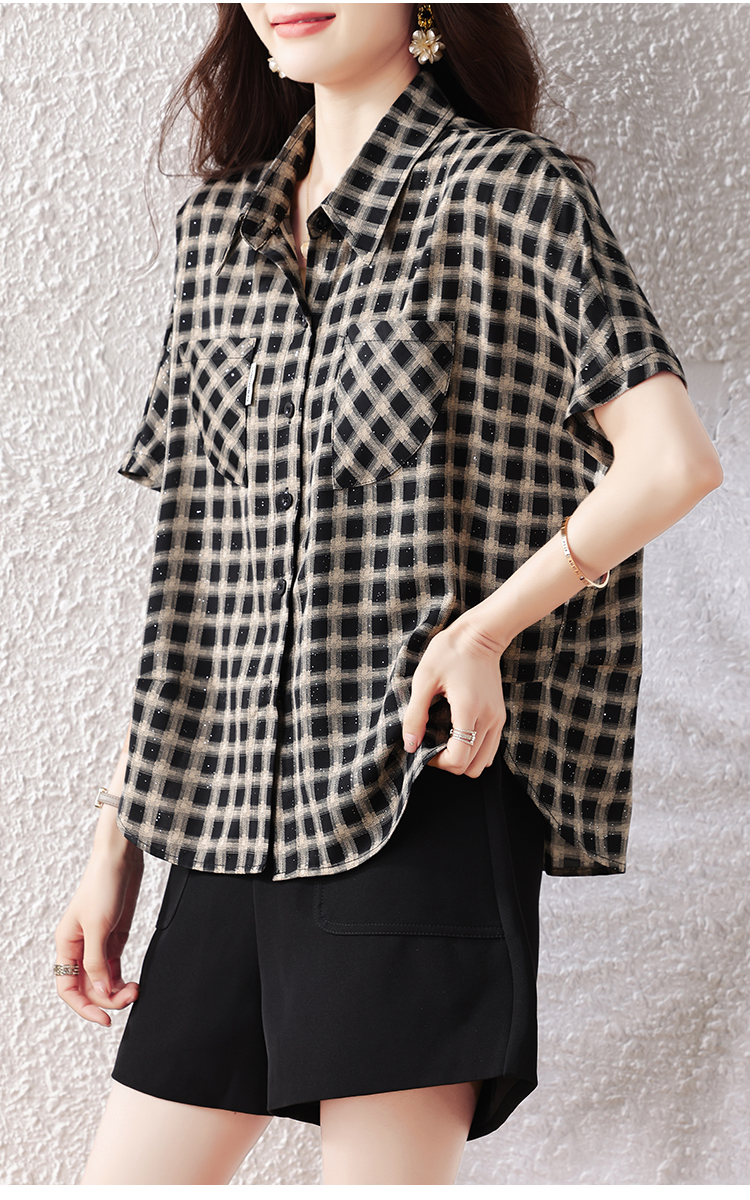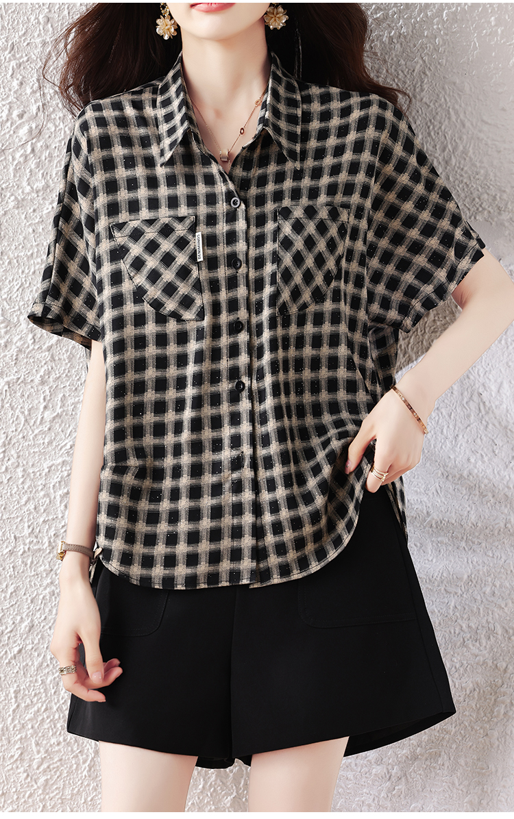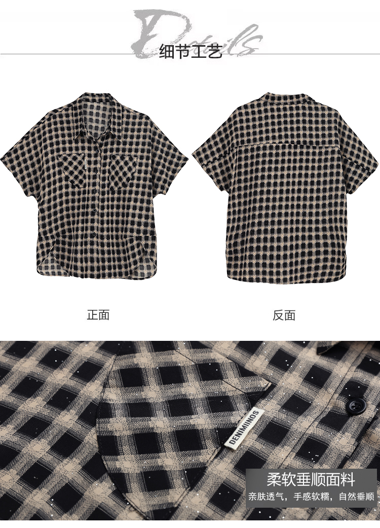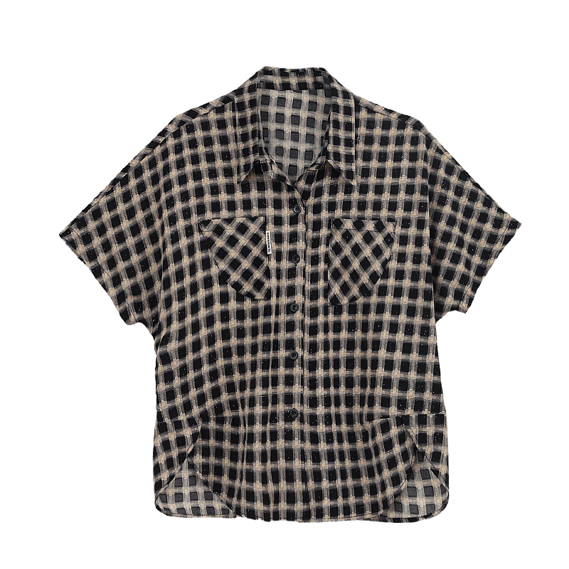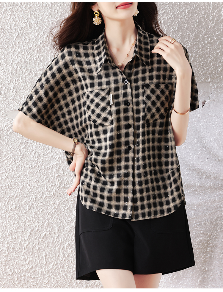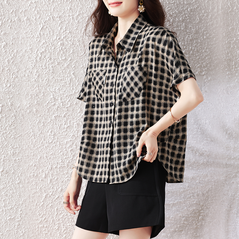 RY2320# 实拍大码女装2026夏季新款短袖百搭衬衣休闲时尚简约格子上衣