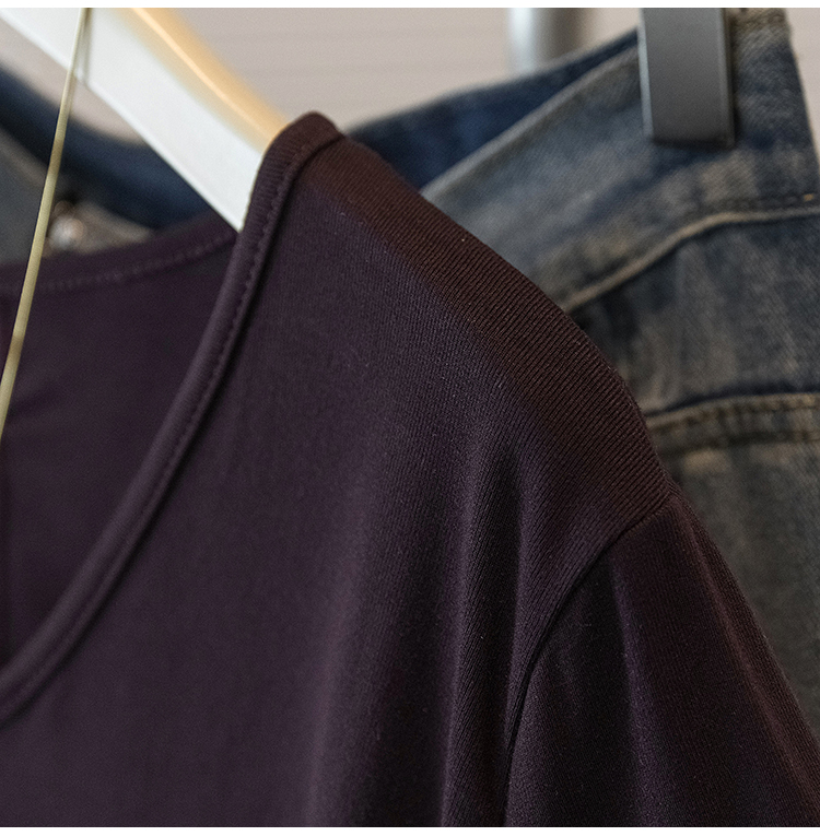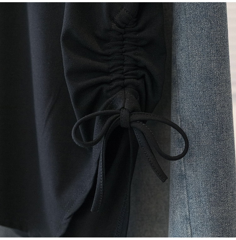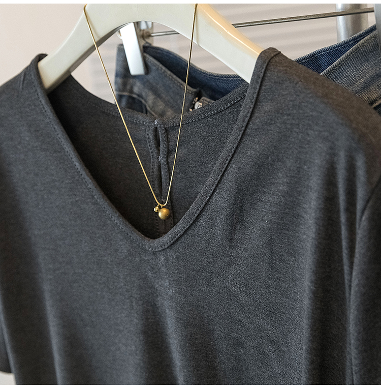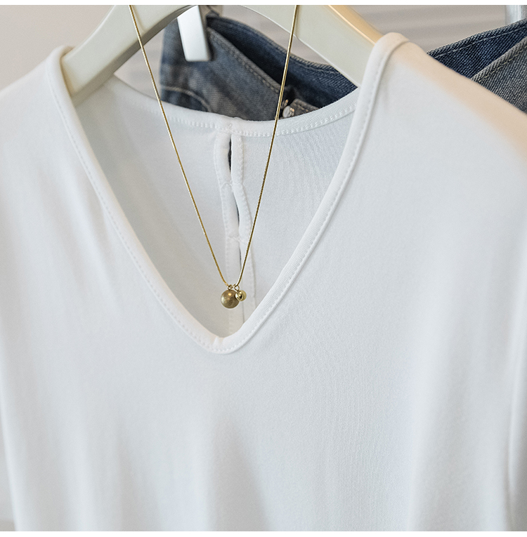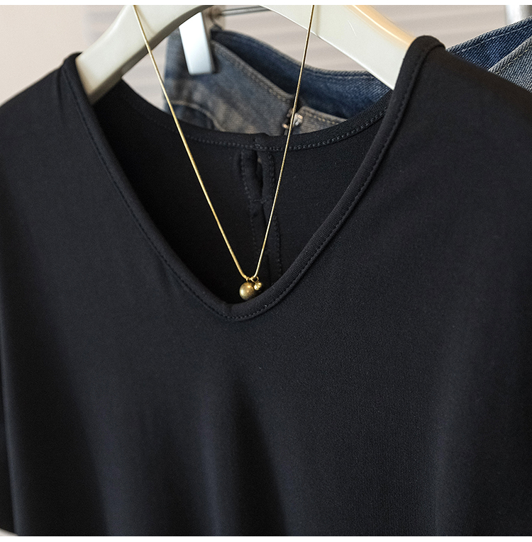 RY2504# 人棉拼接蕾丝假两件v领短袖T恤女夏季修身撞色设计感纯欲上衣