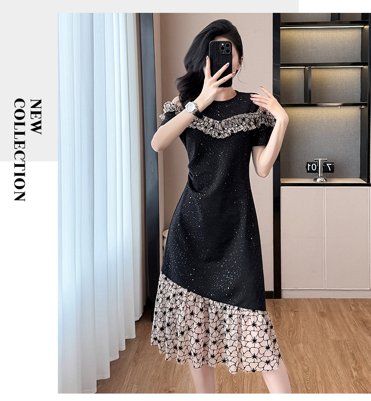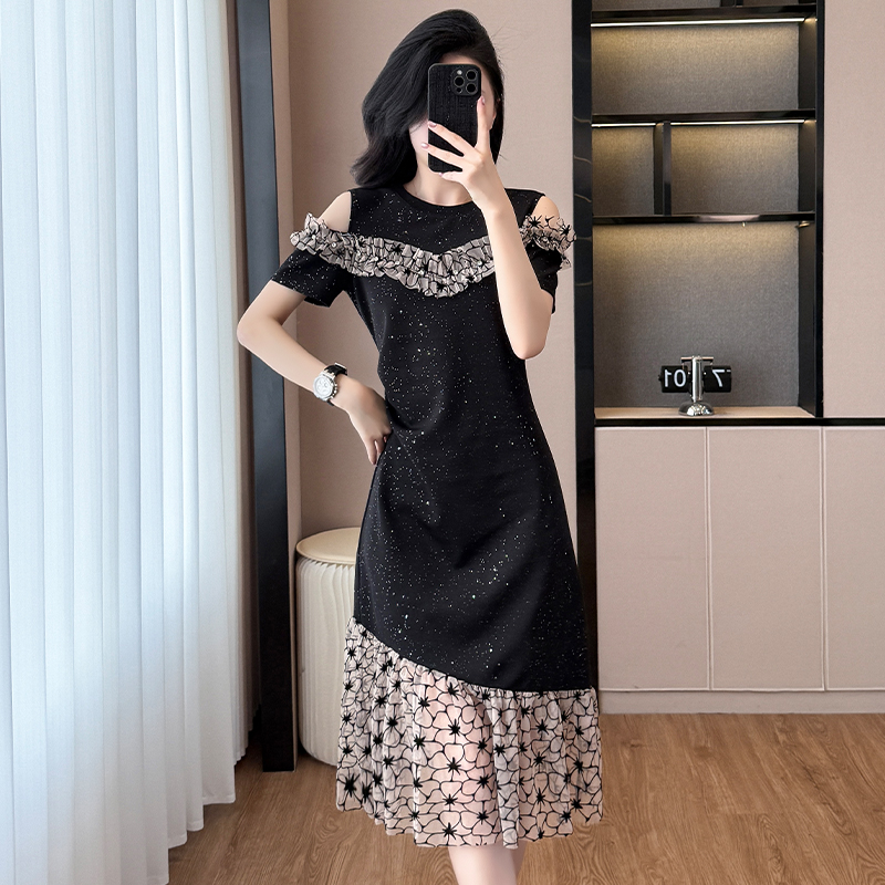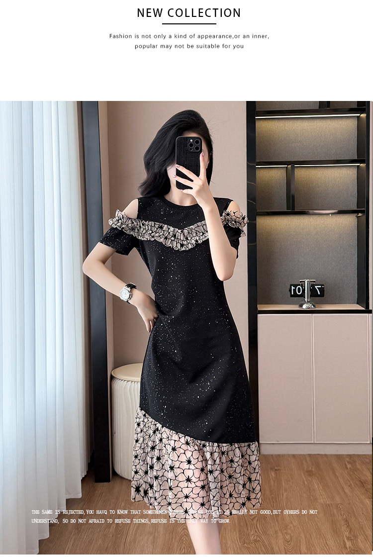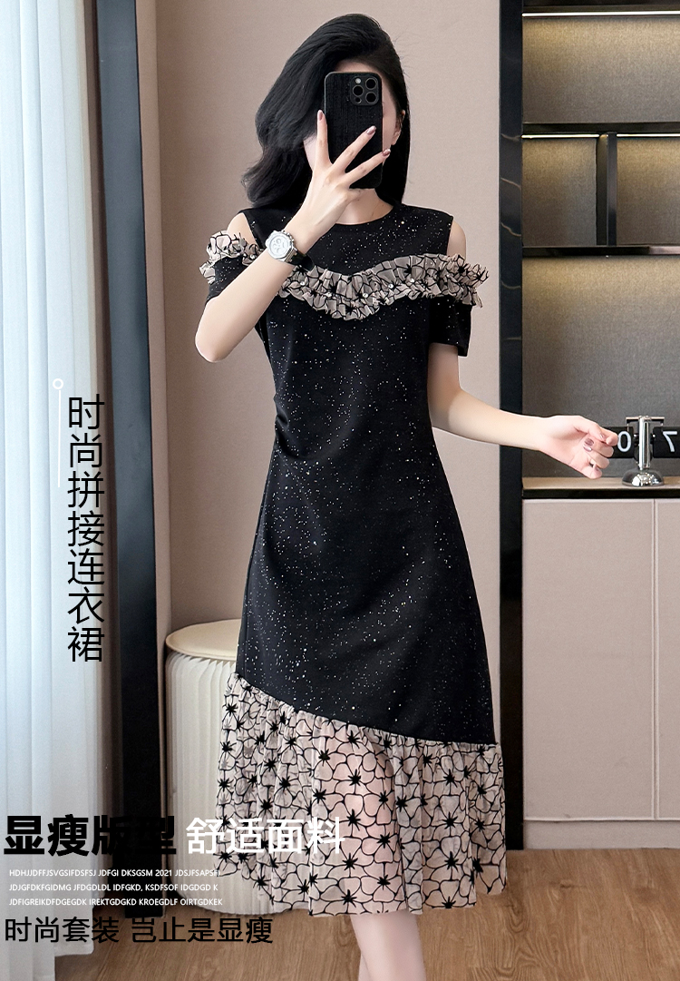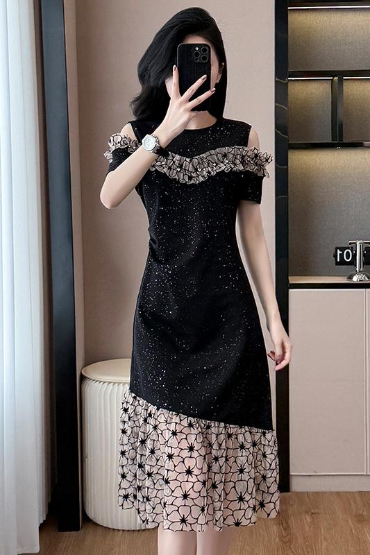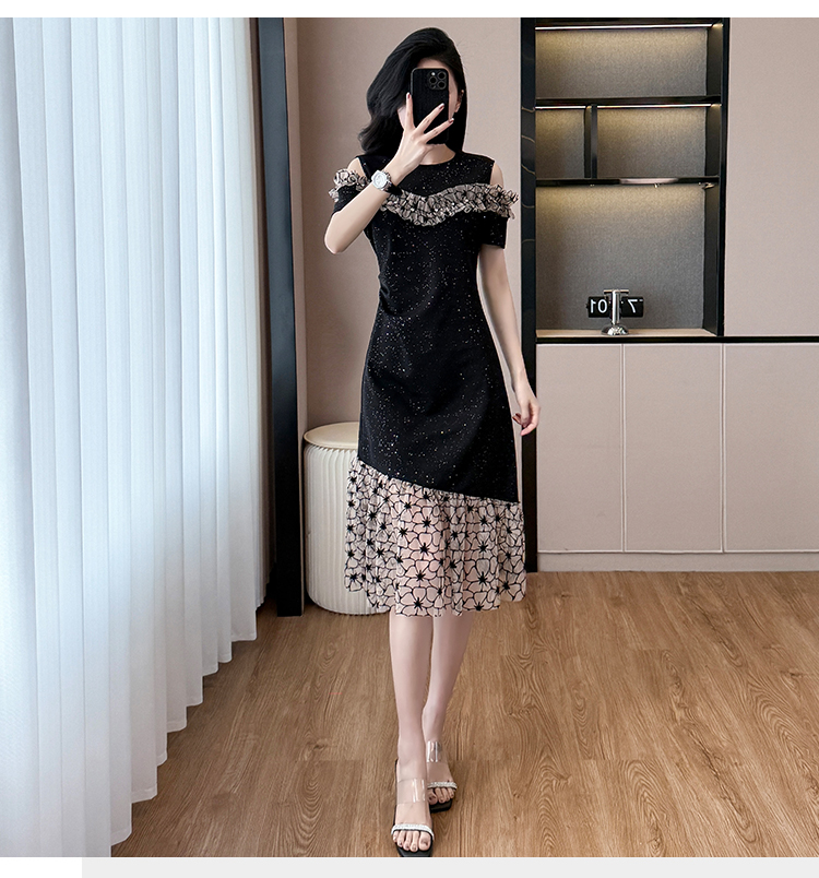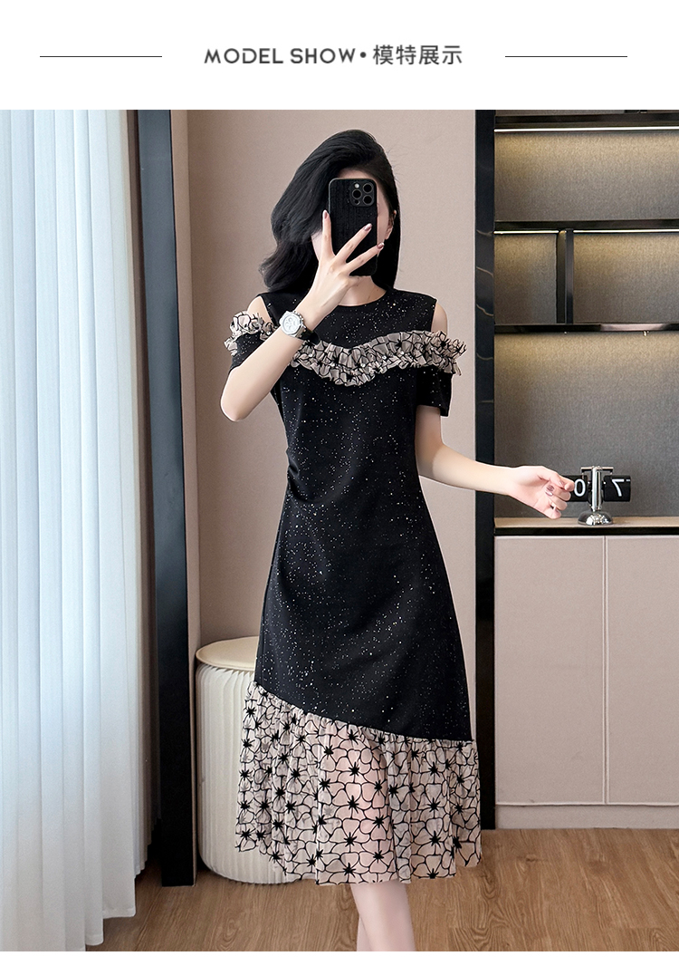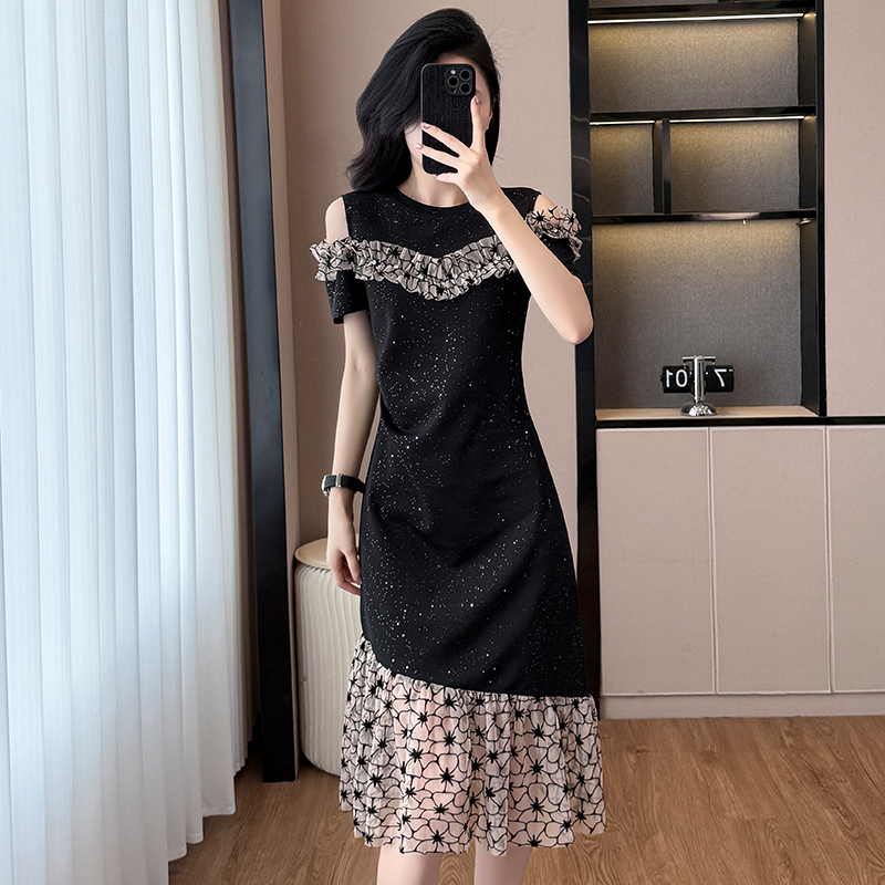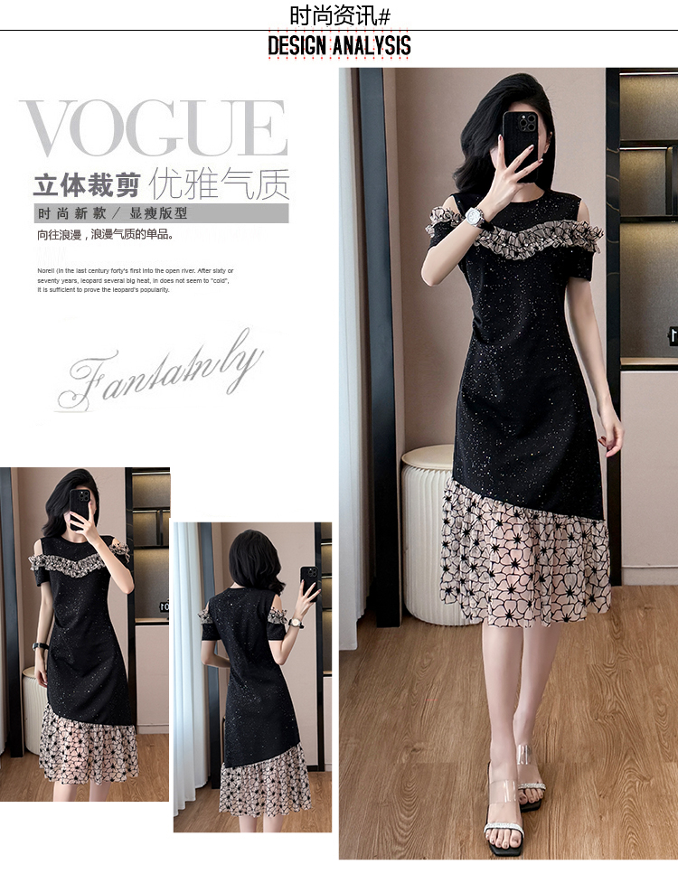 RY2645# 设计感高级连衣裙女2026夏拼接露肩气质收腰显瘦拼接鱼尾裙