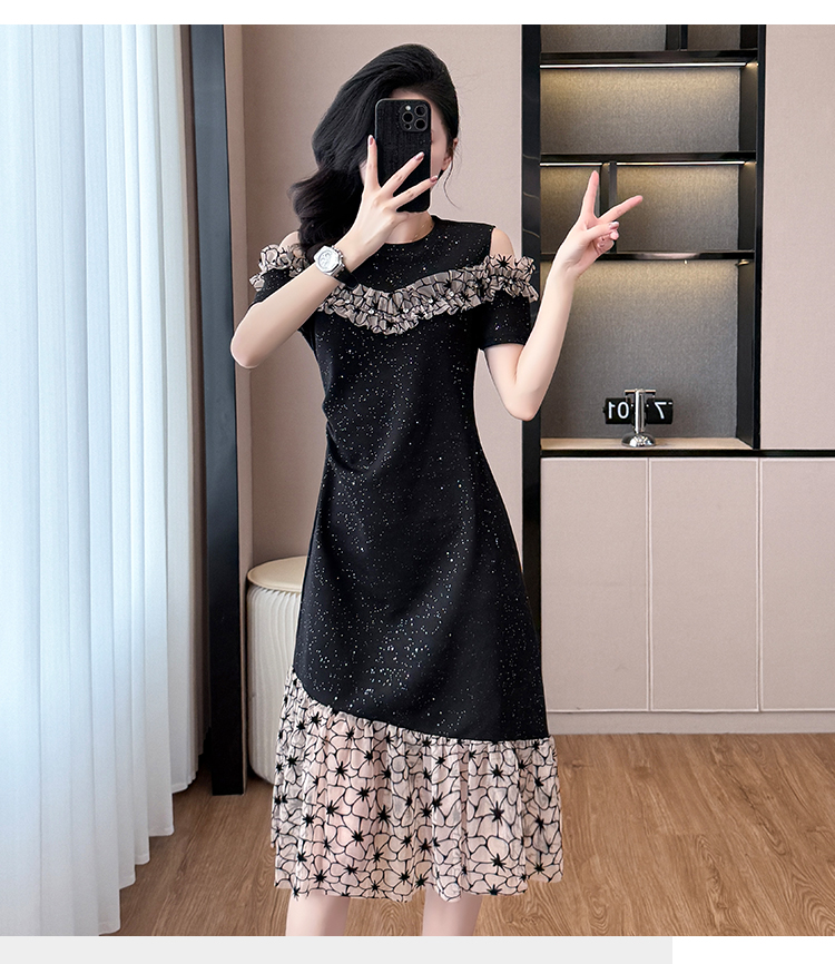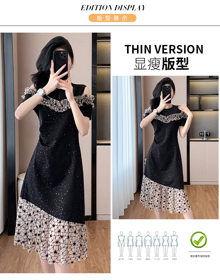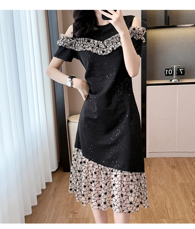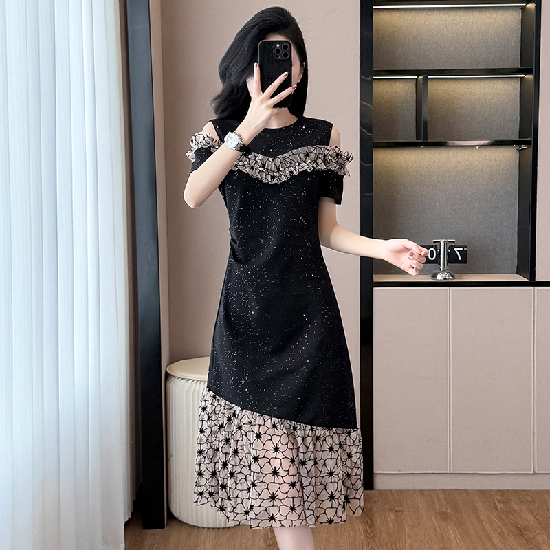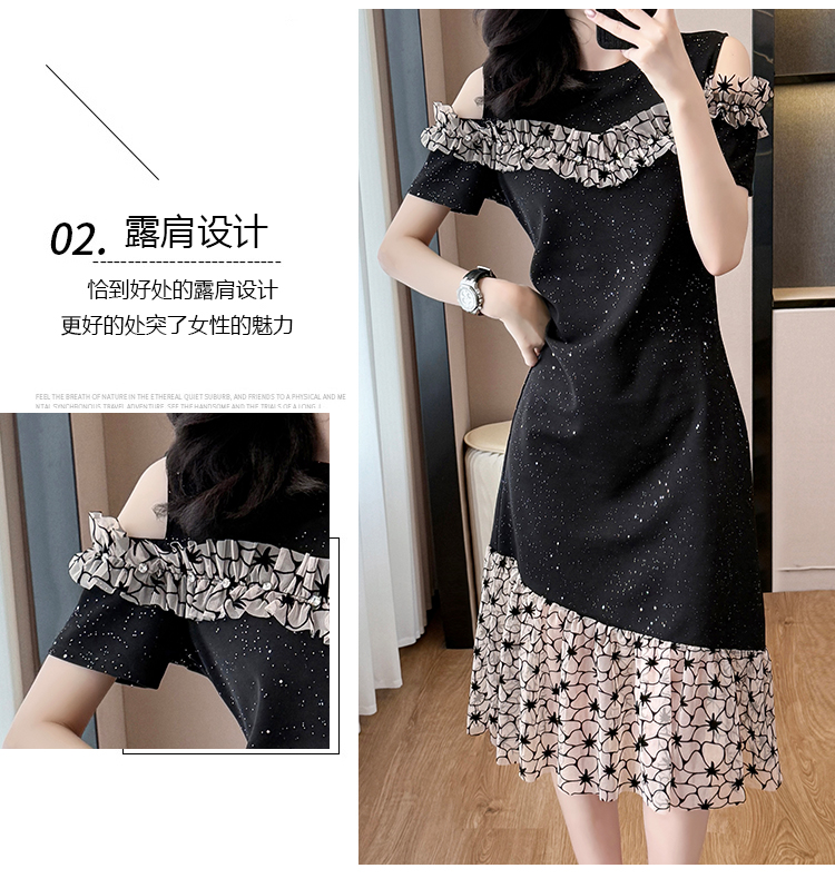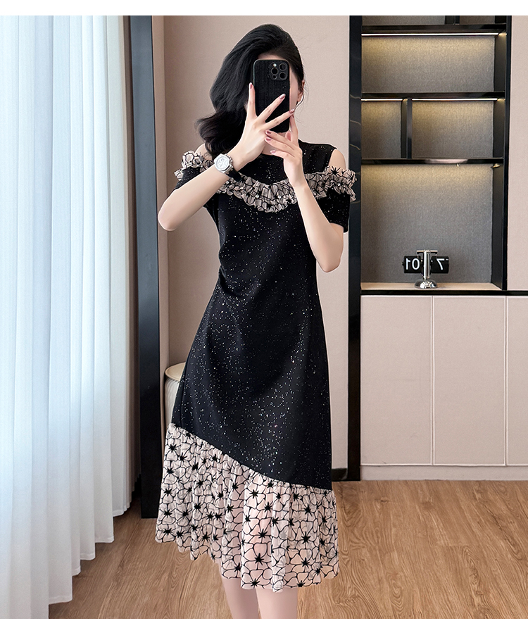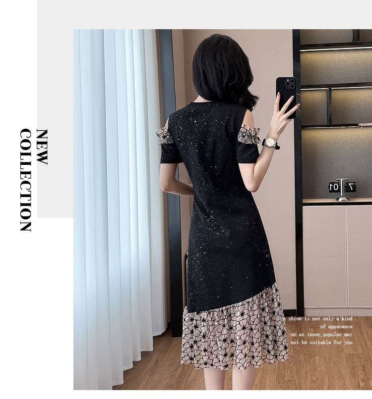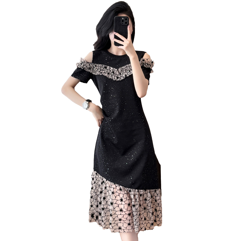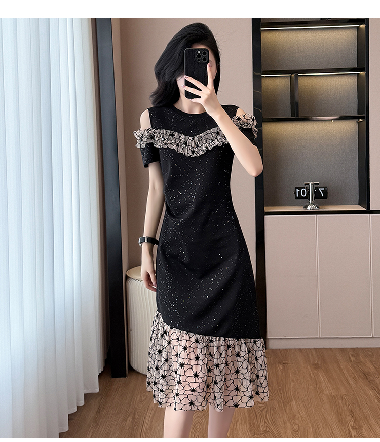 RY2645# 设计感高级连衣裙女2026夏拼接露肩气质收腰显瘦拼接鱼尾裙