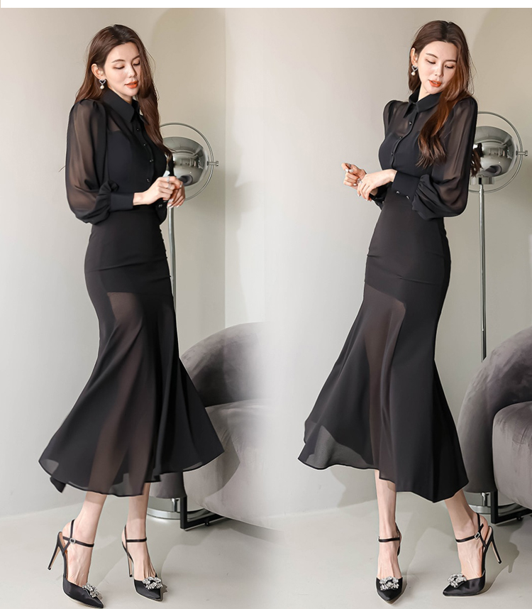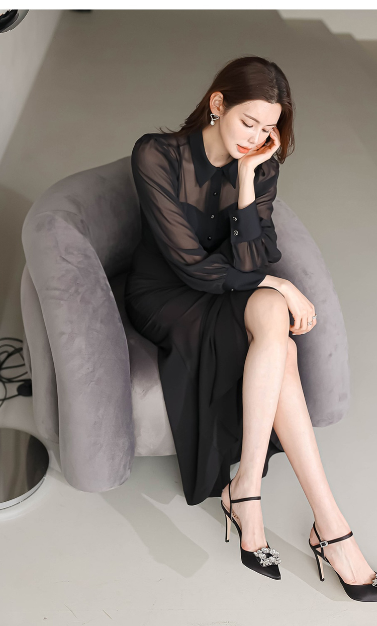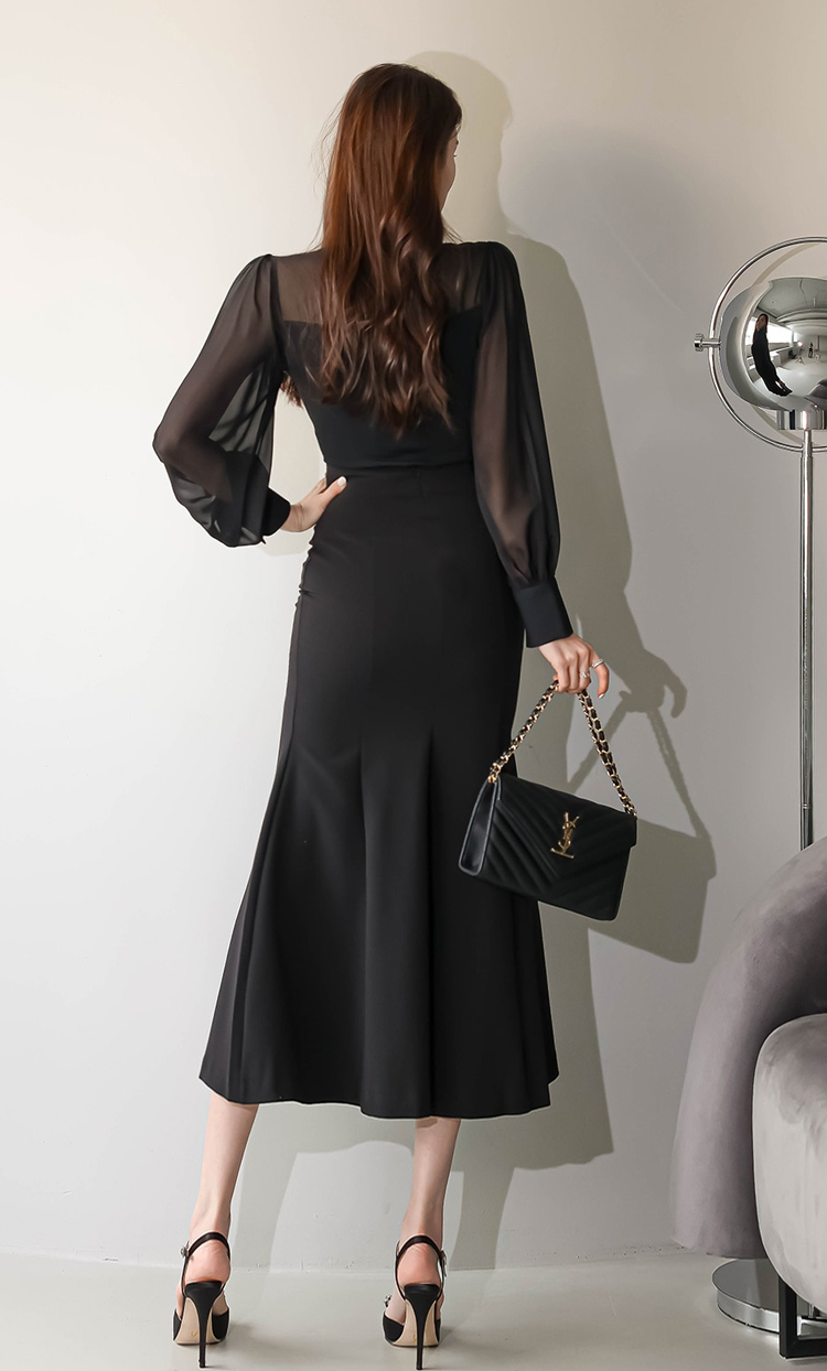 RY2650# 2026春时尚拼接修身显瘦气质优雅通勤性感女人味荷叶边长款连衣裙