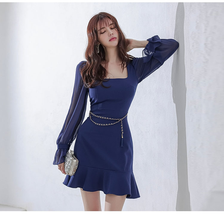 RY2660# 2026春装新款韩版时尚气质优雅显瘦性感通勤鱼尾雪纺腰带连衣裙