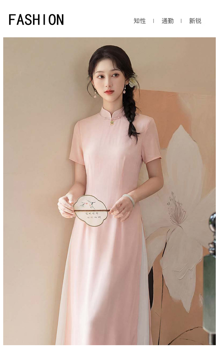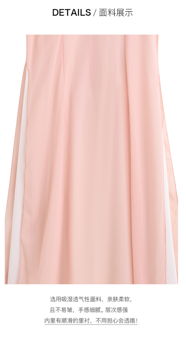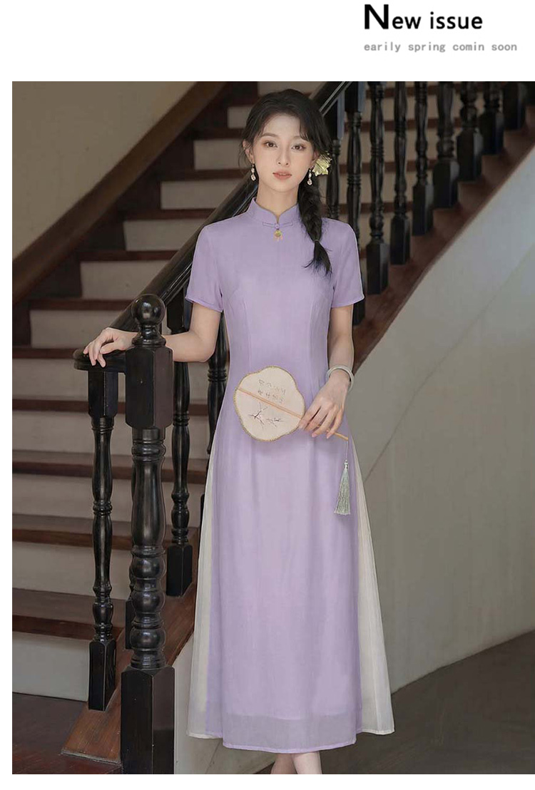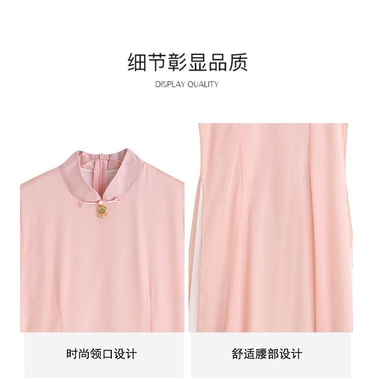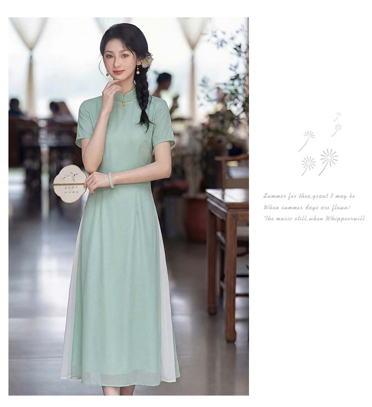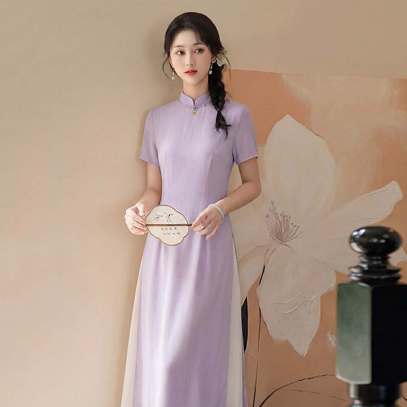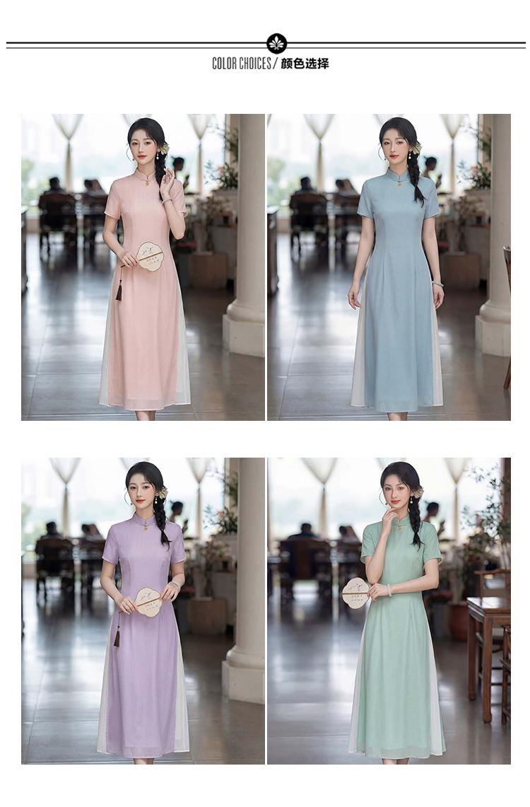 RY2663# 蓝色新中式国风高考送考旗袍薄纱连衣裙女夏气质收腰雪纺大摆长裙