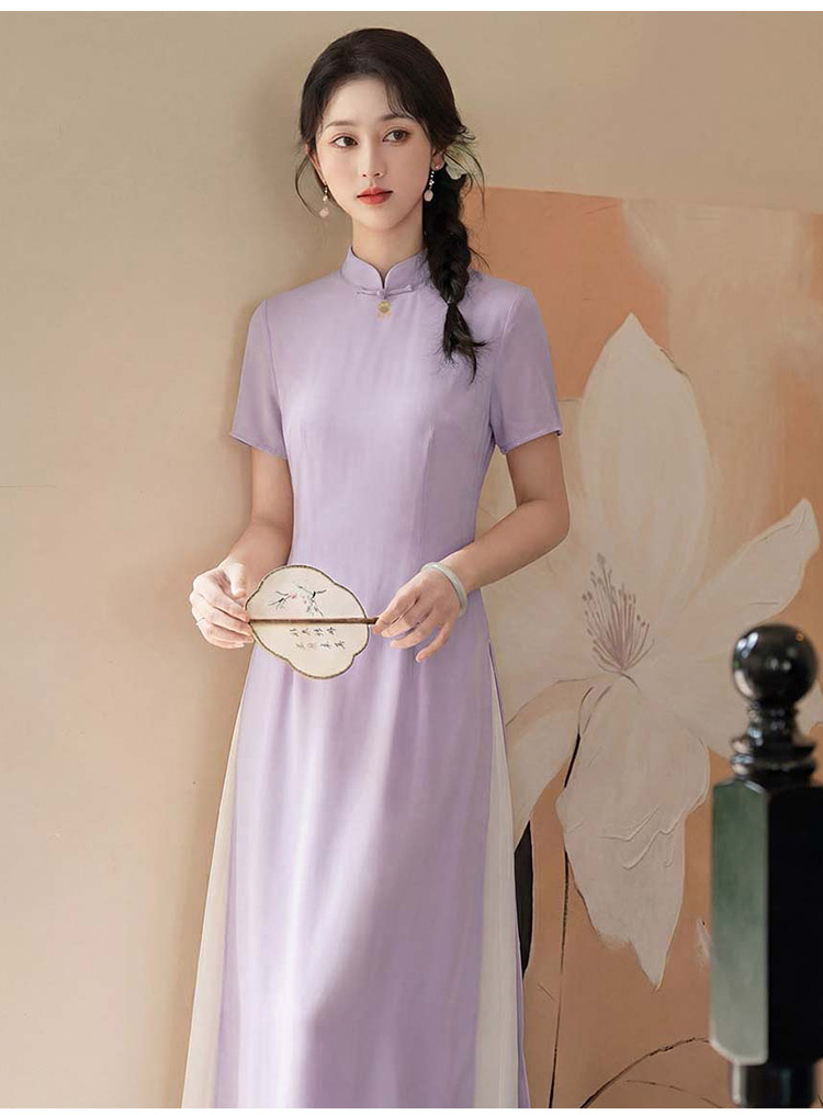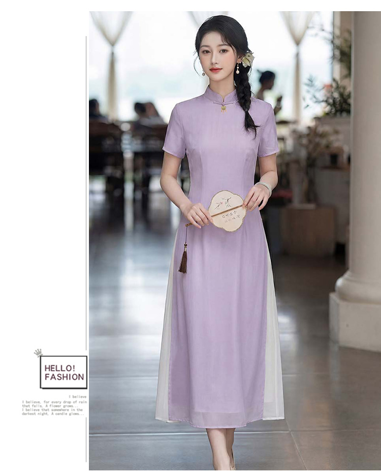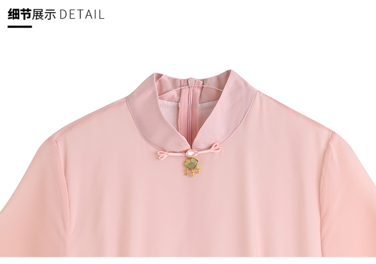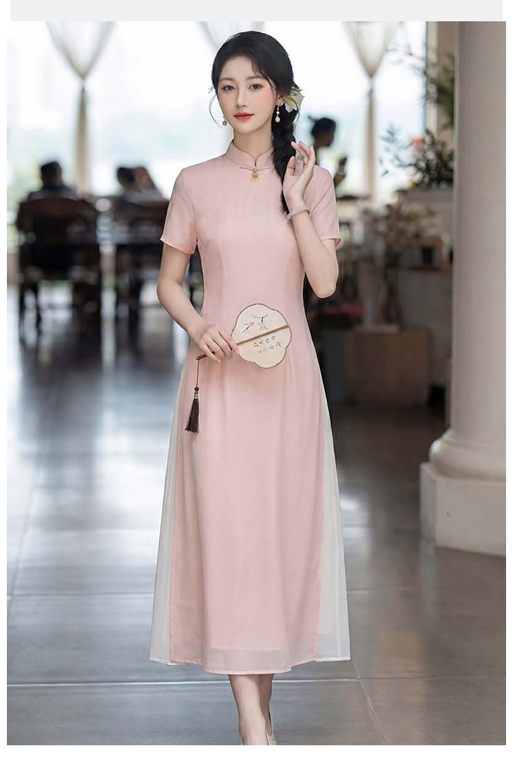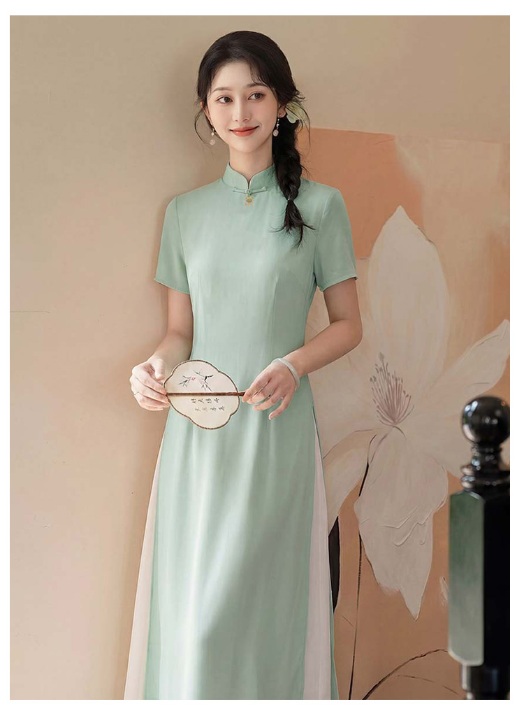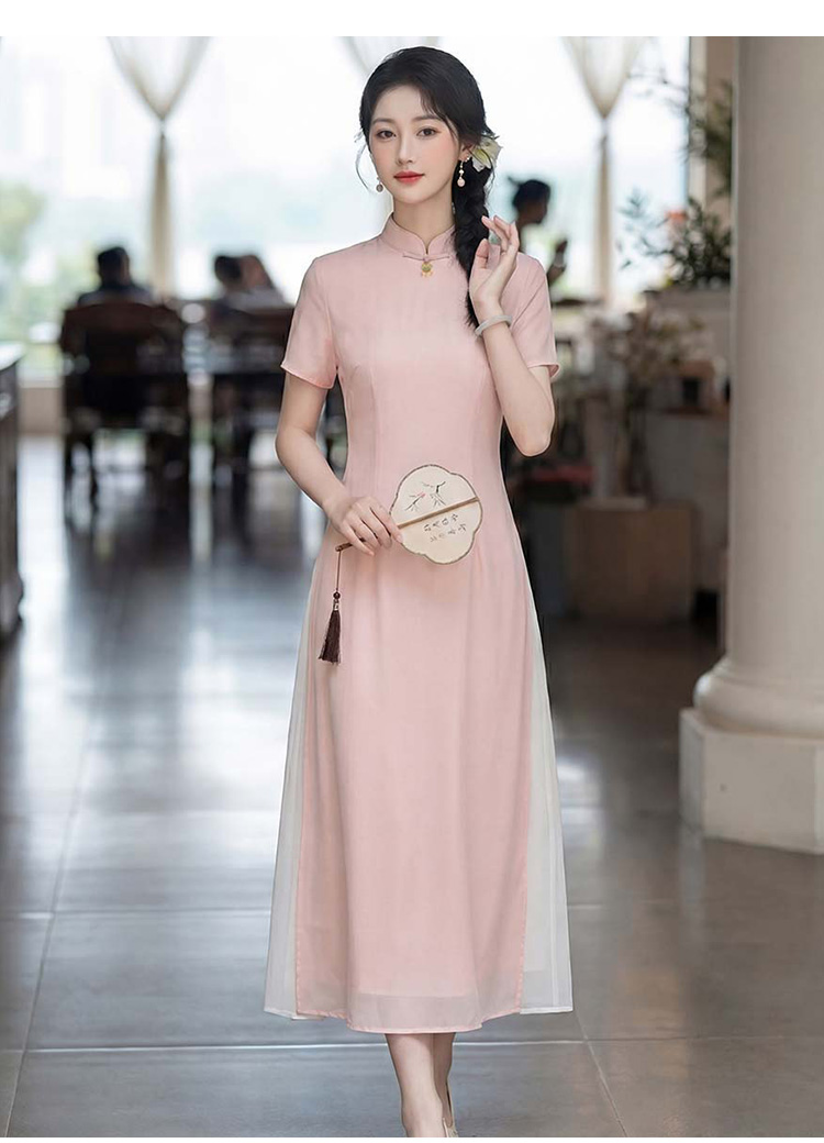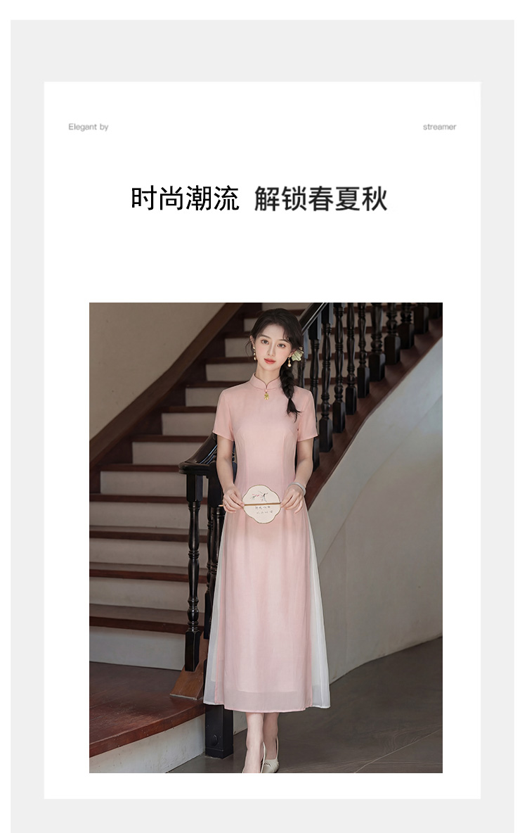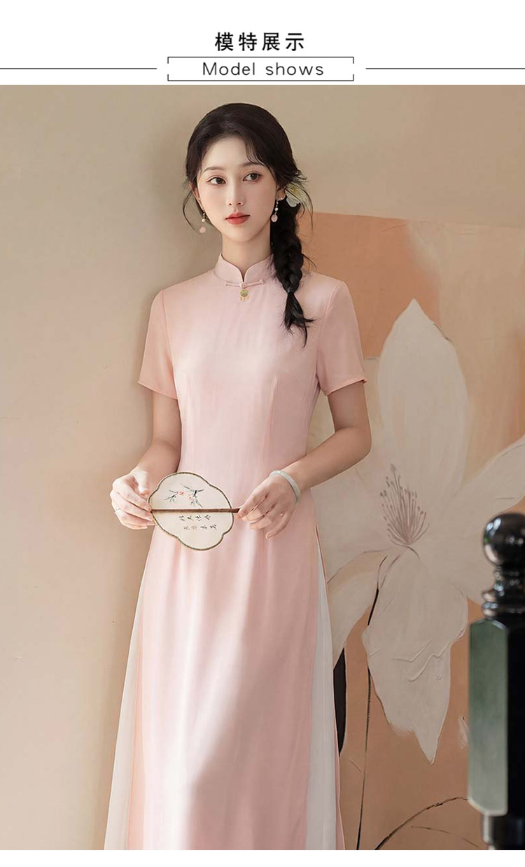 RY2663# 蓝色新中式国风高考送考旗袍薄纱连衣裙女夏气质收腰雪纺大摆长裙