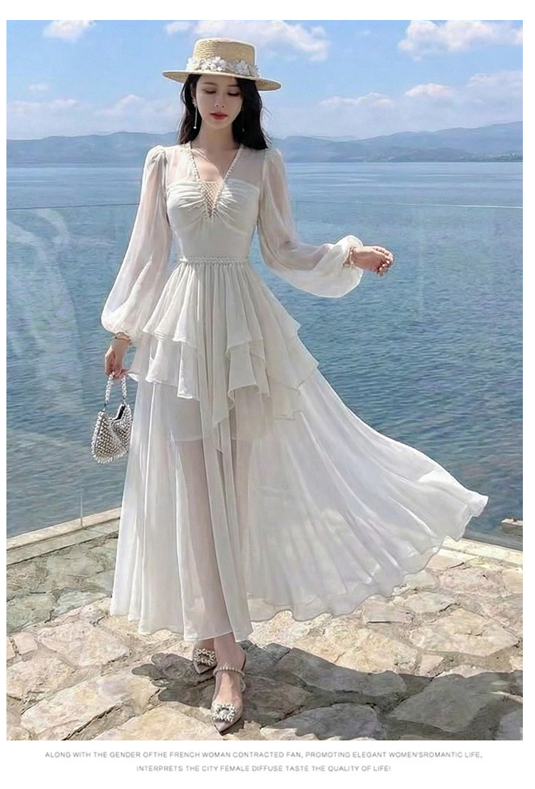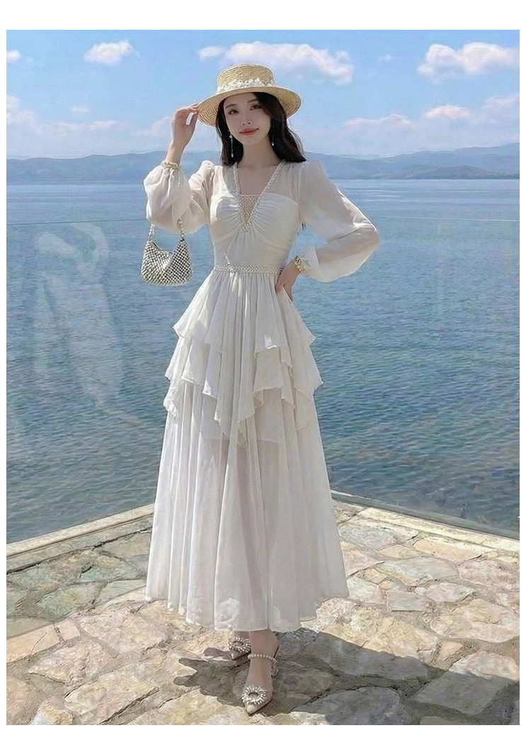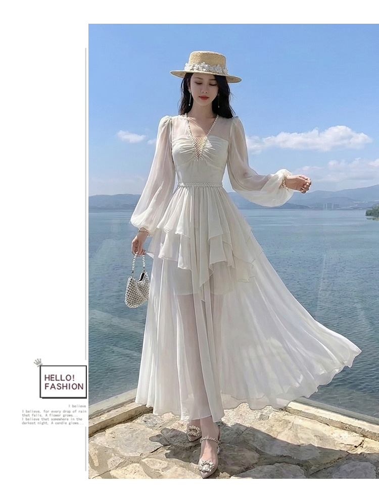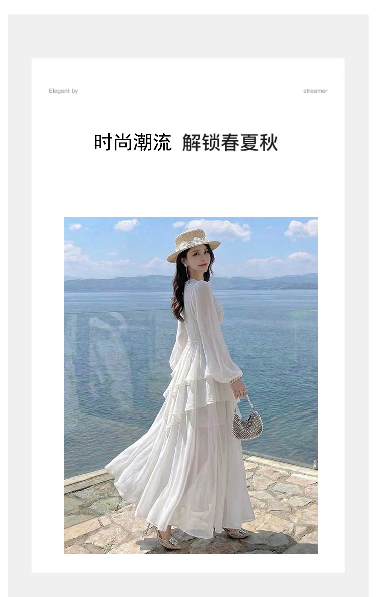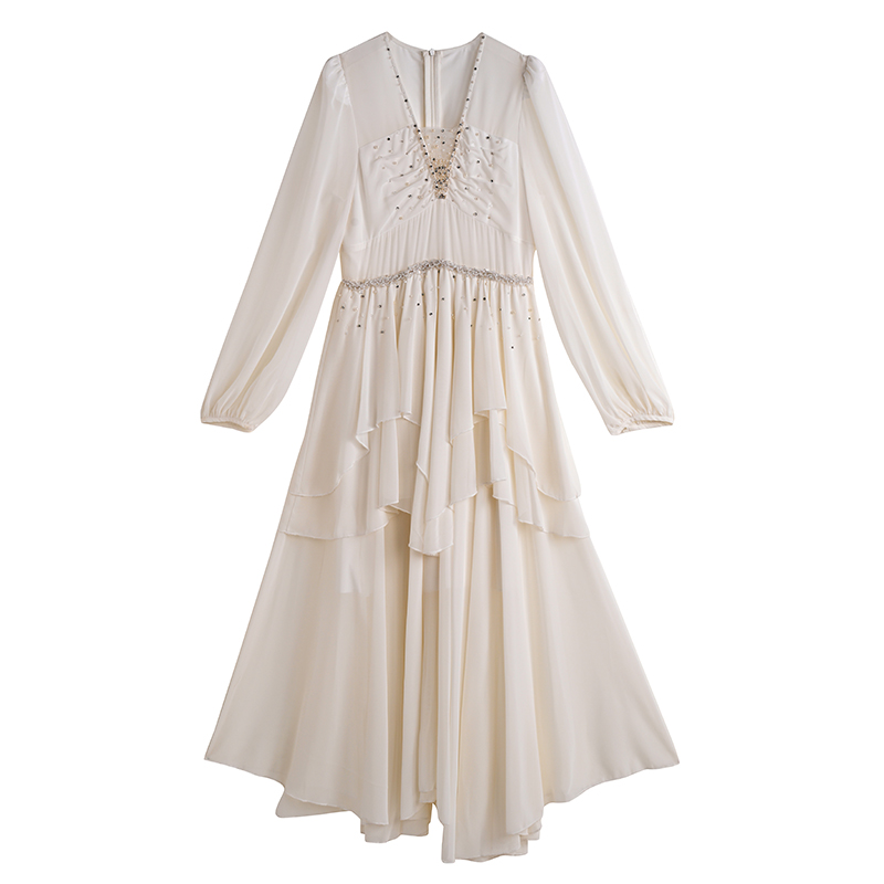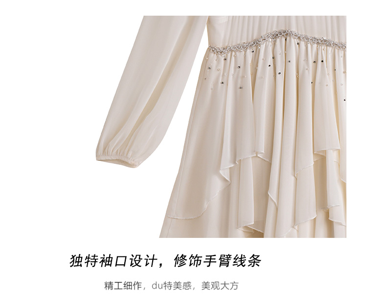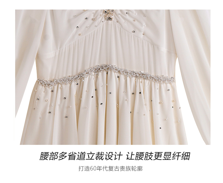 RY2664# 春夏新品仙气飘逸领长袖连衣裙轻奢高端气质大方得体绝美收腰长裙