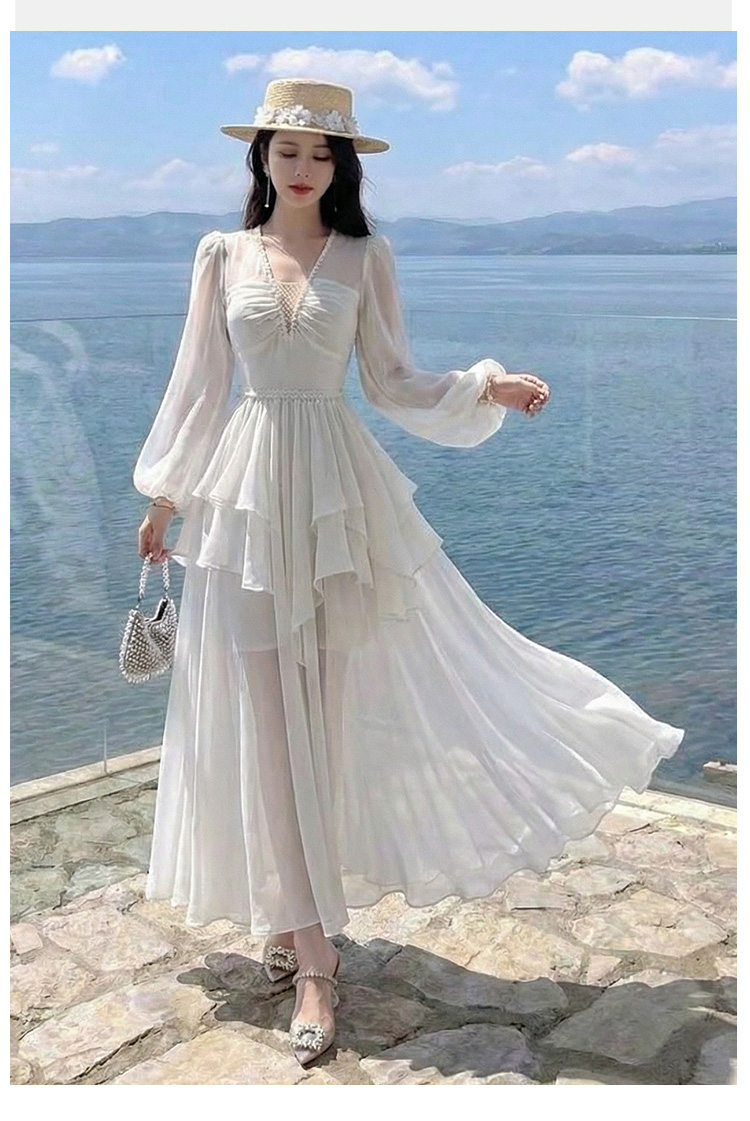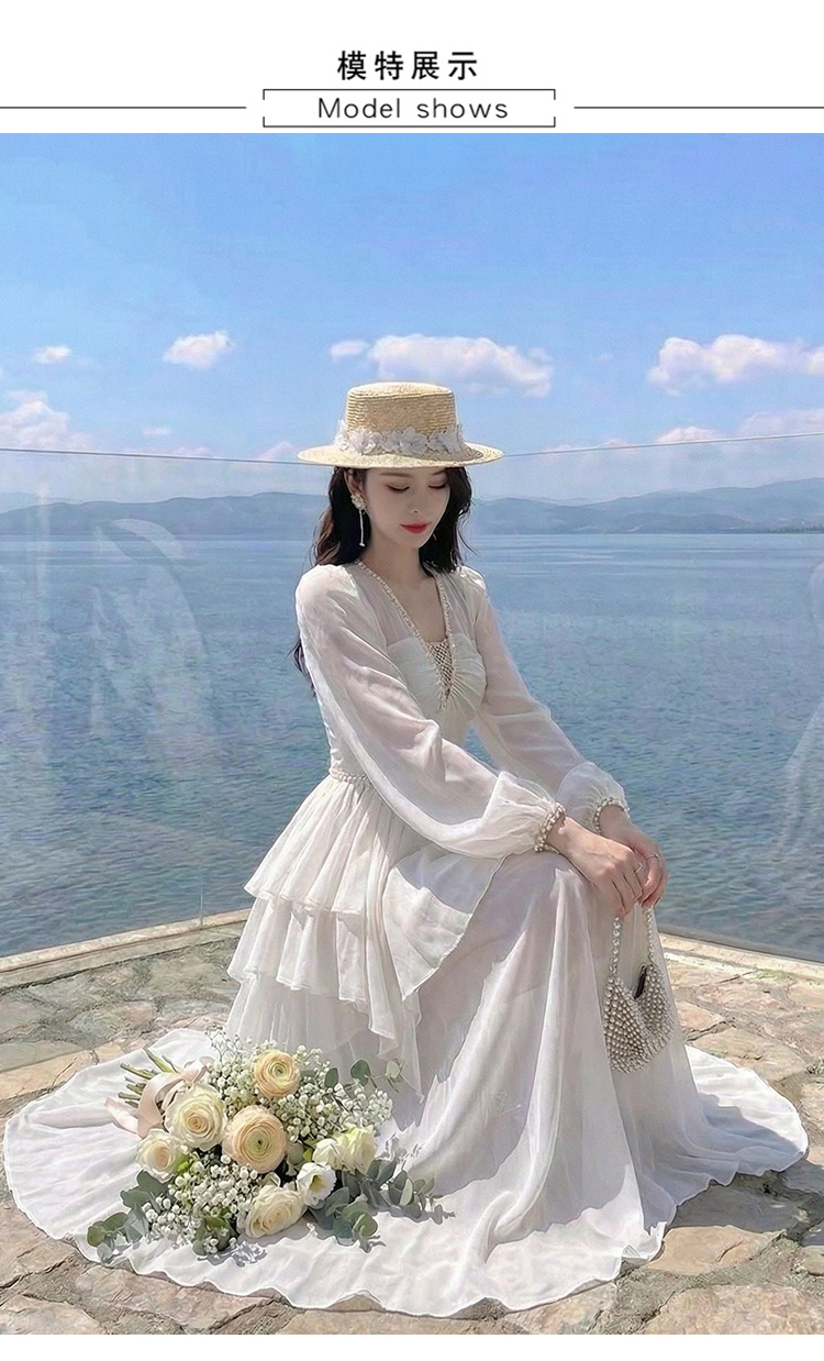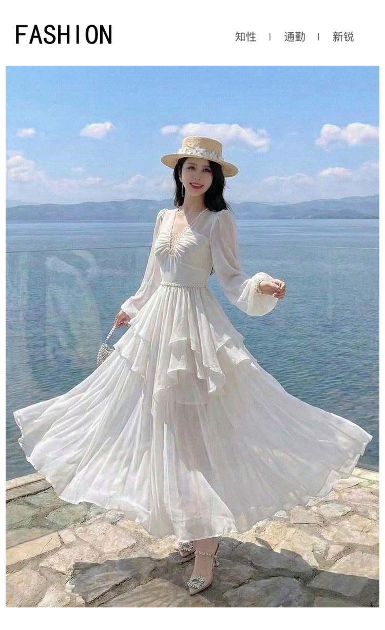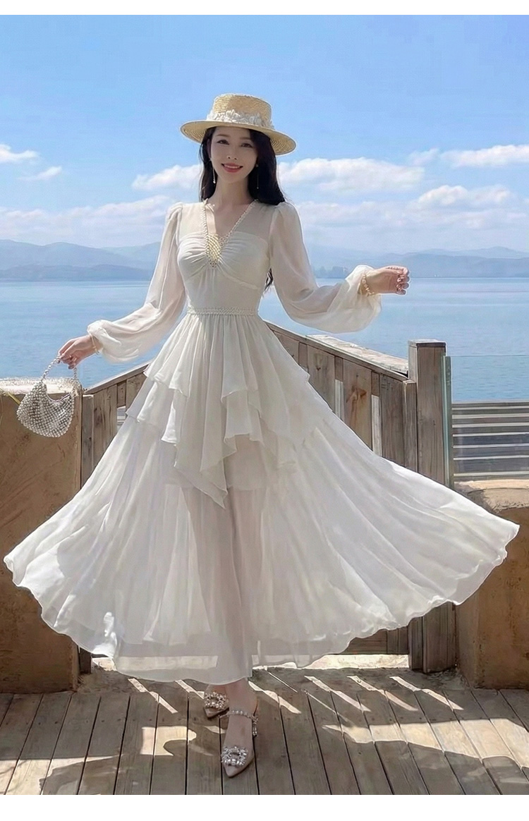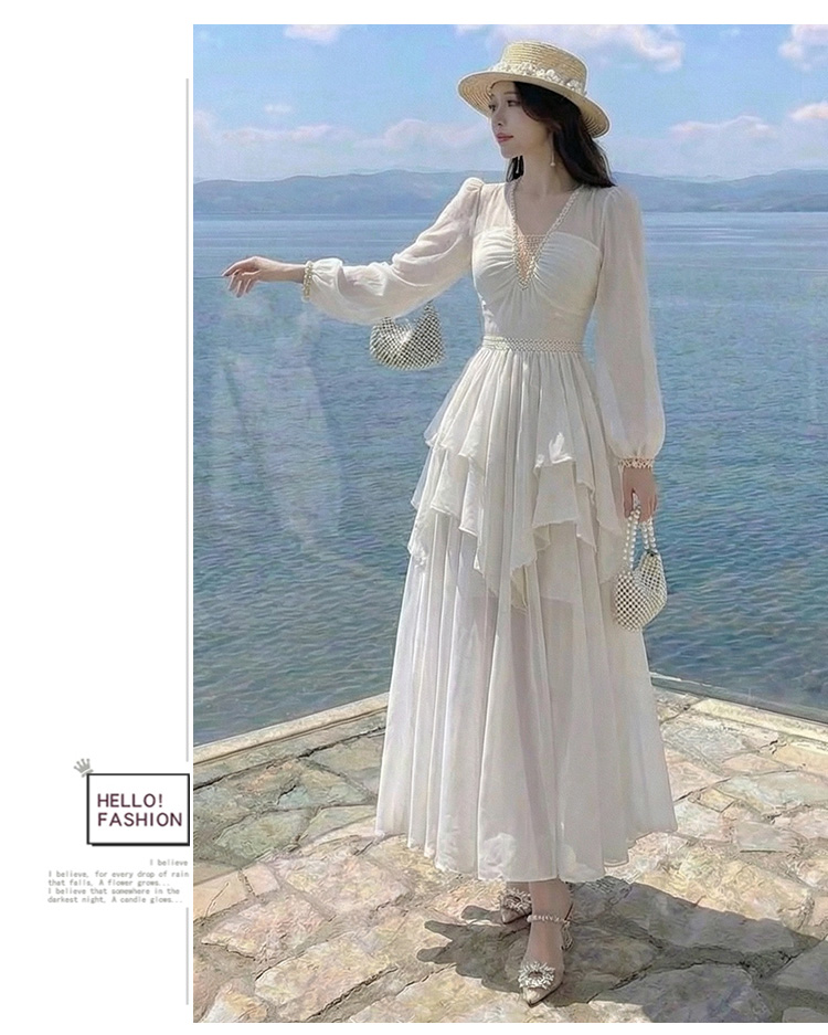 RY2664# 春夏新品仙气飘逸领长袖连衣裙轻奢高端气质大方得体绝美收腰长裙