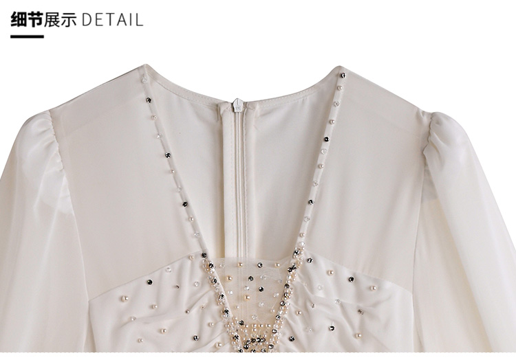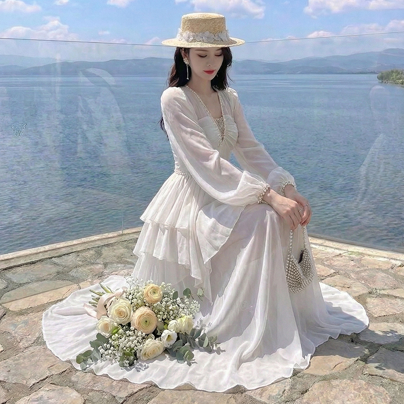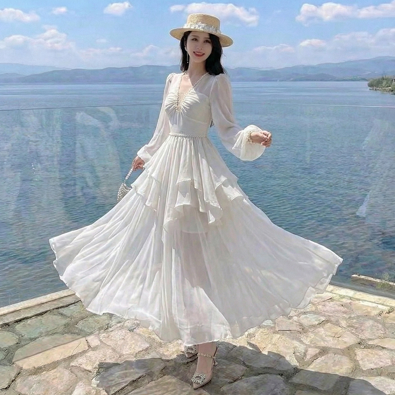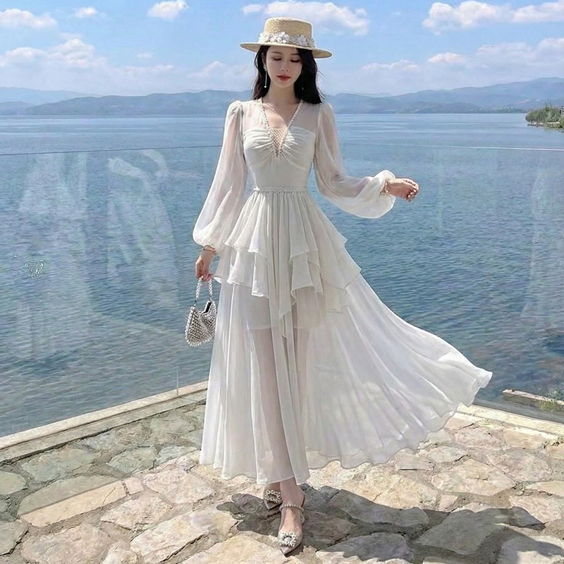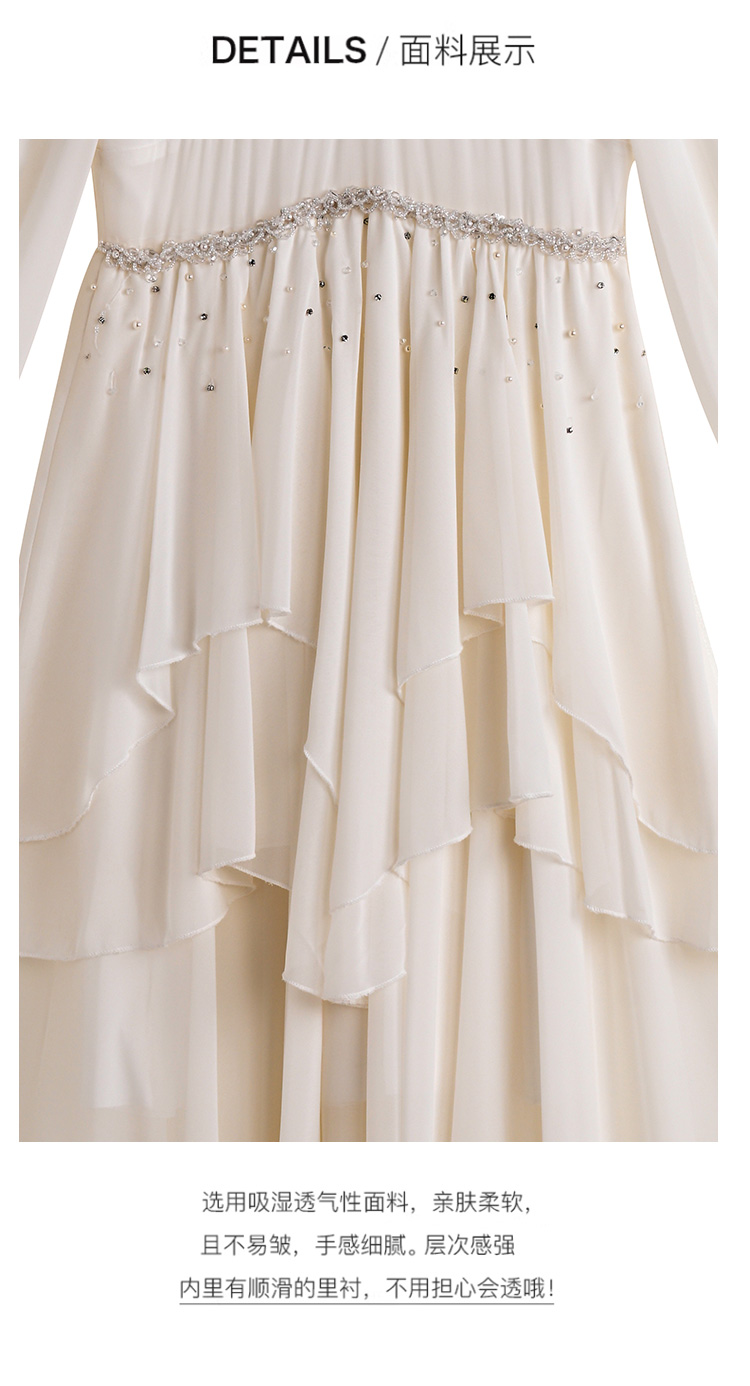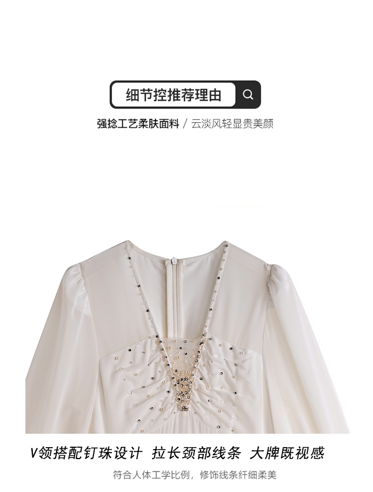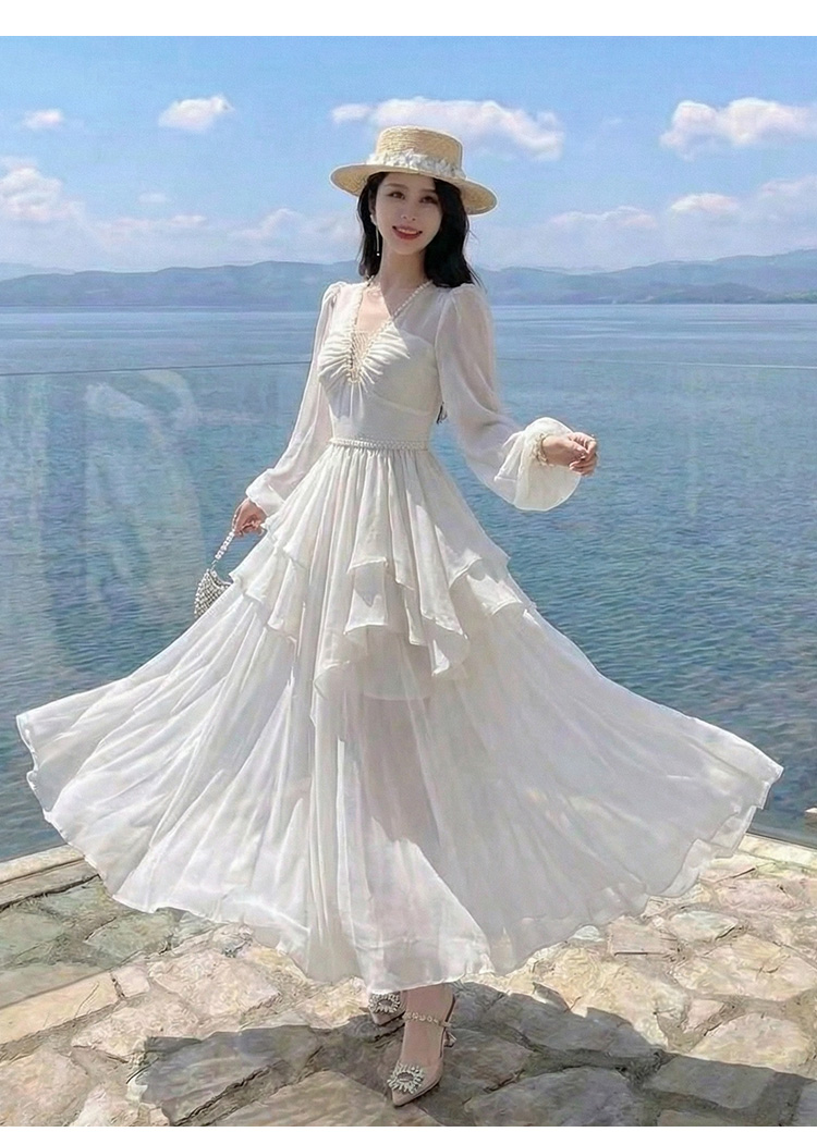RY2664# 春夏新品仙气飘逸领长袖连衣裙轻奢高端气质大方得体绝美收腰长裙