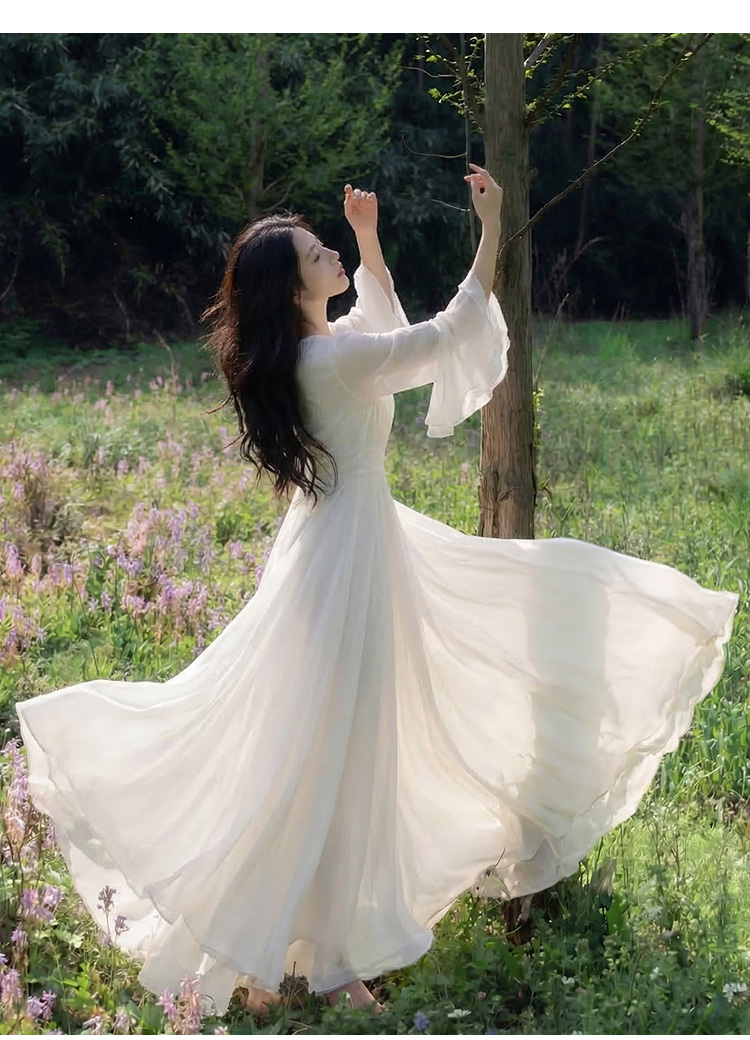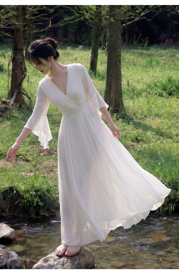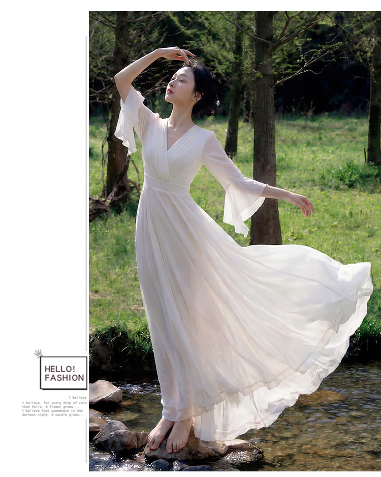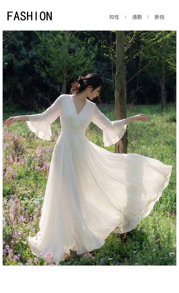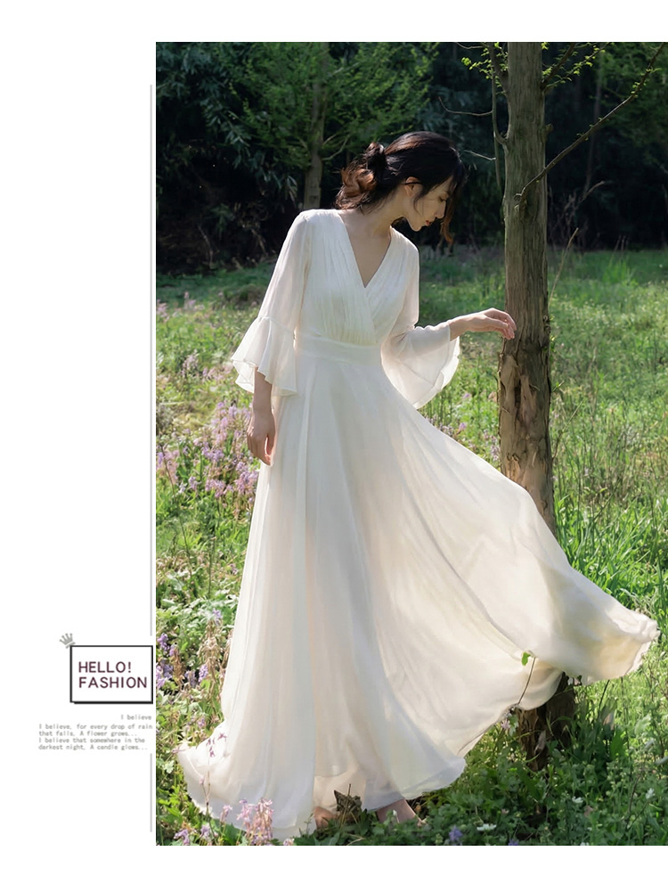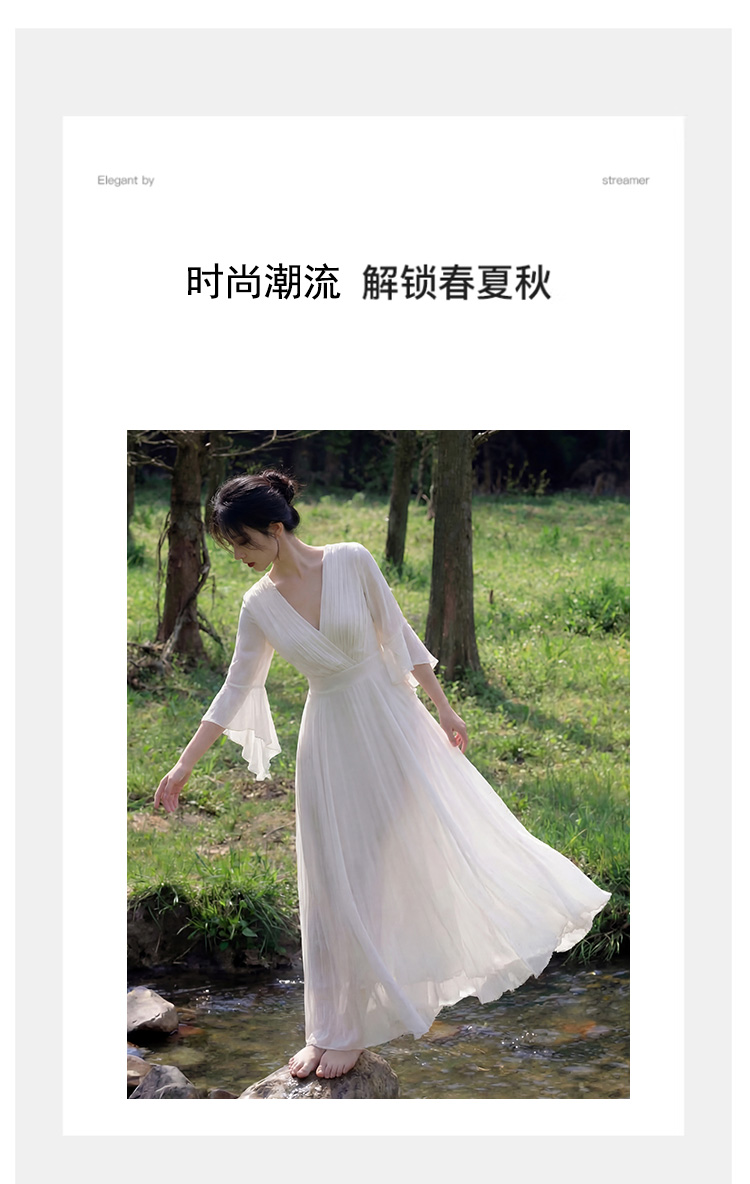 RY2665# 新款沙滩裙春夏超仙白色长裙收腰显瘦巴厘岛气质海边连衣裙