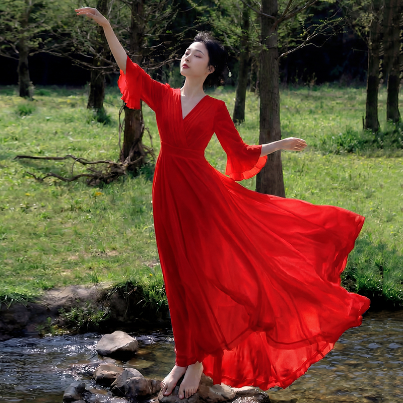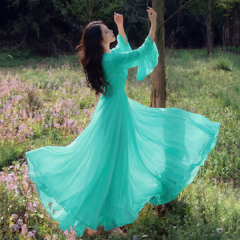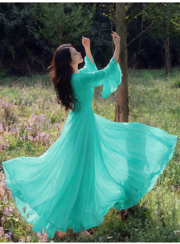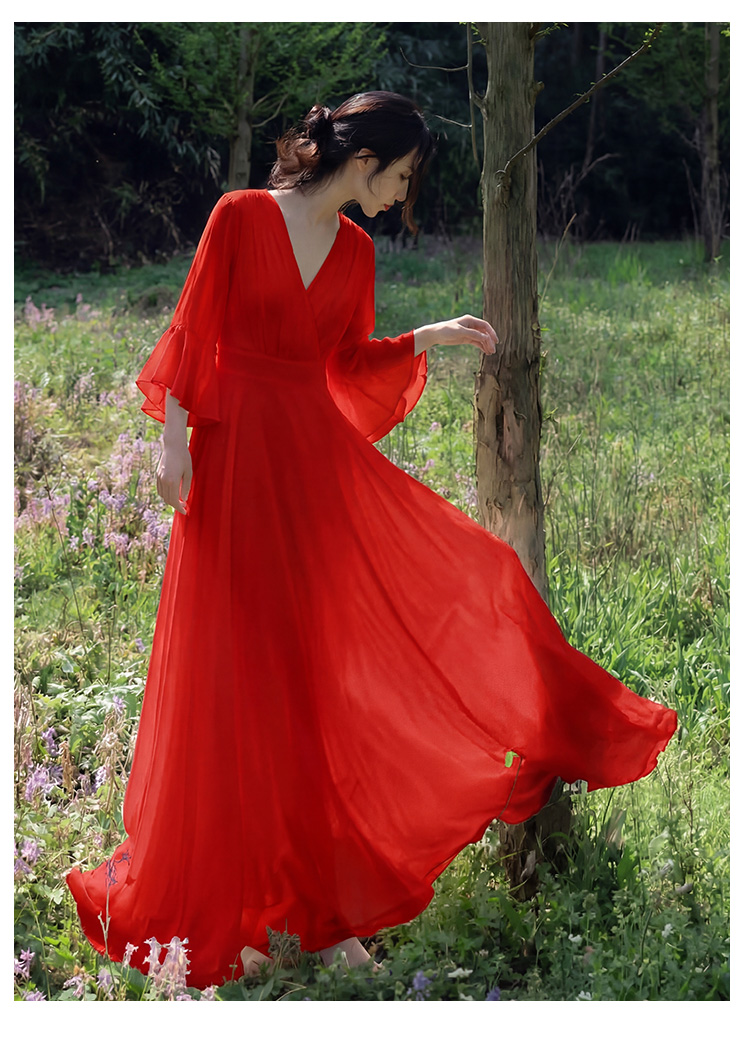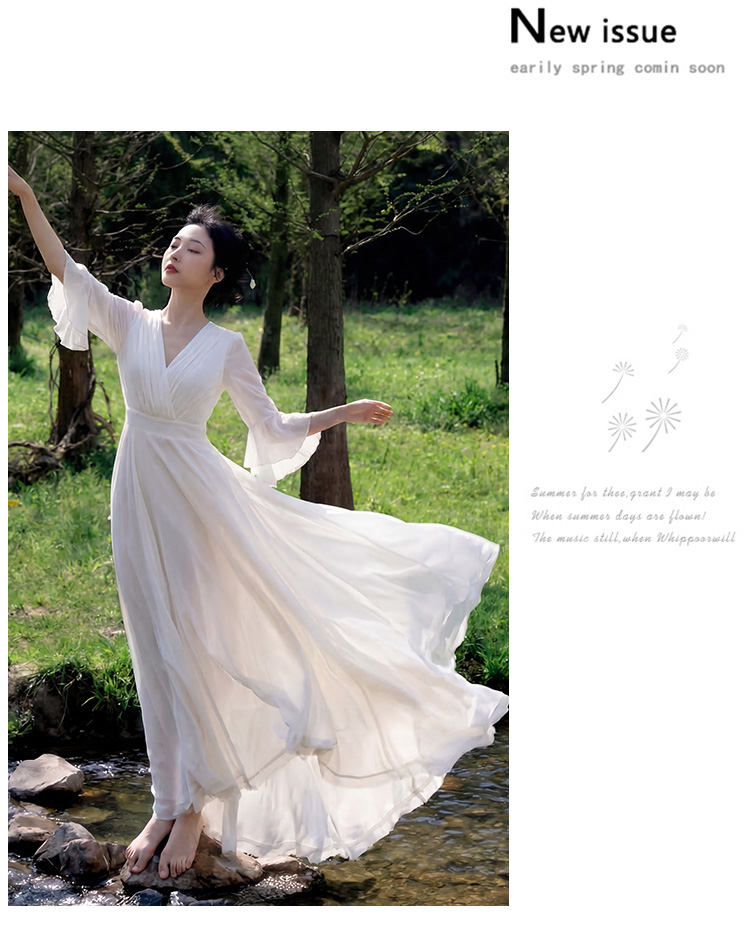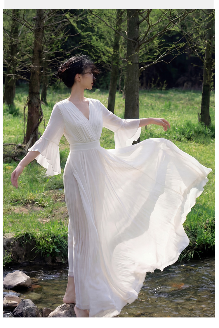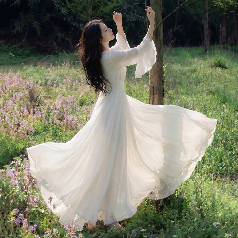 RY2665# 新款沙滩裙春夏超仙白色长裙收腰显瘦巴厘岛气质海边连衣裙