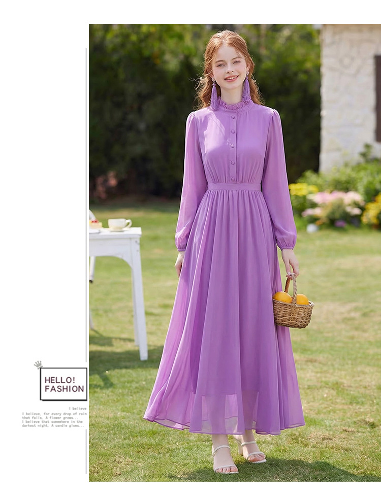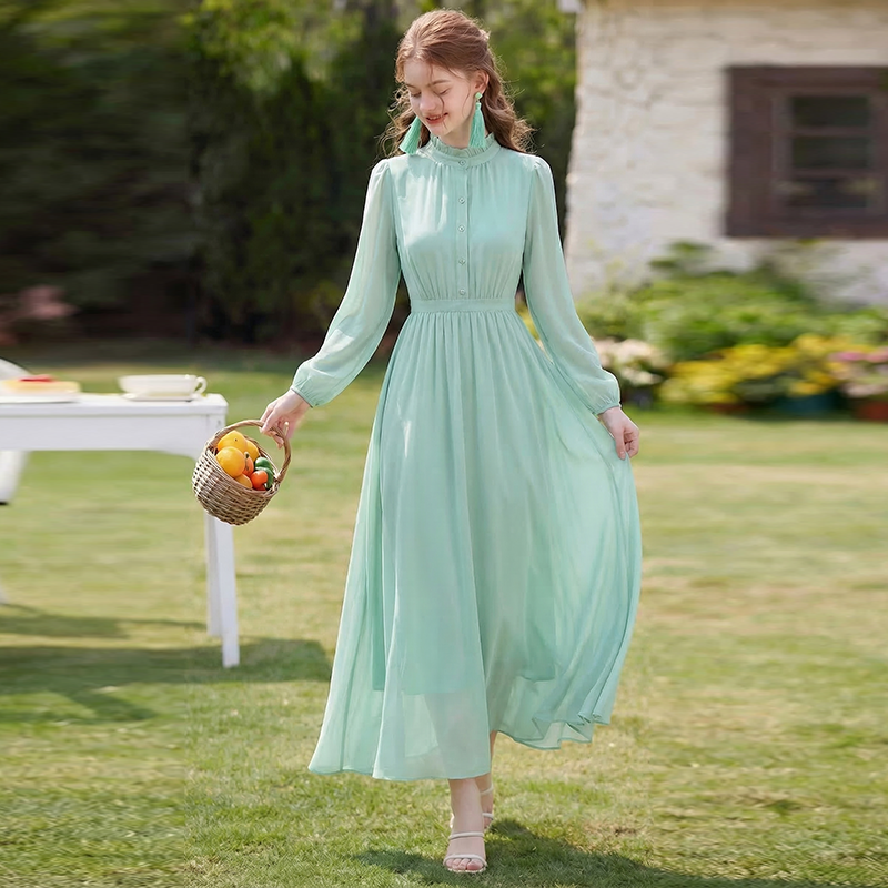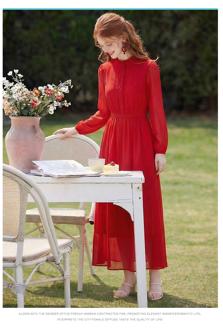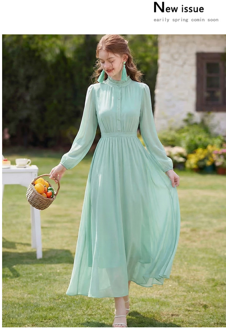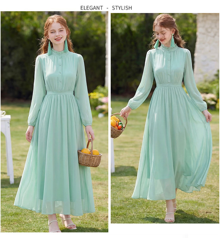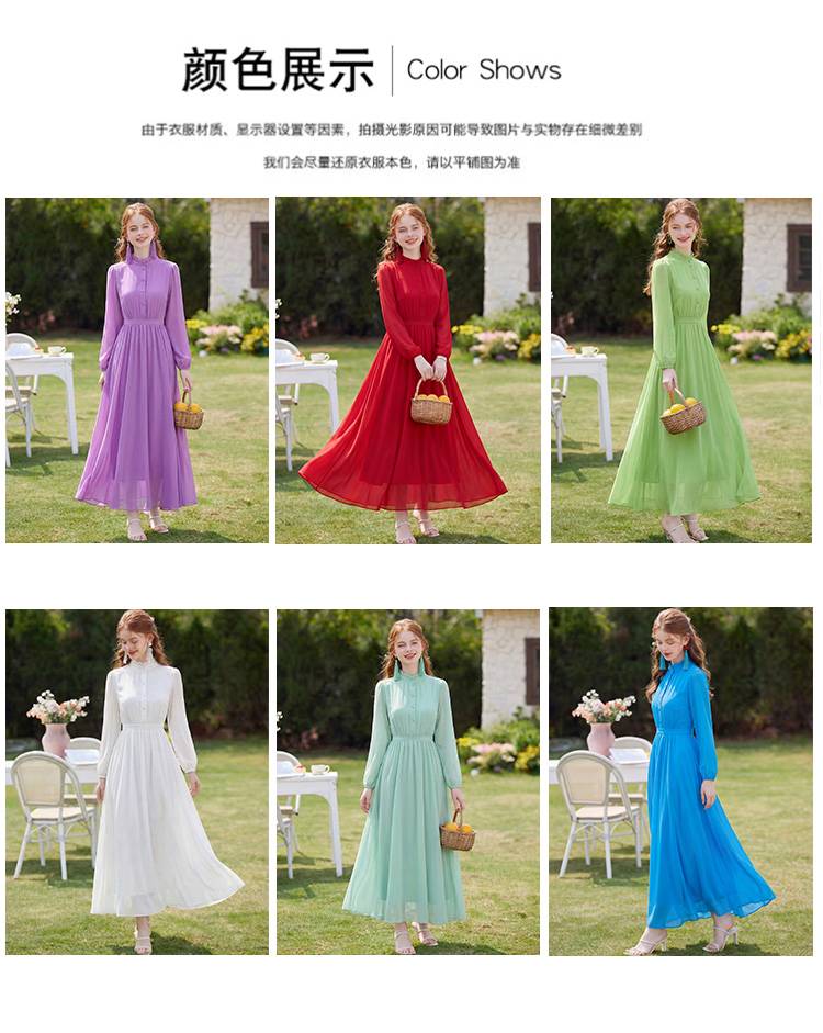 RY2668# 法式雪纺气质连衣裙显瘦旅游拍照高级感收腰度假礼服飘逸仙女长裙