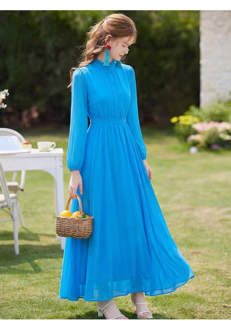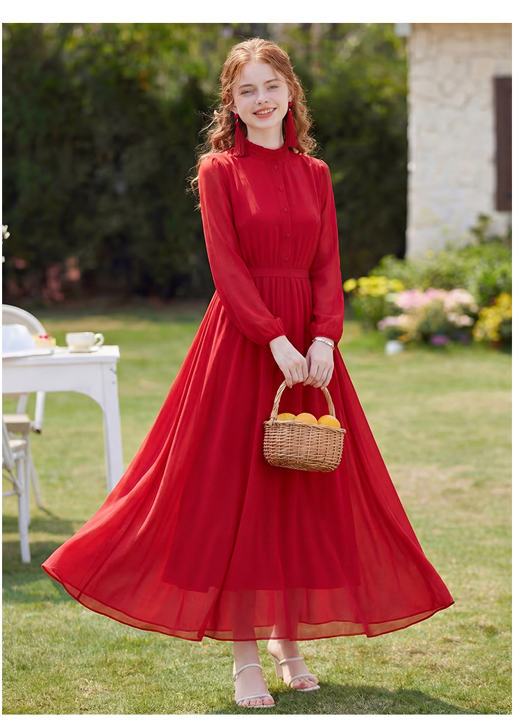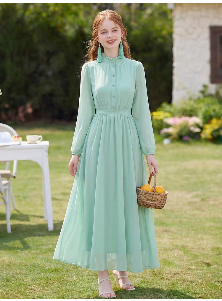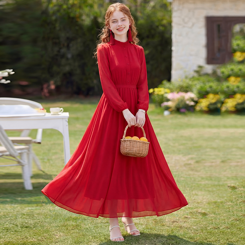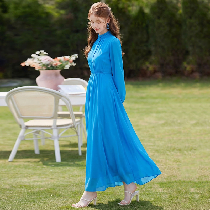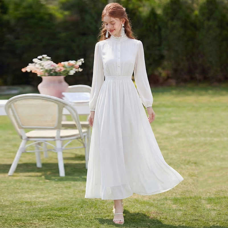 RY2668# 法式雪纺气质连衣裙显瘦旅游拍照高级感收腰度假礼服飘逸仙女长裙