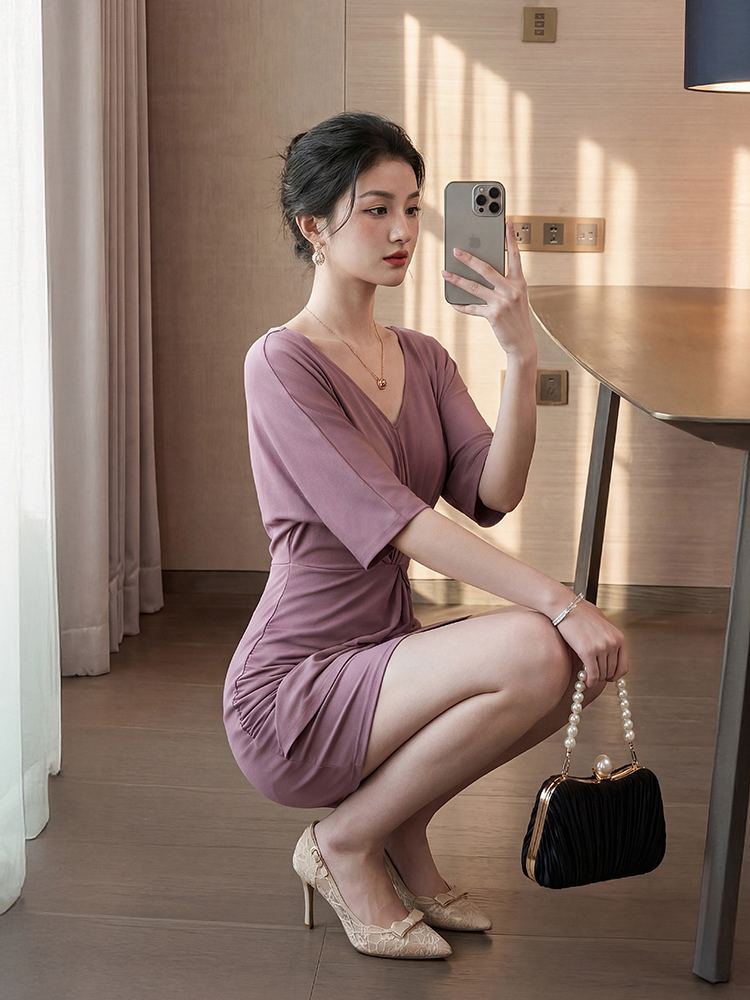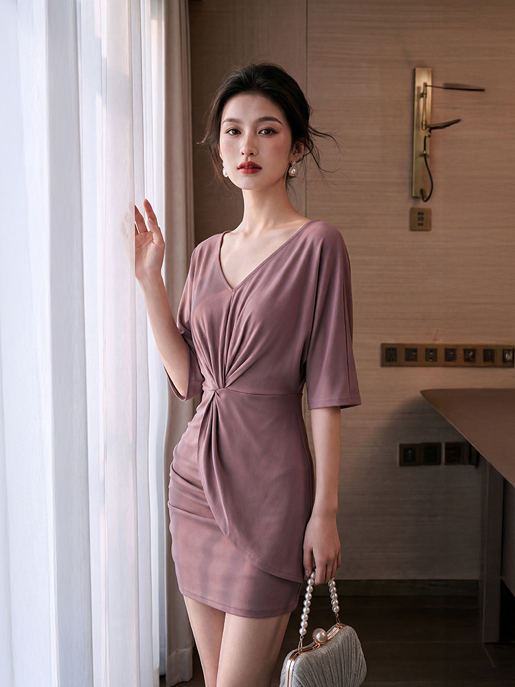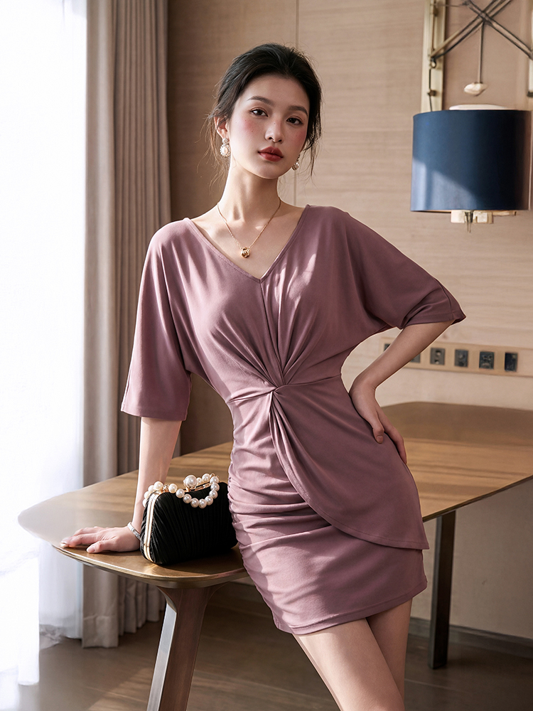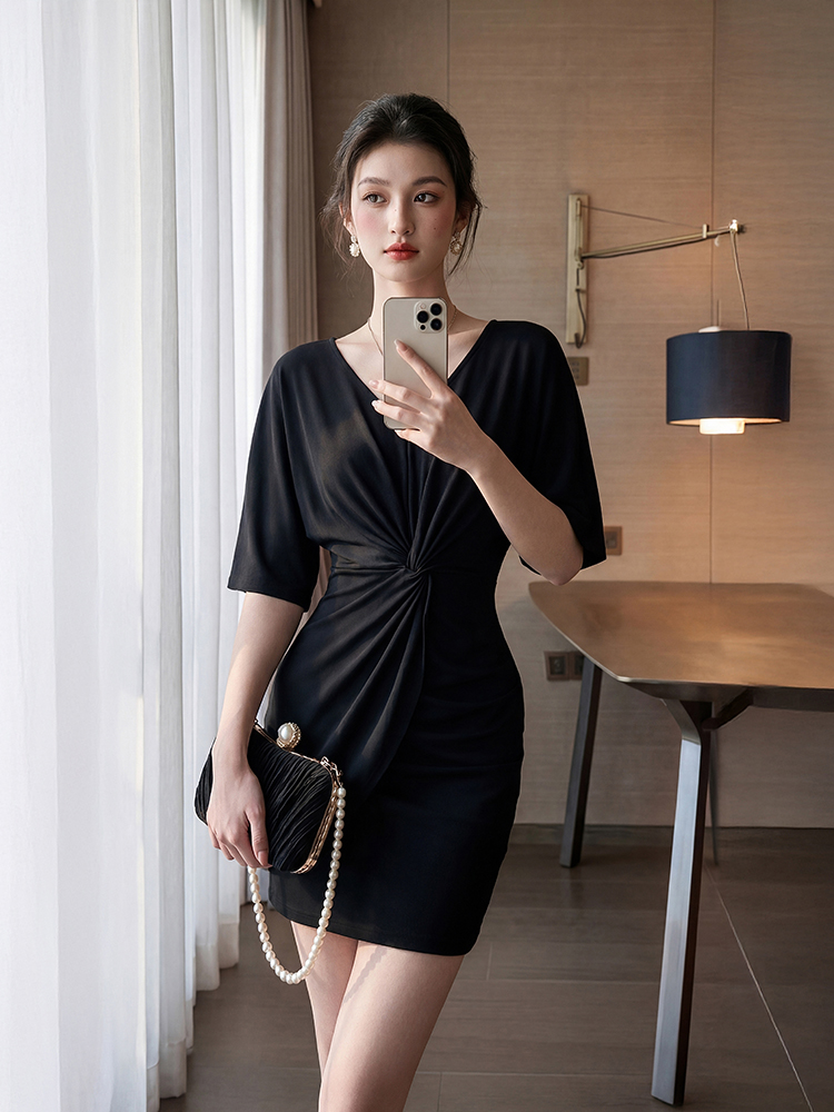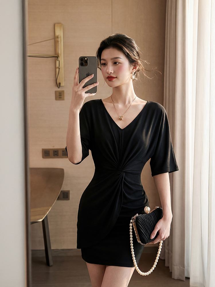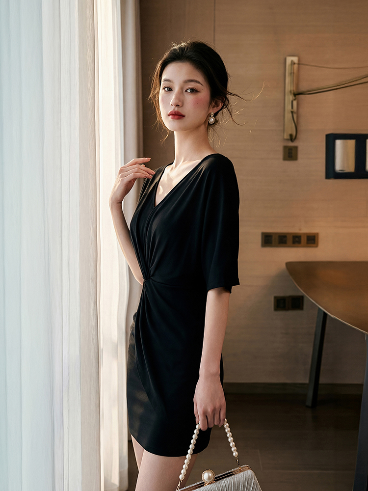 RY2693# 实拍+视频2026新款高级感气质性感低胸修身显瘦深V包臀连衣裙