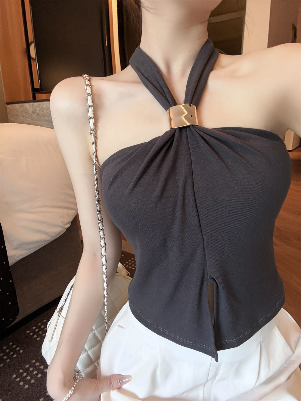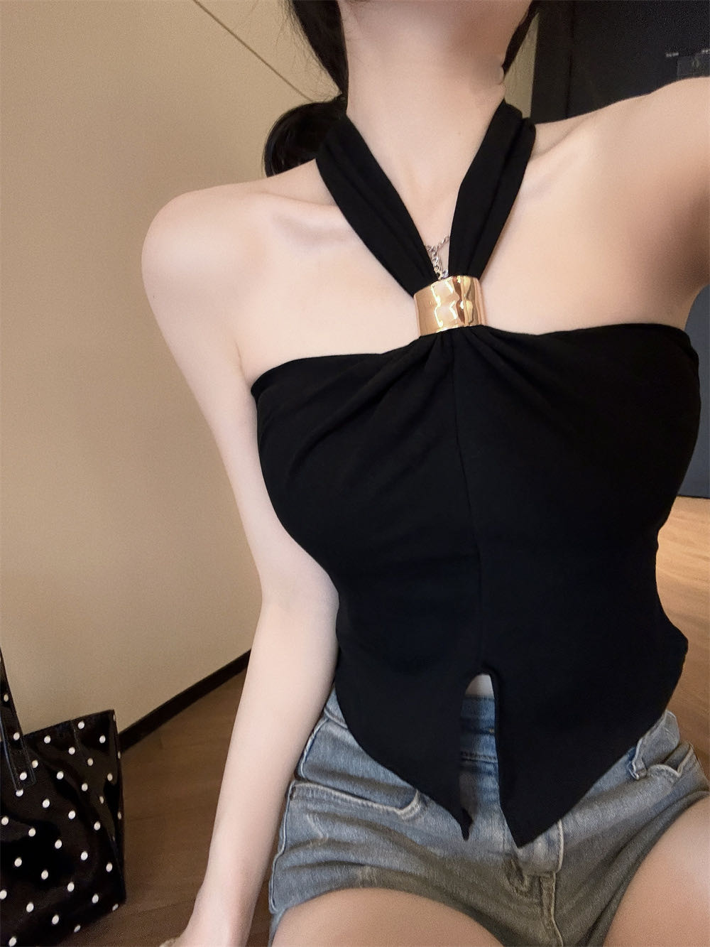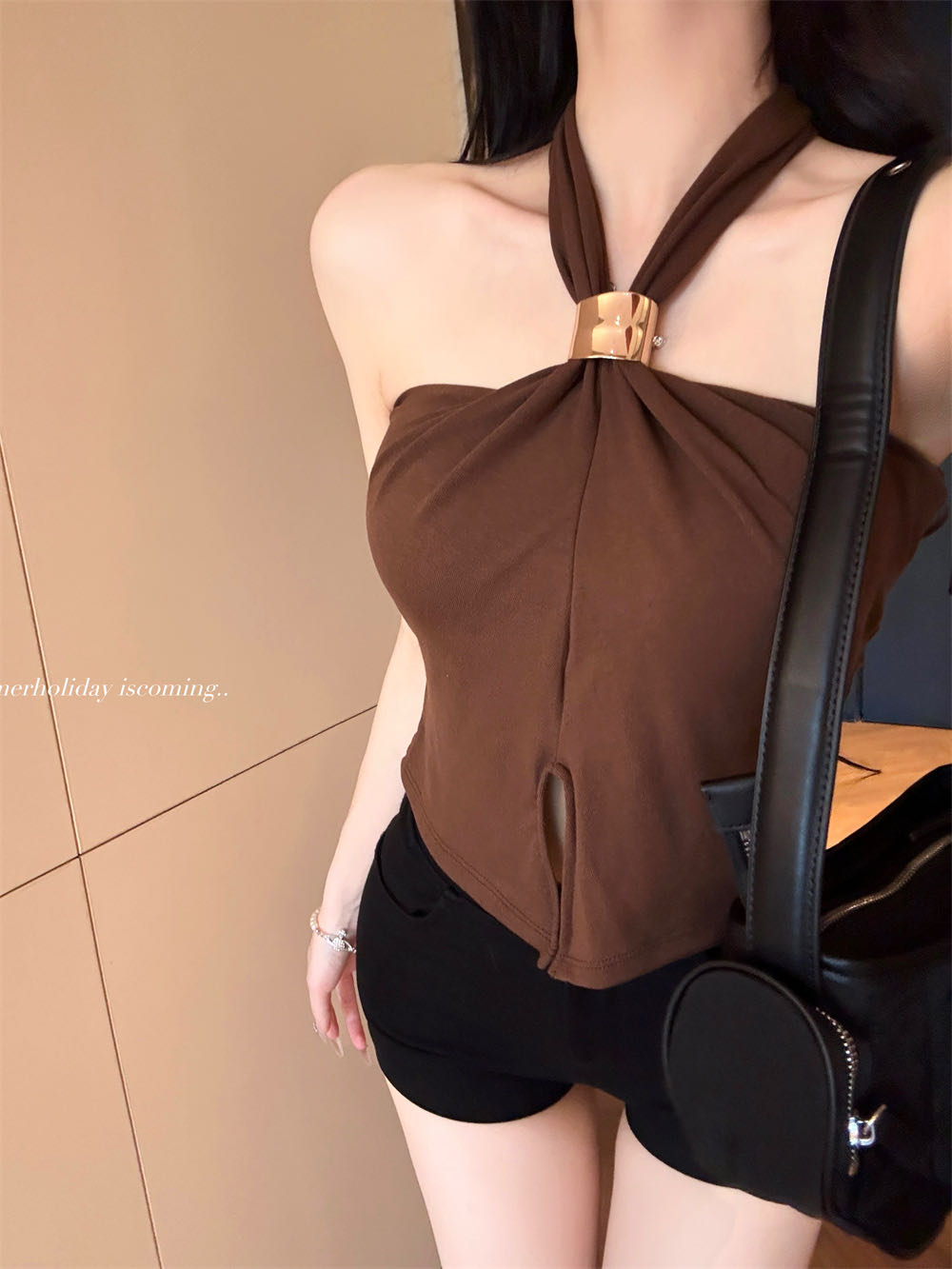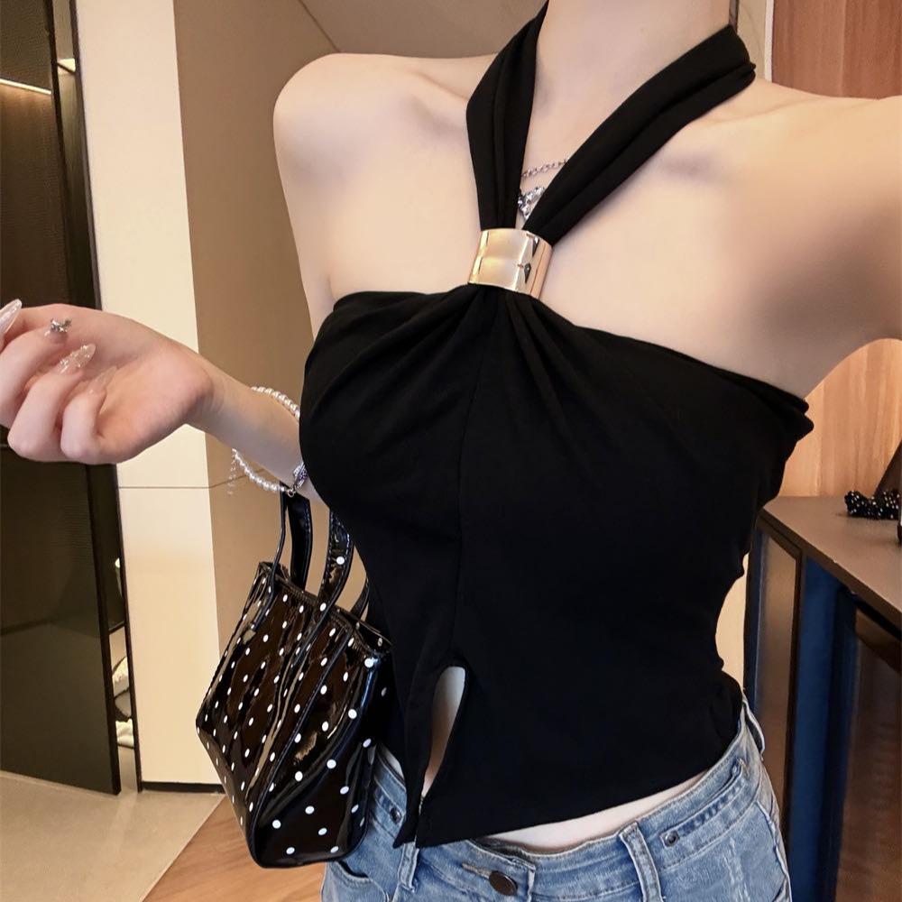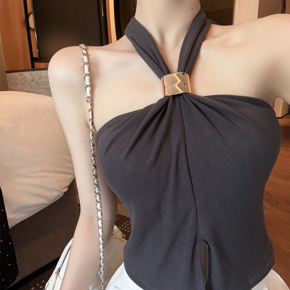 RY2816#春季新款挂脖上衣女夏收腰显瘦外穿百搭无袖辣妹上衣女T恤