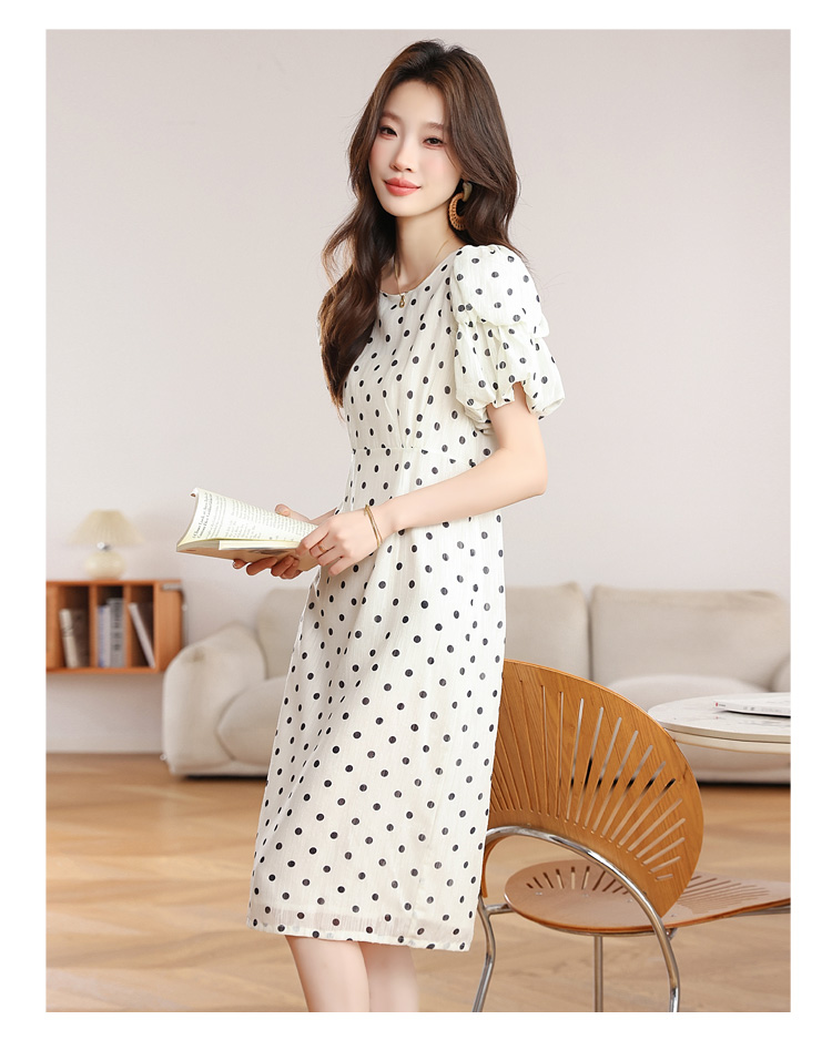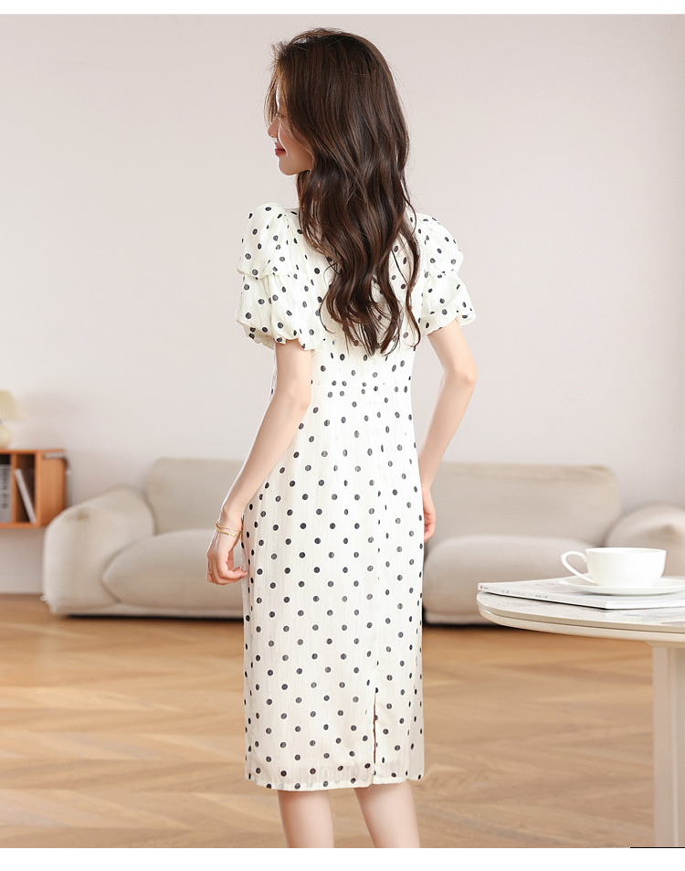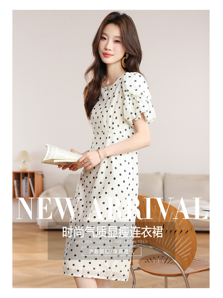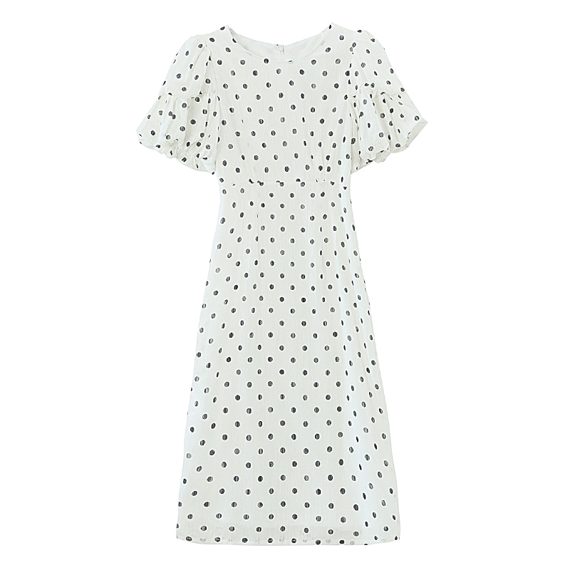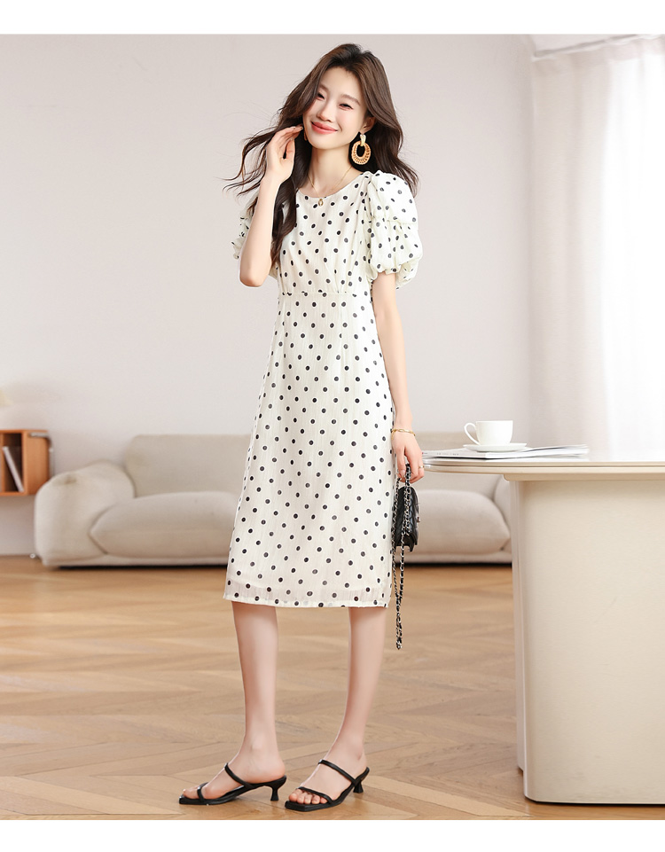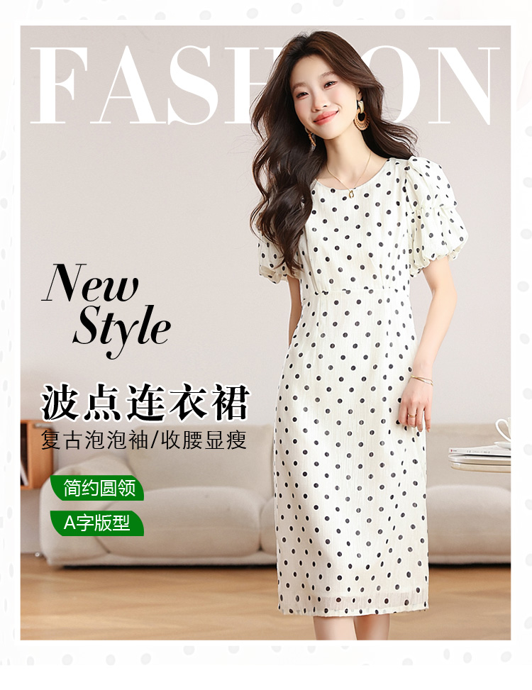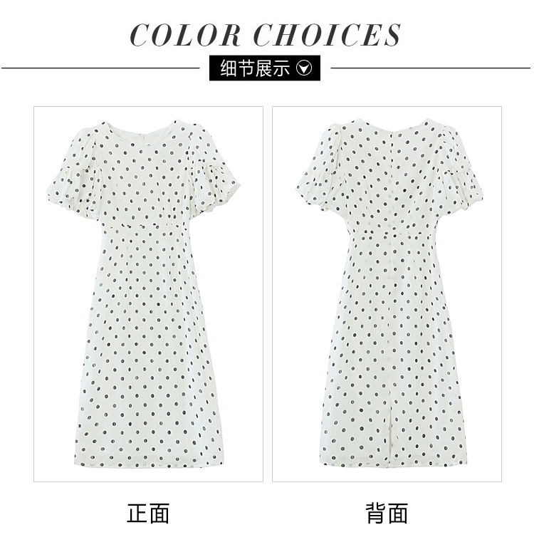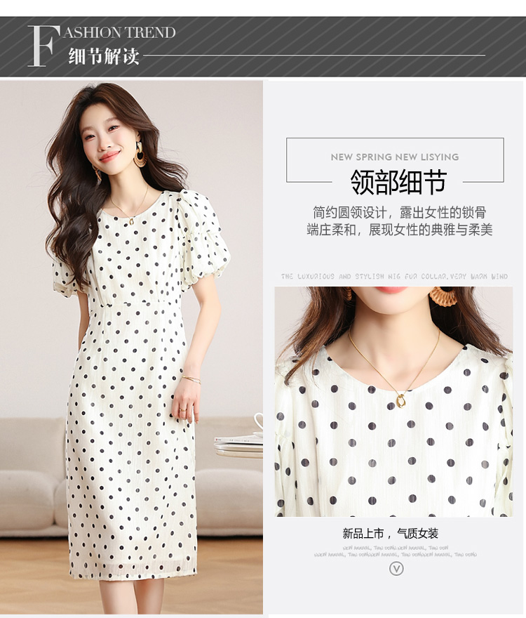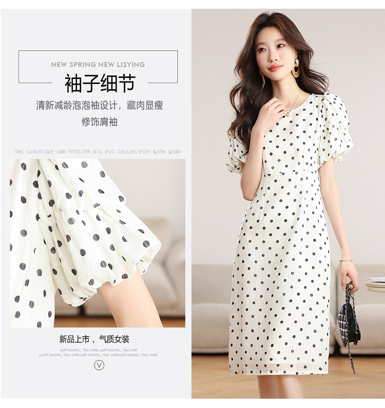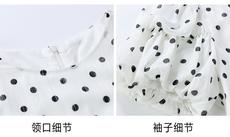 RY2824# 实拍白色波点连衣裙女夏新款雪纺法式轻奢高级感黑白圆点斑点裙子