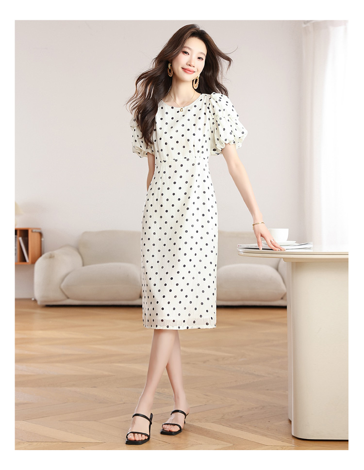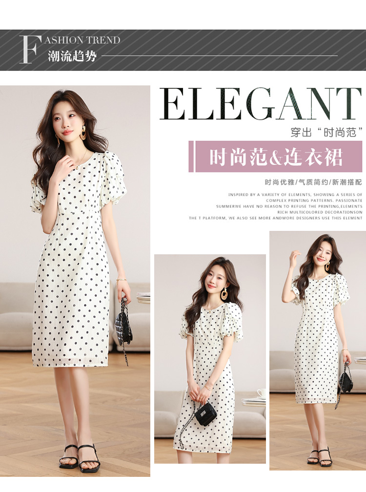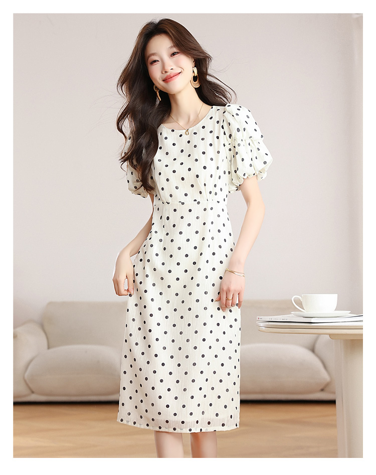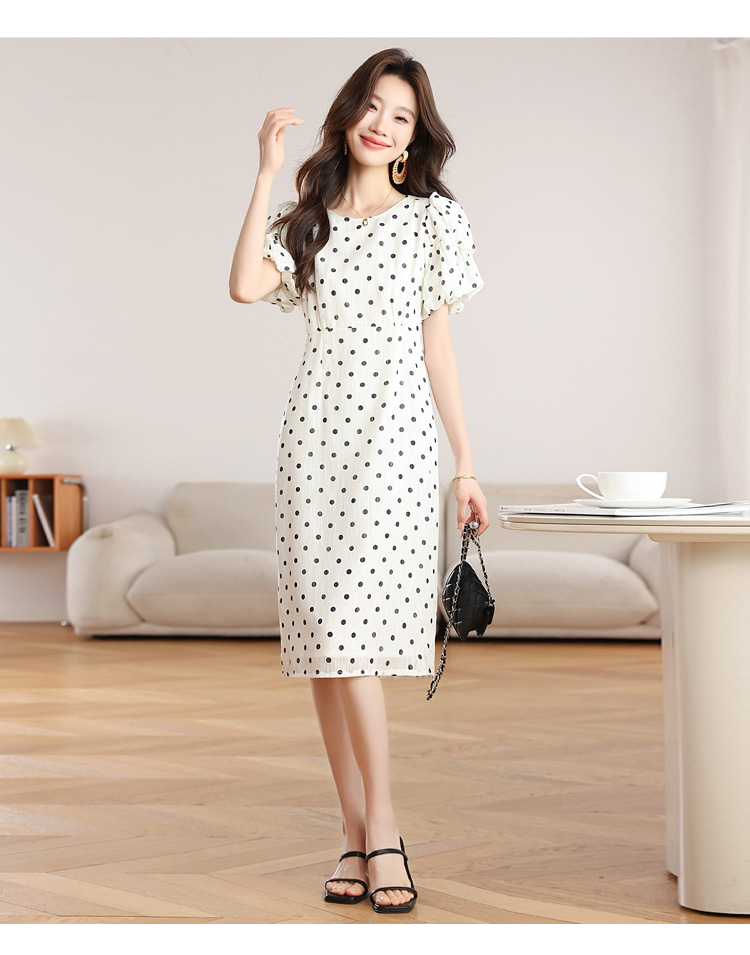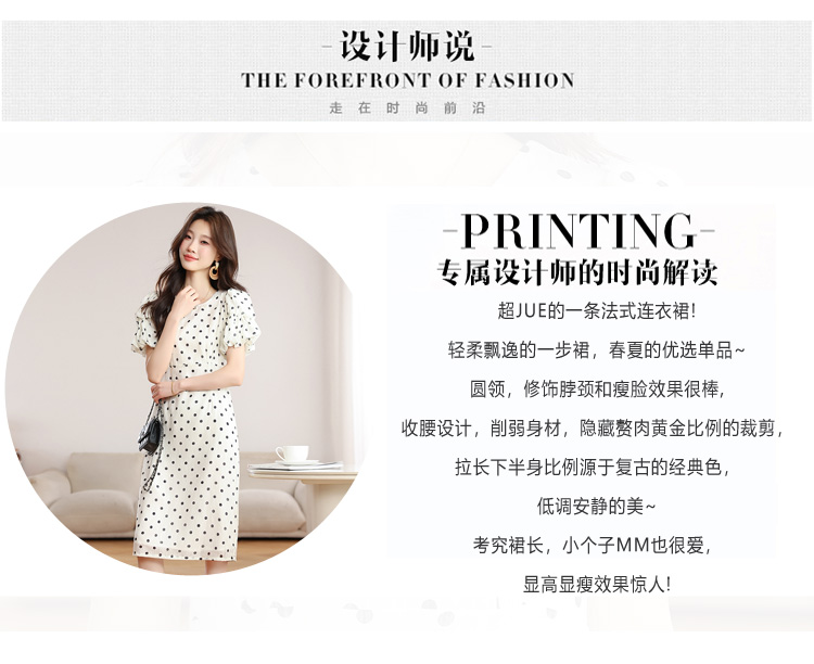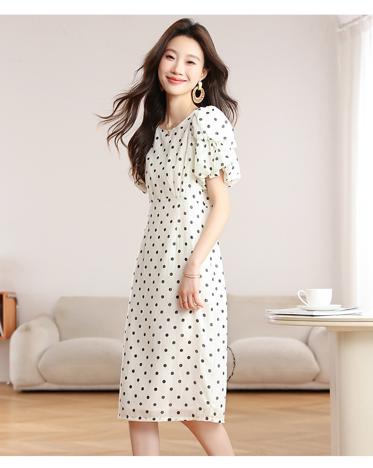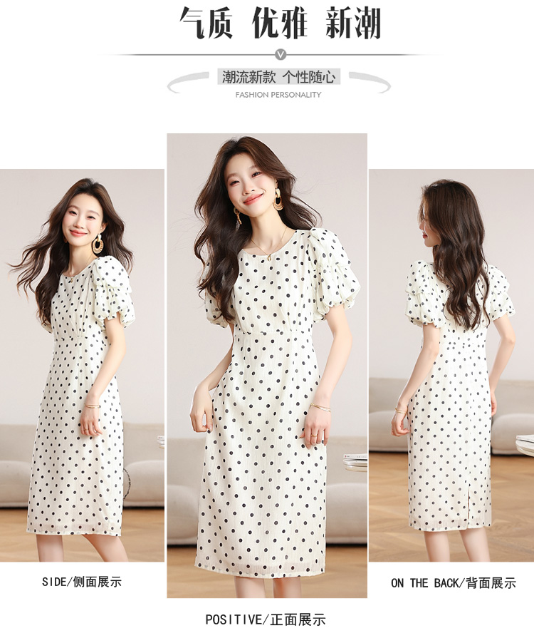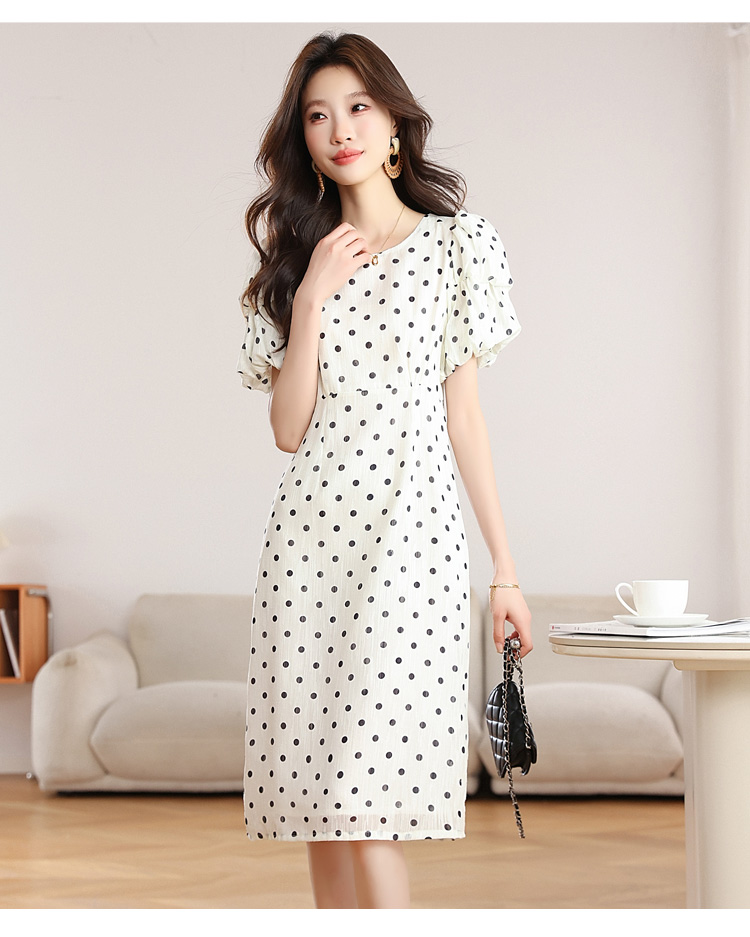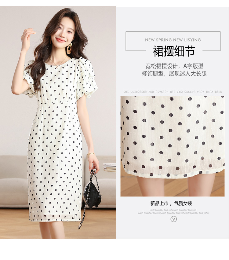 RY2824# 实拍白色波点连衣裙女夏新款雪纺法式轻奢高级感黑白圆点斑点裙子