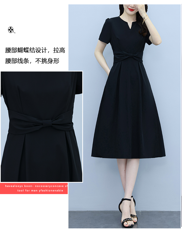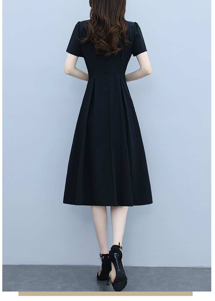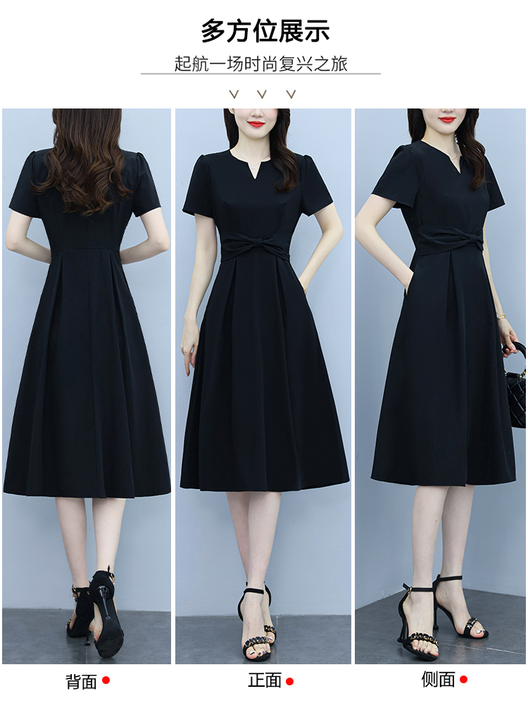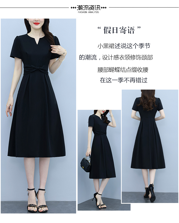 RY2825# 沐沐衣品夏季新款显瘦气质时尚小黑裙法式小众收腰赫本风连衣裙