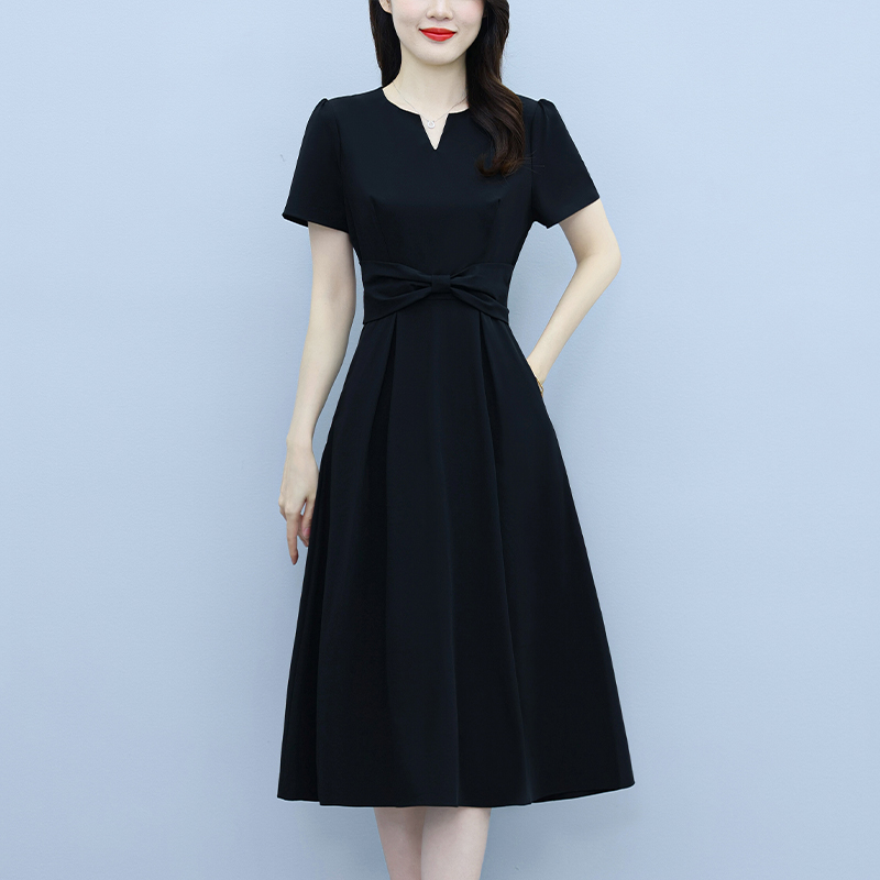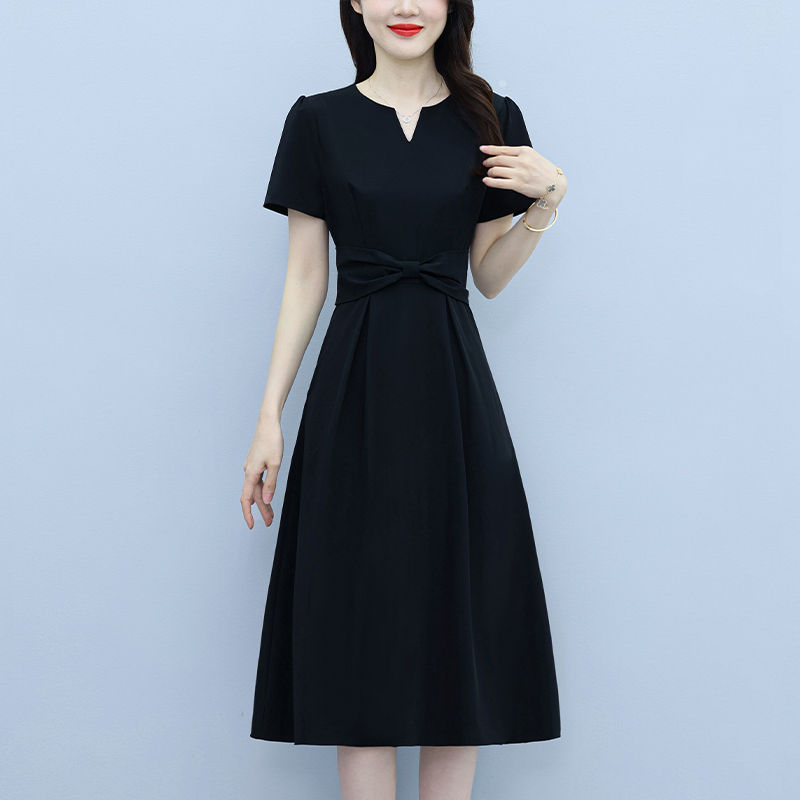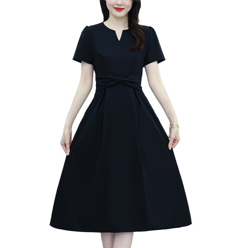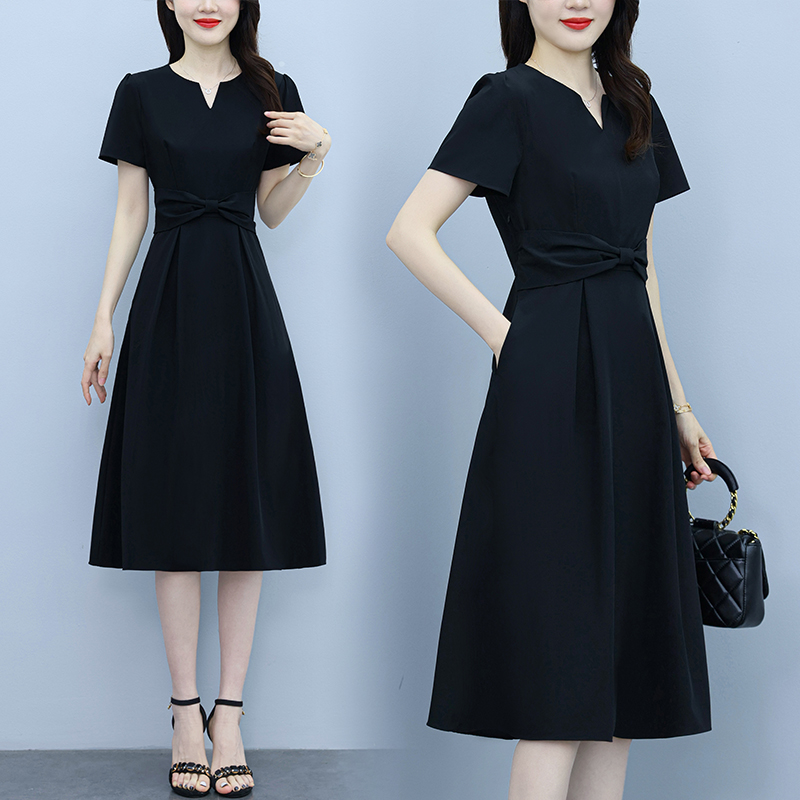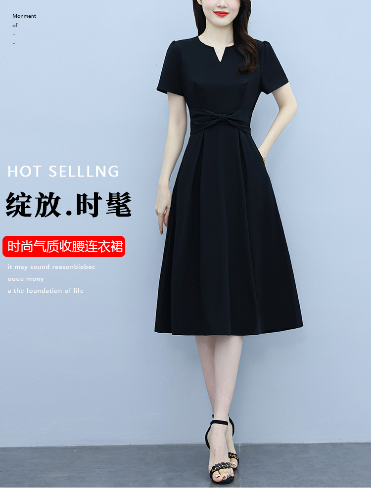 RY2825# 沐沐衣品夏季新款显瘦气质时尚小黑裙法式小众收腰赫本风连衣裙
