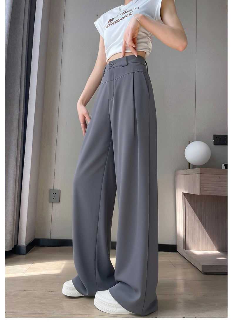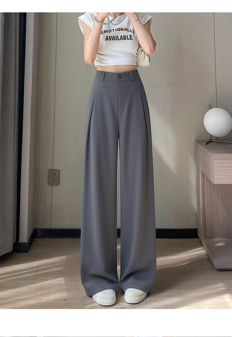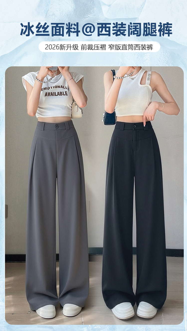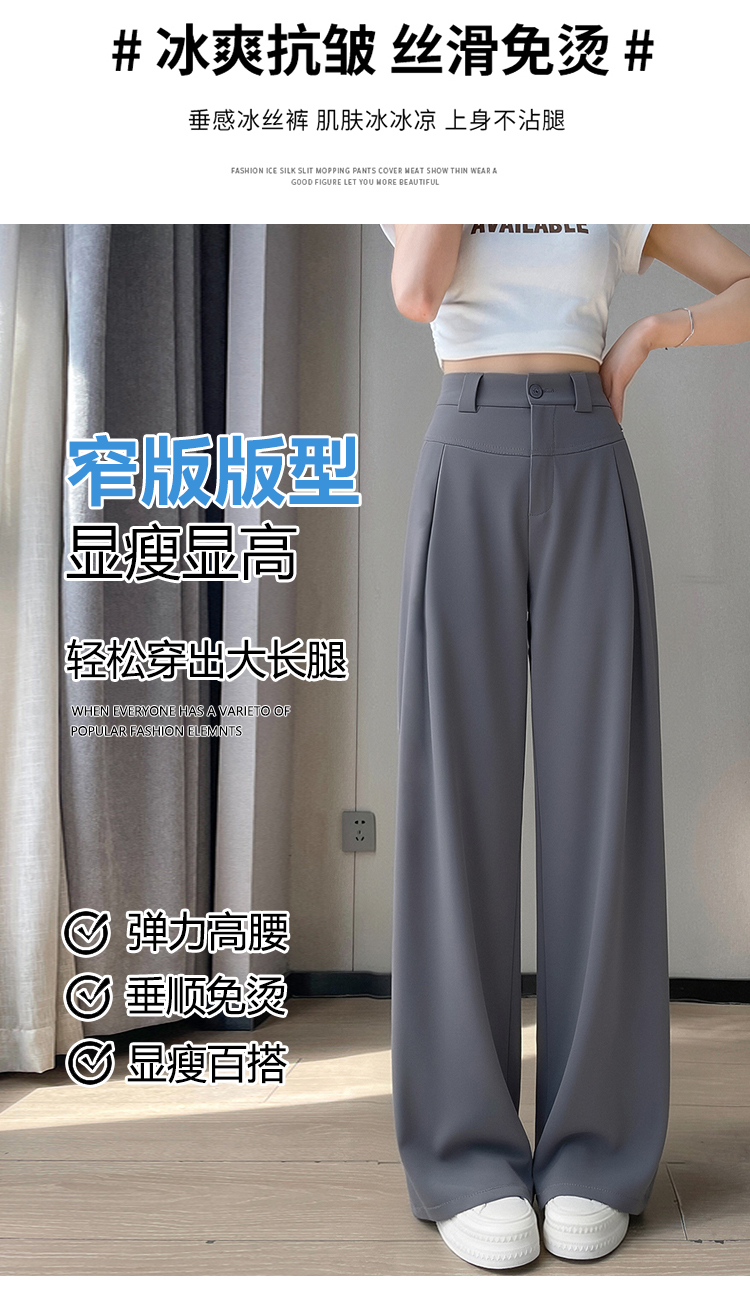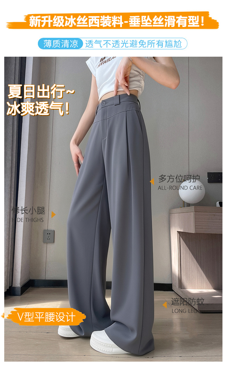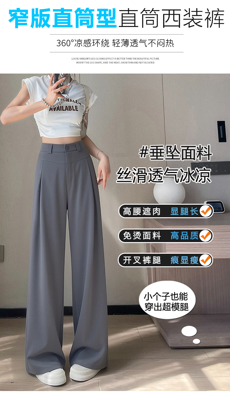 RY2868# 灰色西装裤女夏季薄款高腰显瘦高级感垂感西裤冰丝窄版直筒阔腿裤