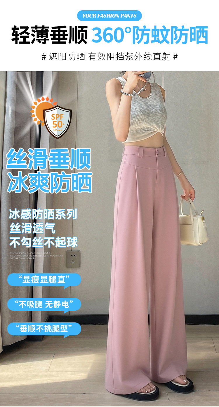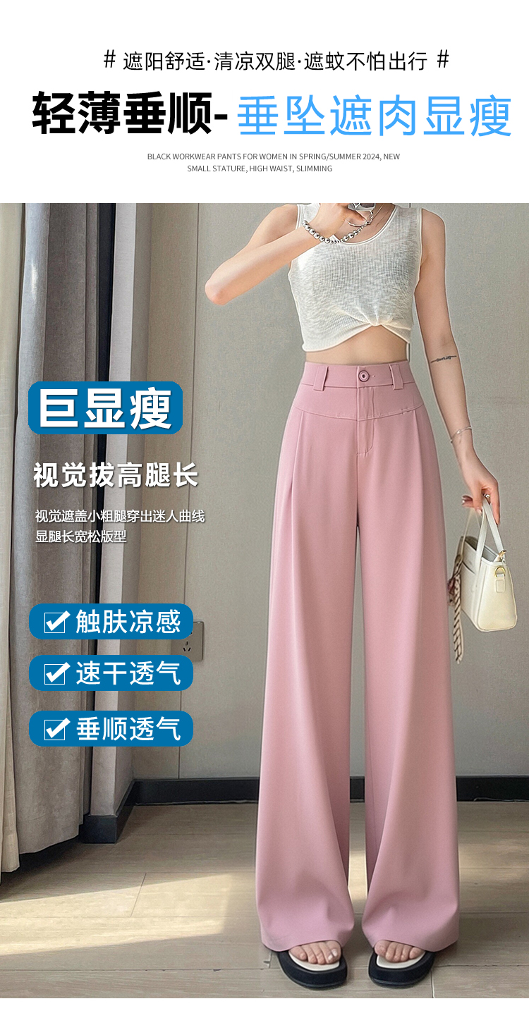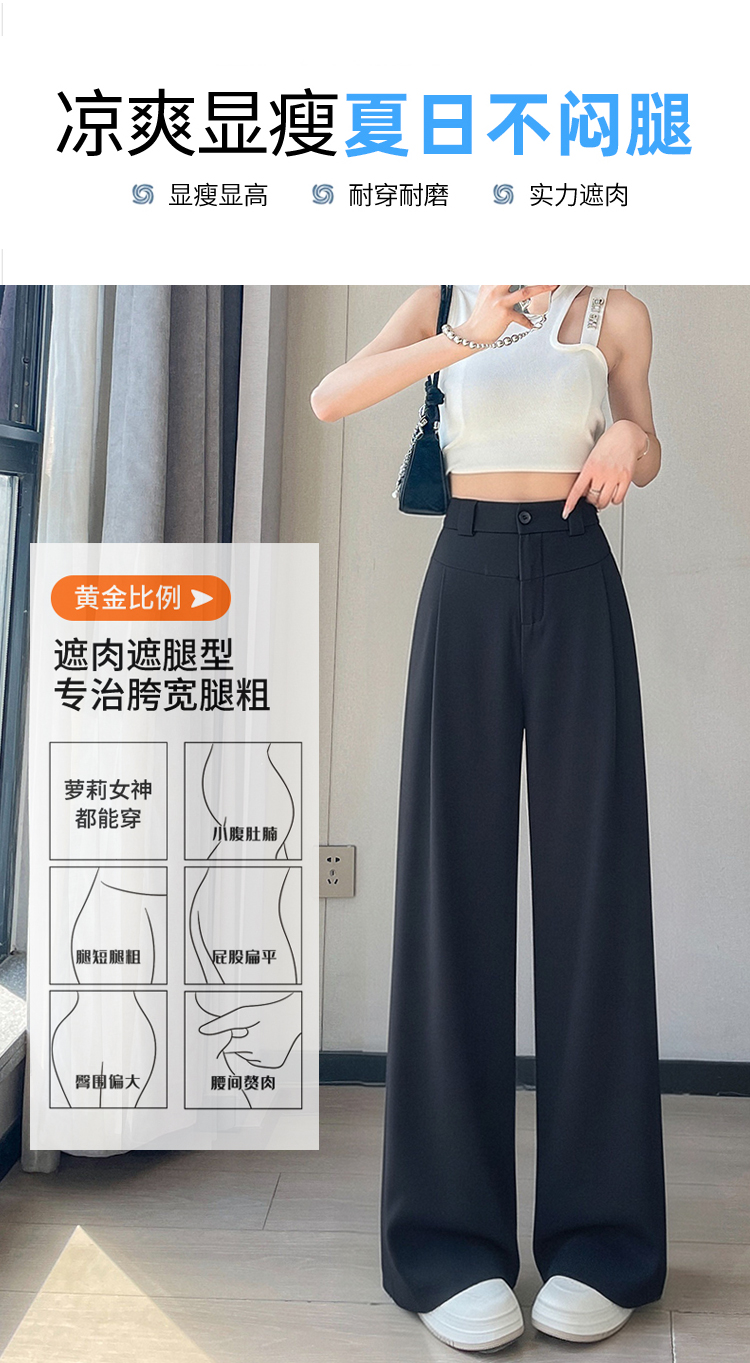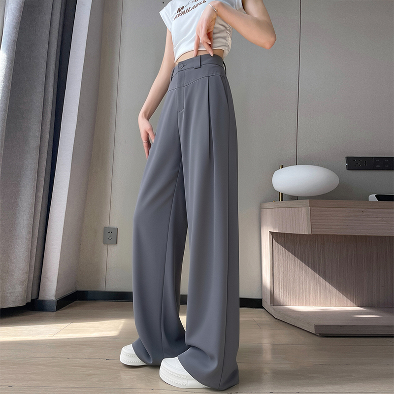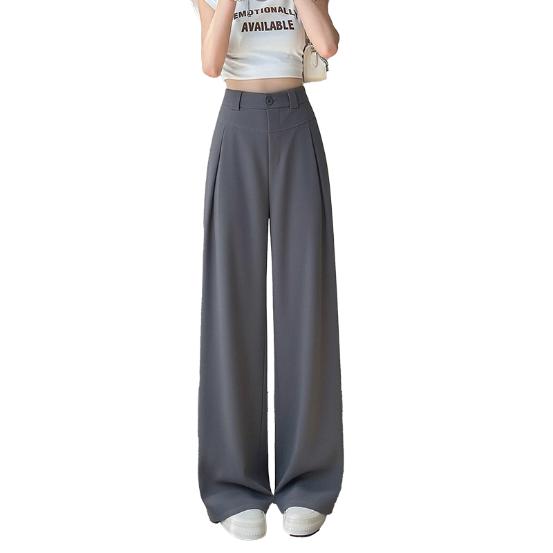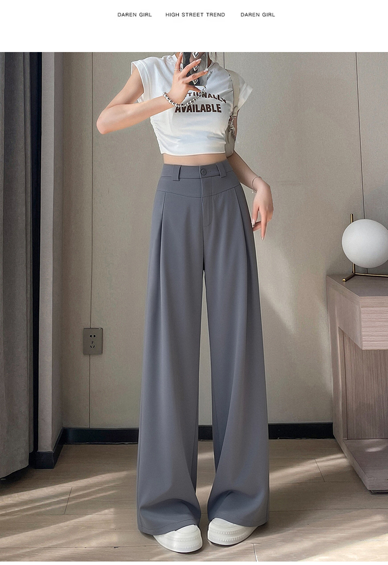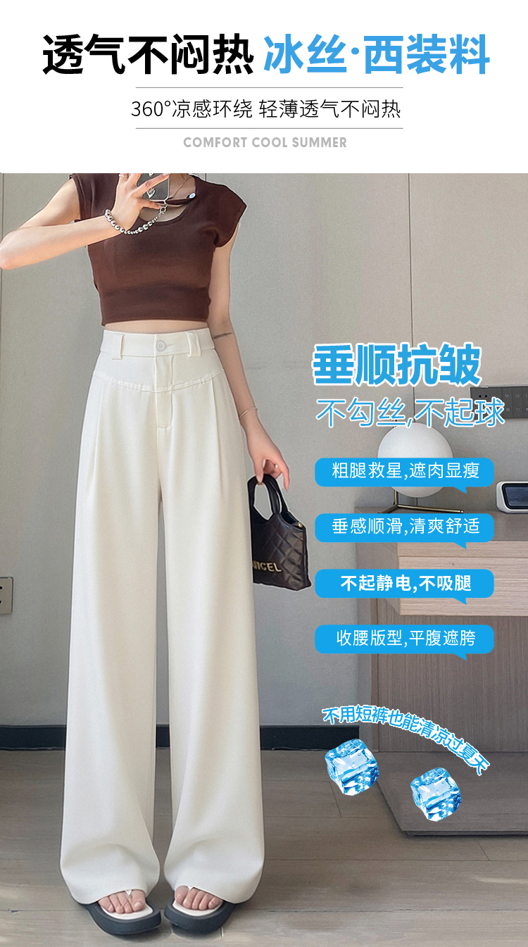 RY2868# 灰色西装裤女夏季薄款高腰显瘦高级感垂感西裤冰丝窄版直筒阔腿裤