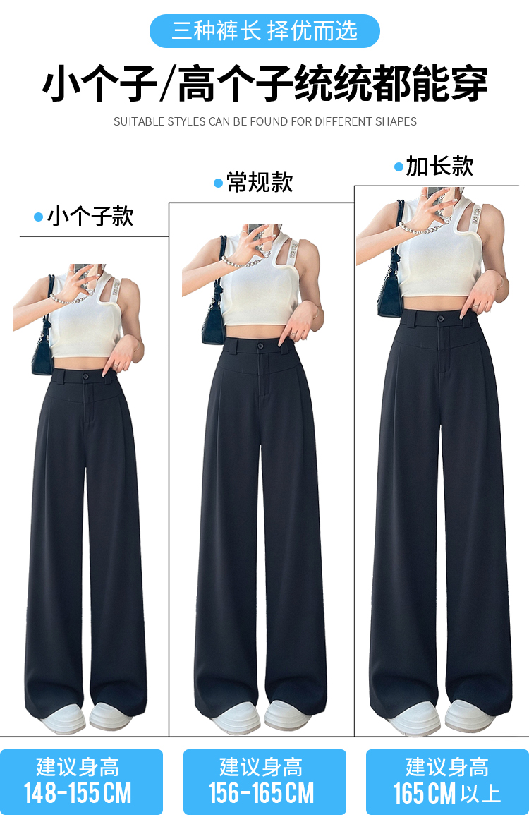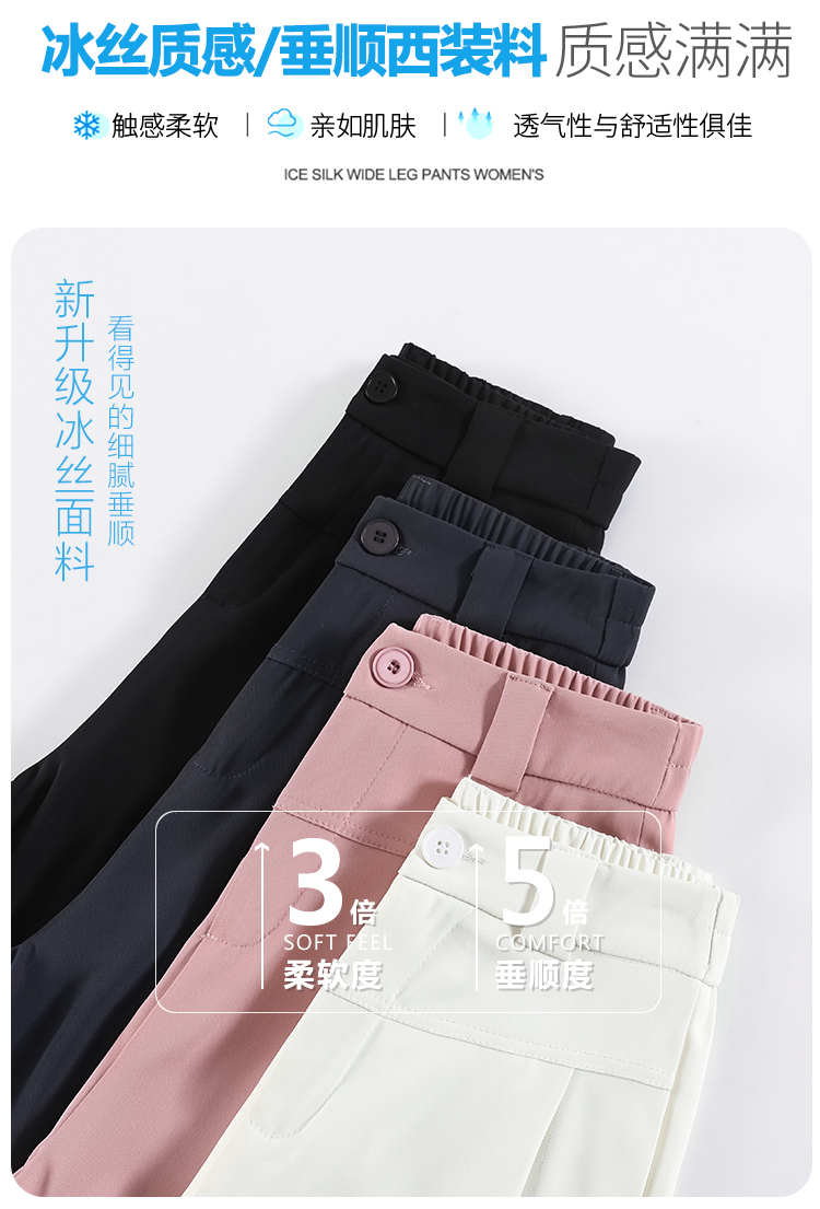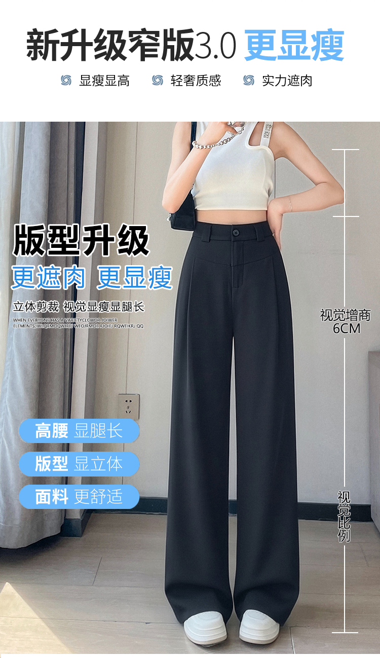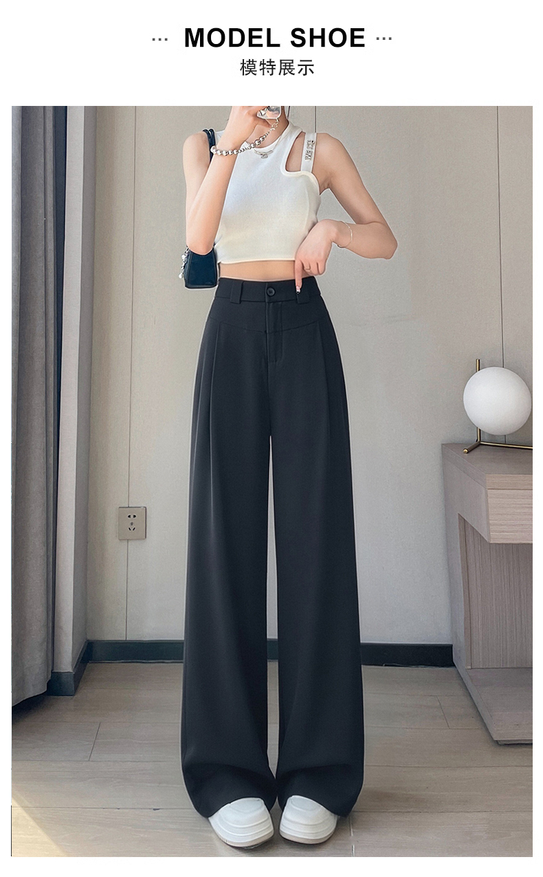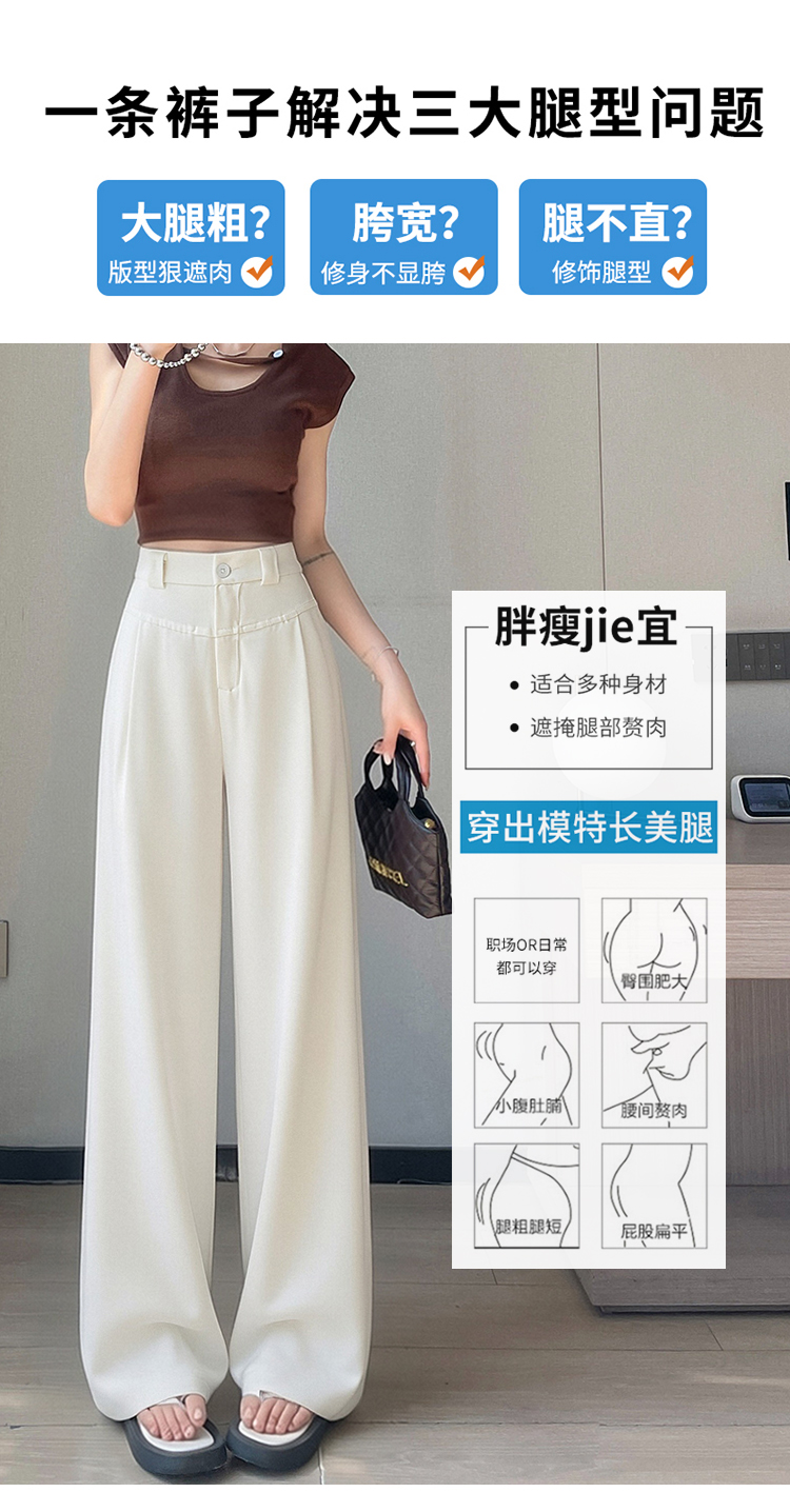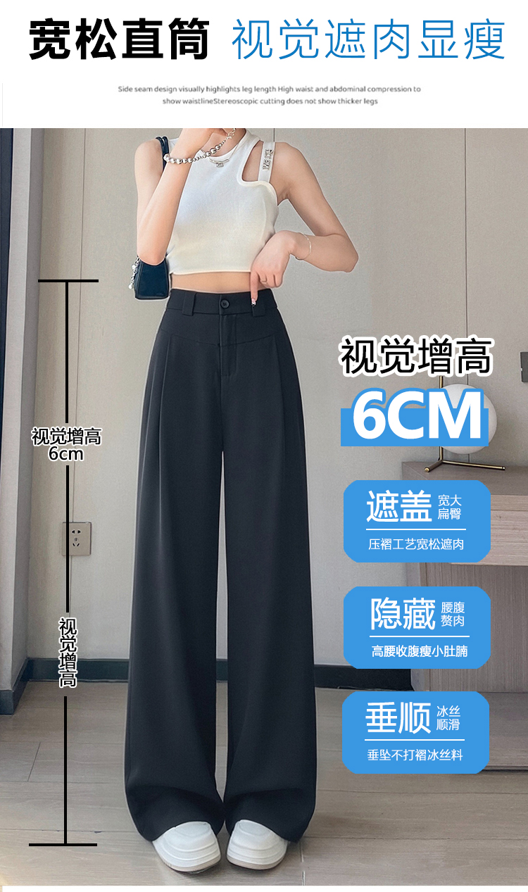 RY2868# 灰色西装裤女夏季薄款高腰显瘦高级感垂感西裤冰丝窄版直筒阔腿裤
