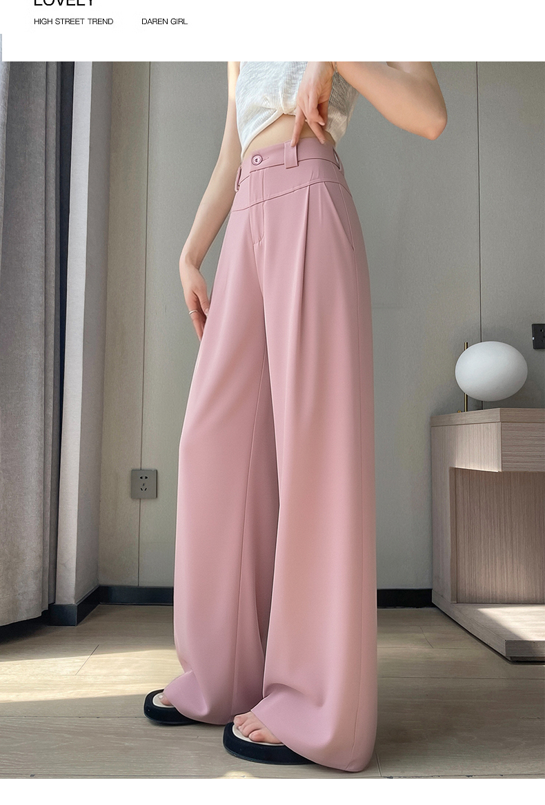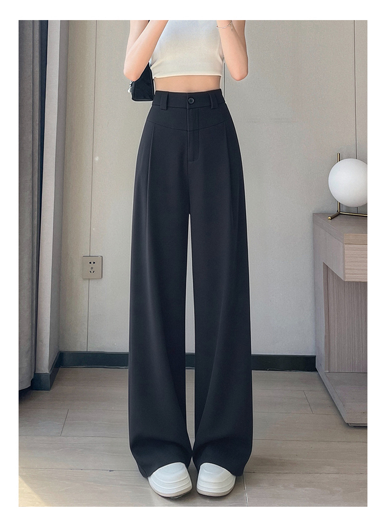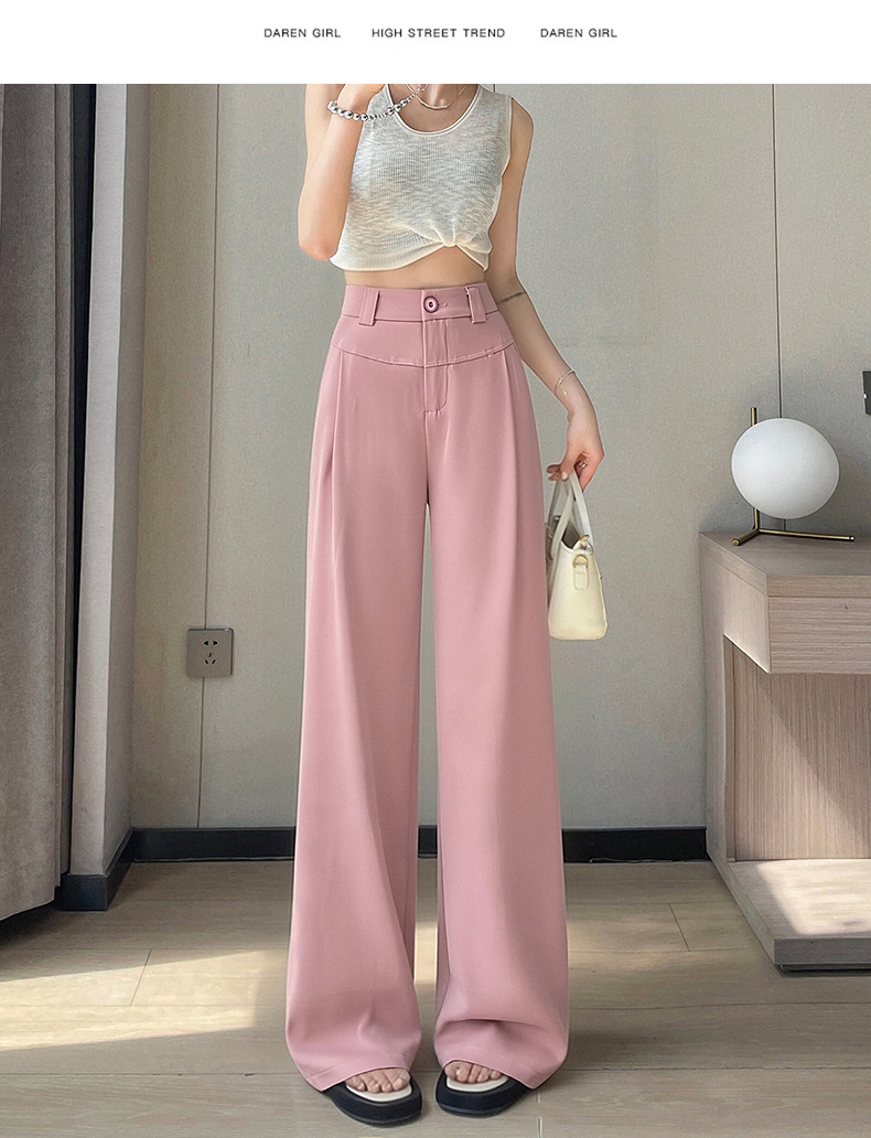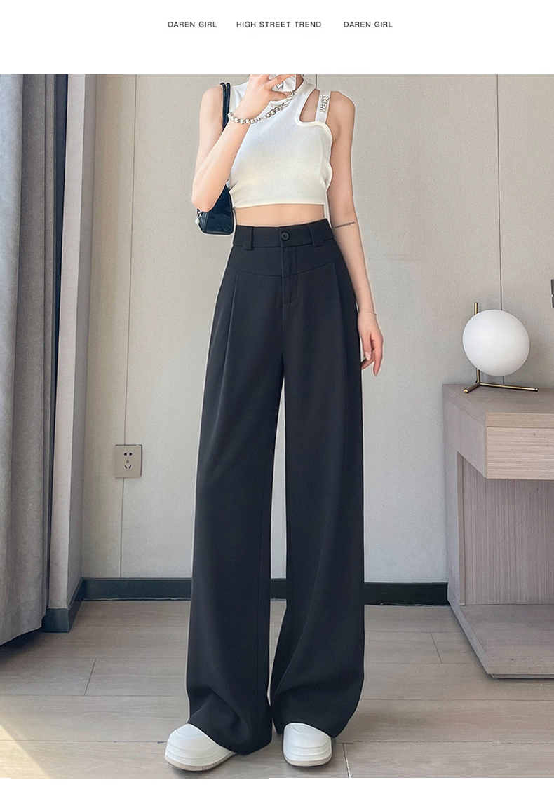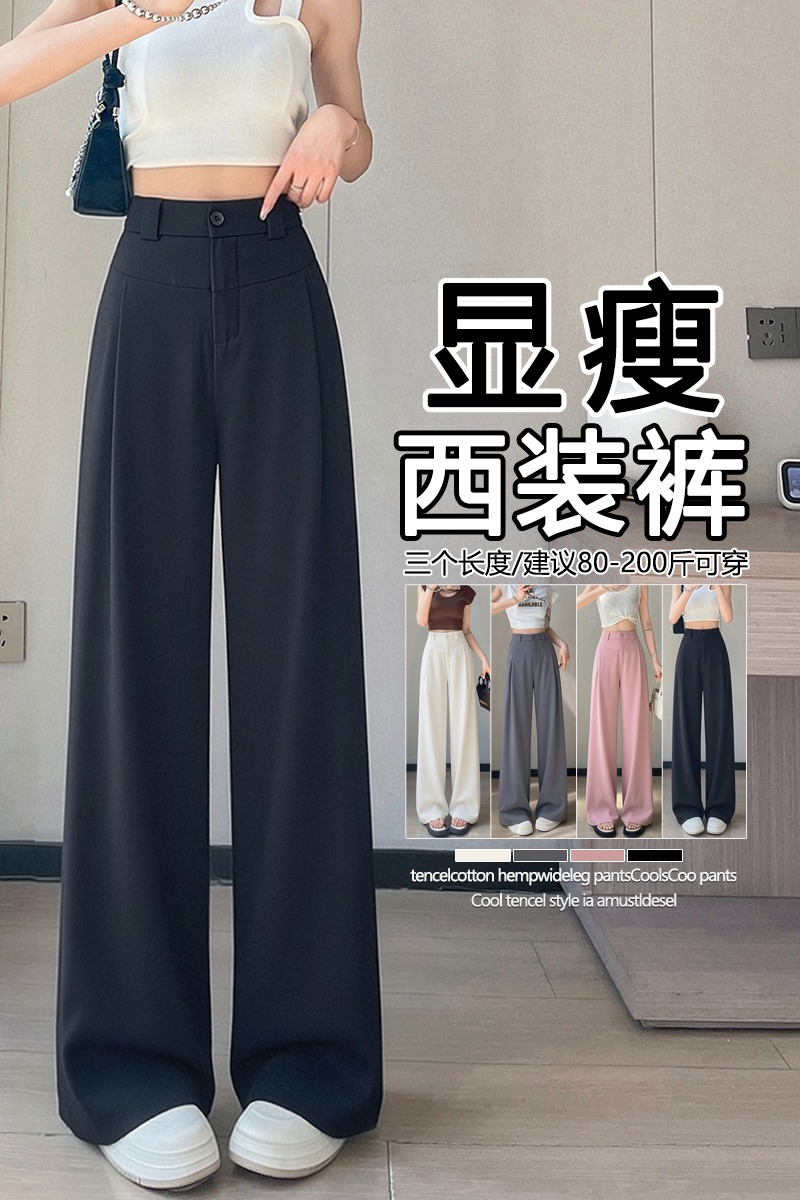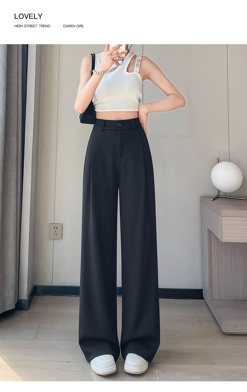 RY2868# 灰色西装裤女夏季薄款高腰显瘦高级感垂感西裤冰丝窄版直筒阔腿裤