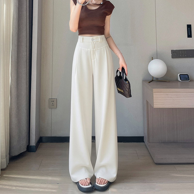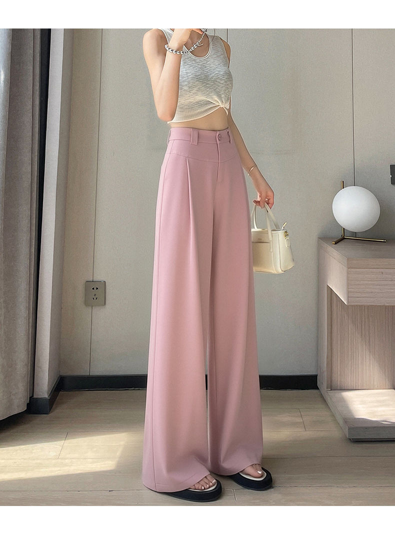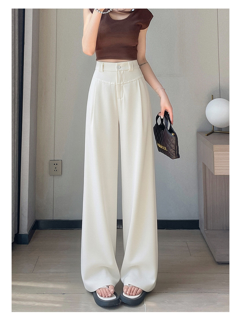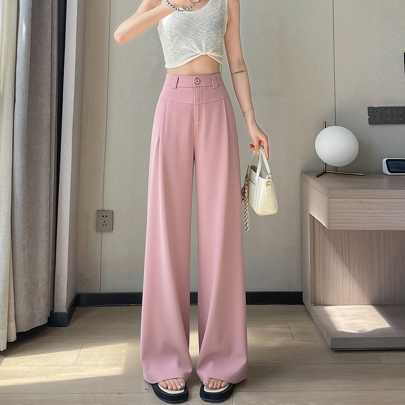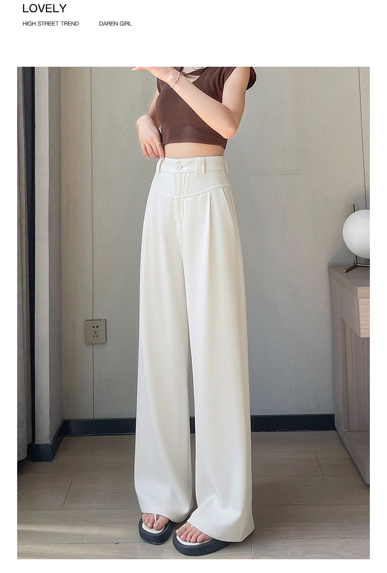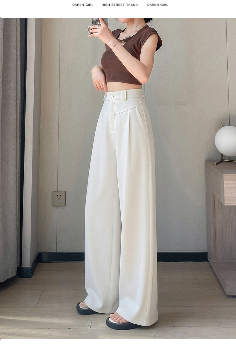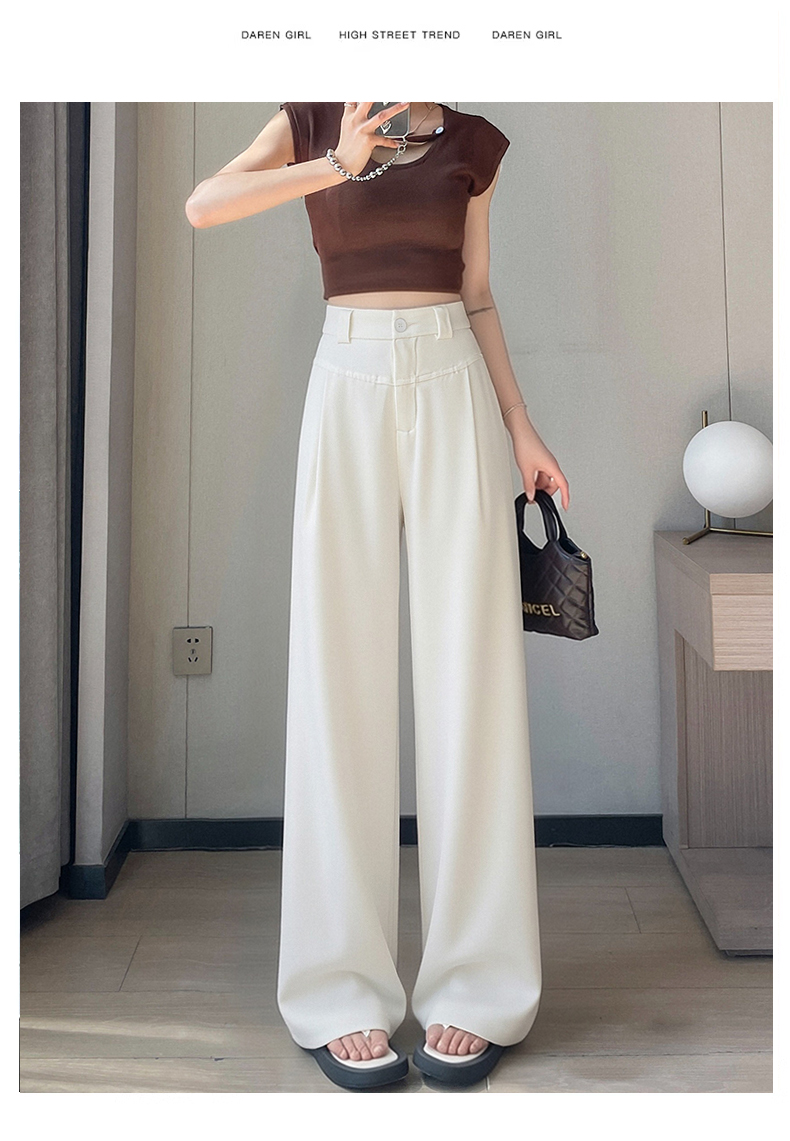RY2868# 灰色西装裤女夏季薄款高腰显瘦高级感垂感西裤冰丝窄版直筒阔腿裤