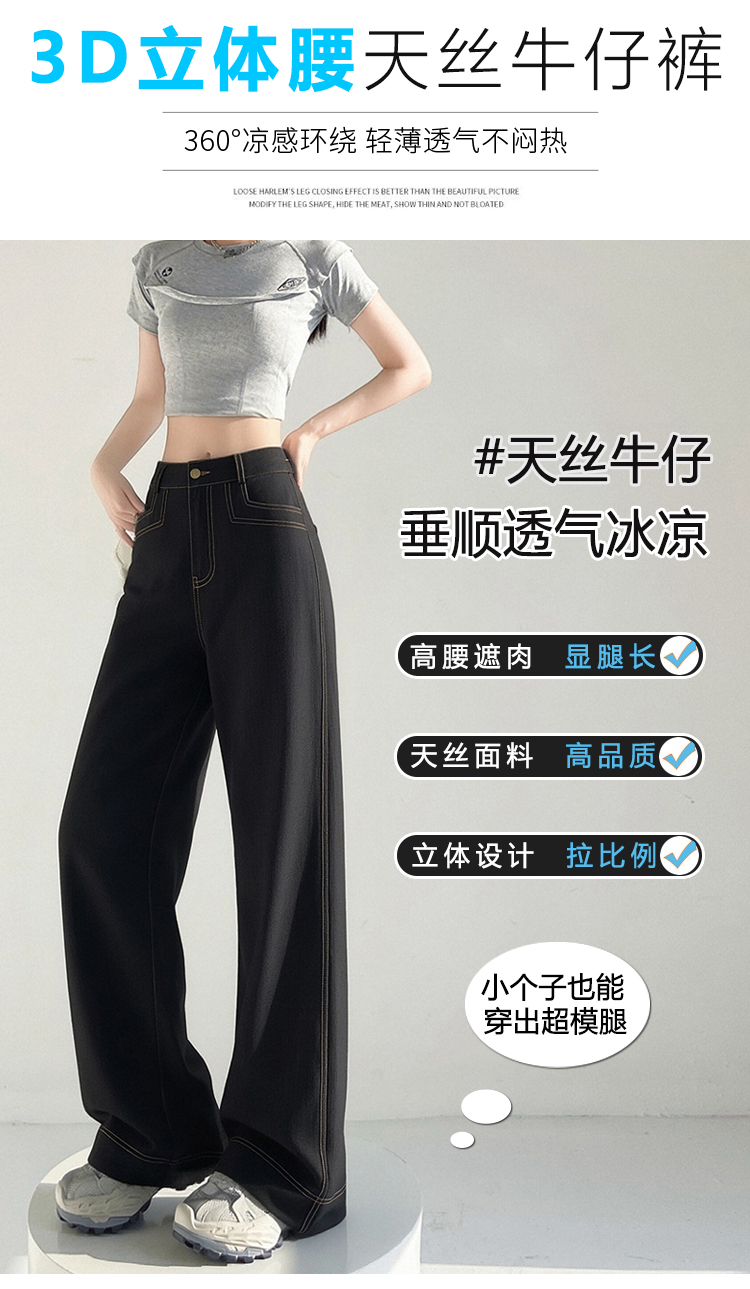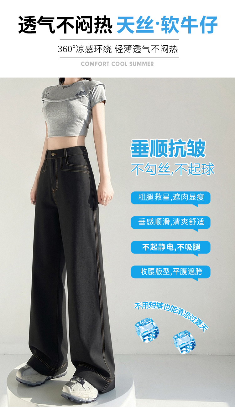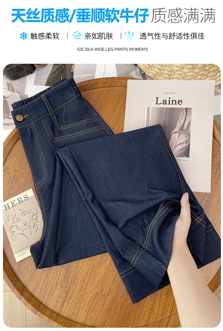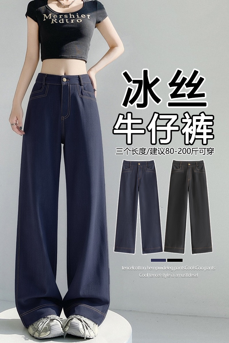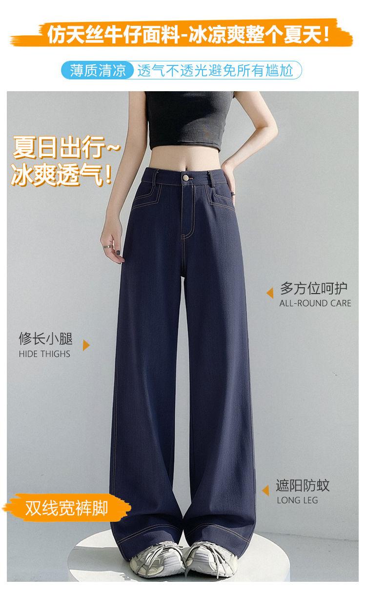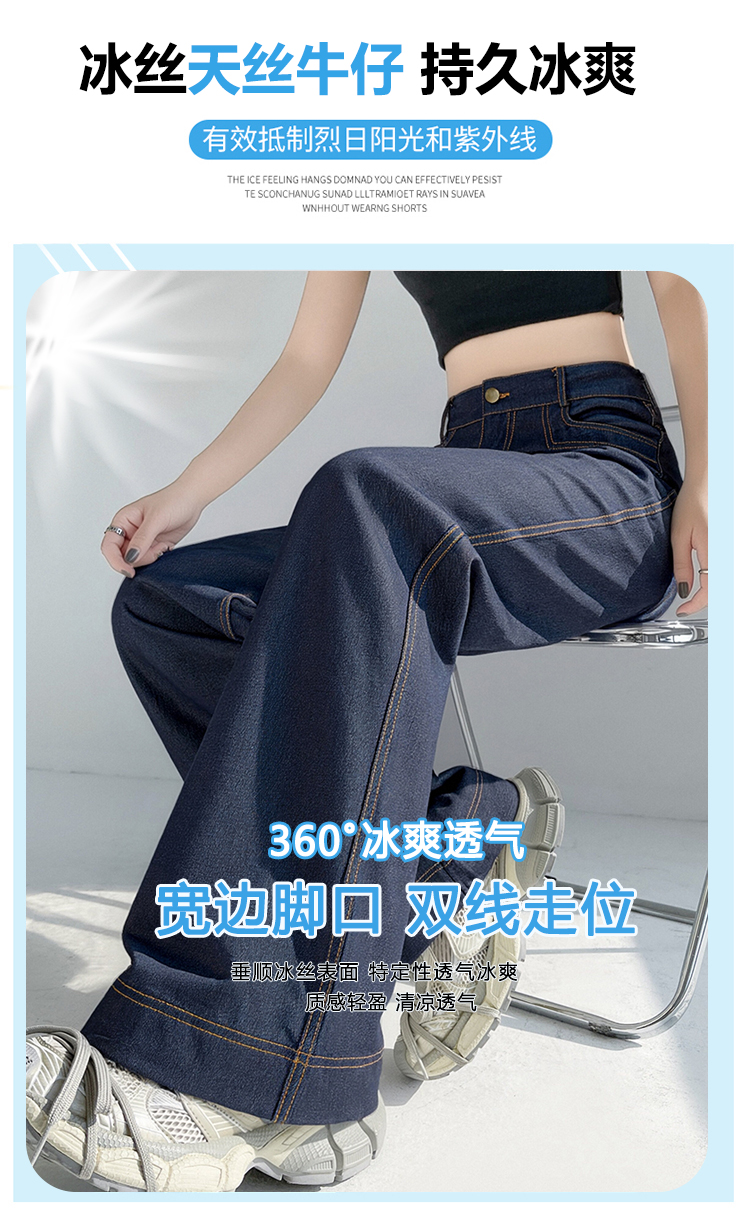 RY2871# 实拍 牛仔裤女夏季薄款新款垂感天丝冰丝夏天裤子大码直筒阔腿裤