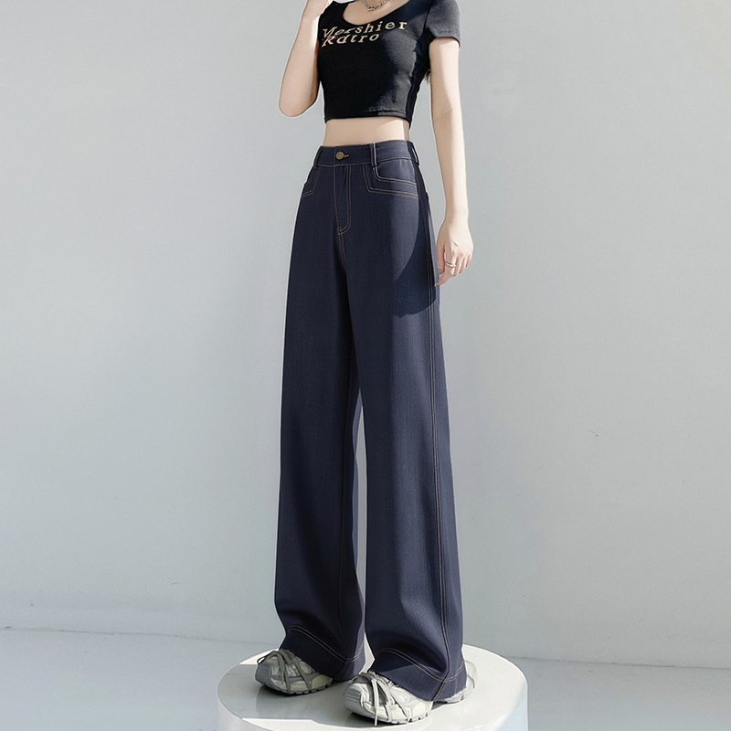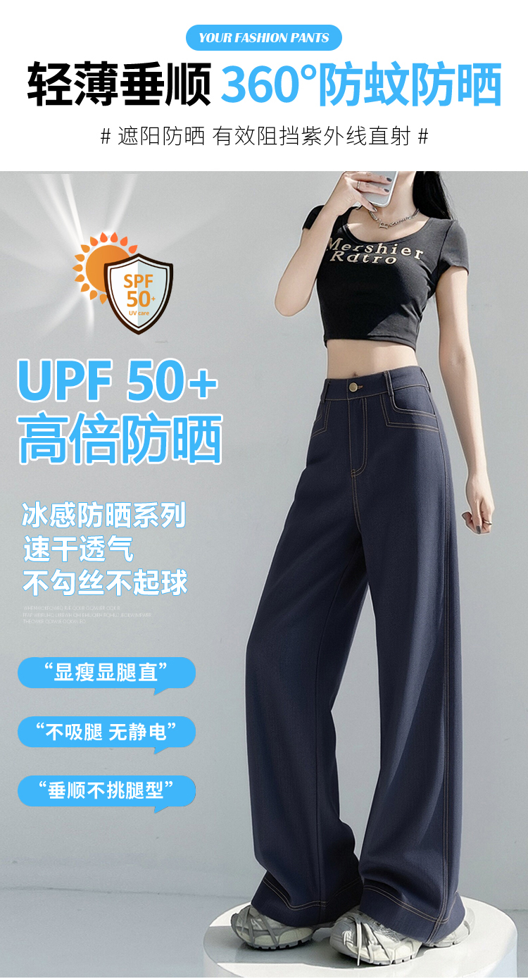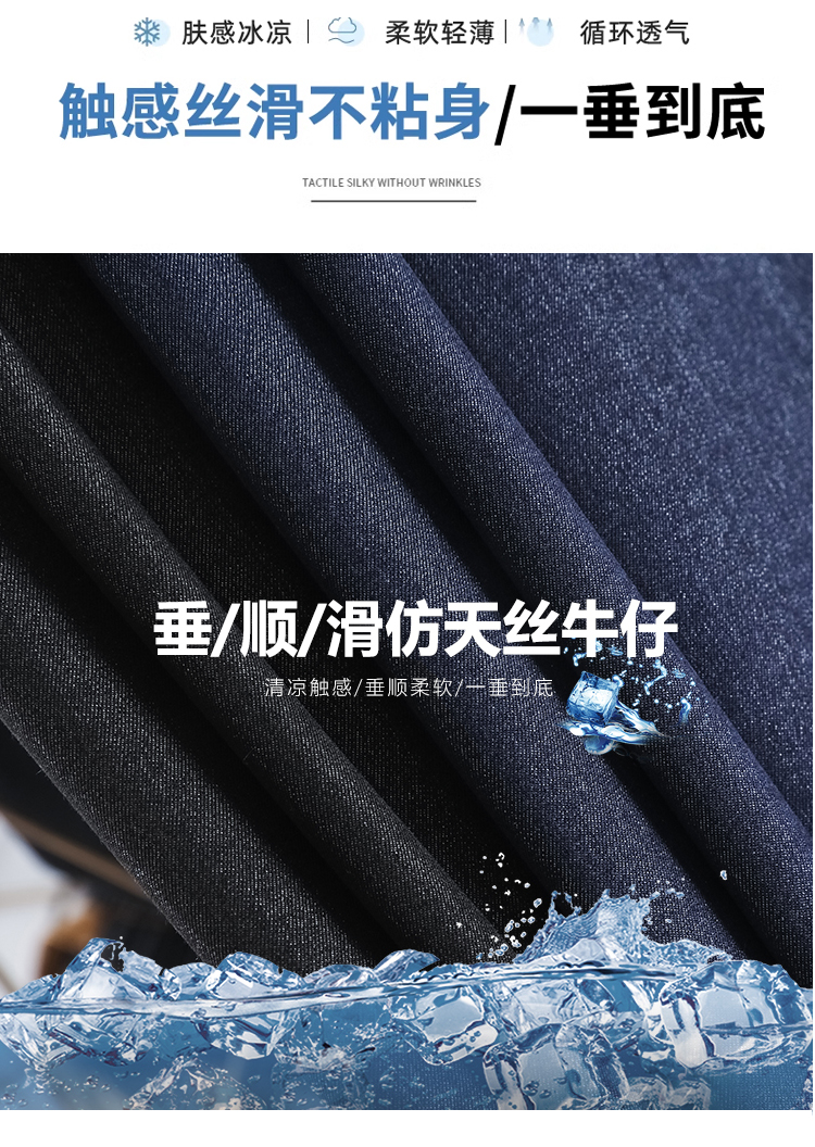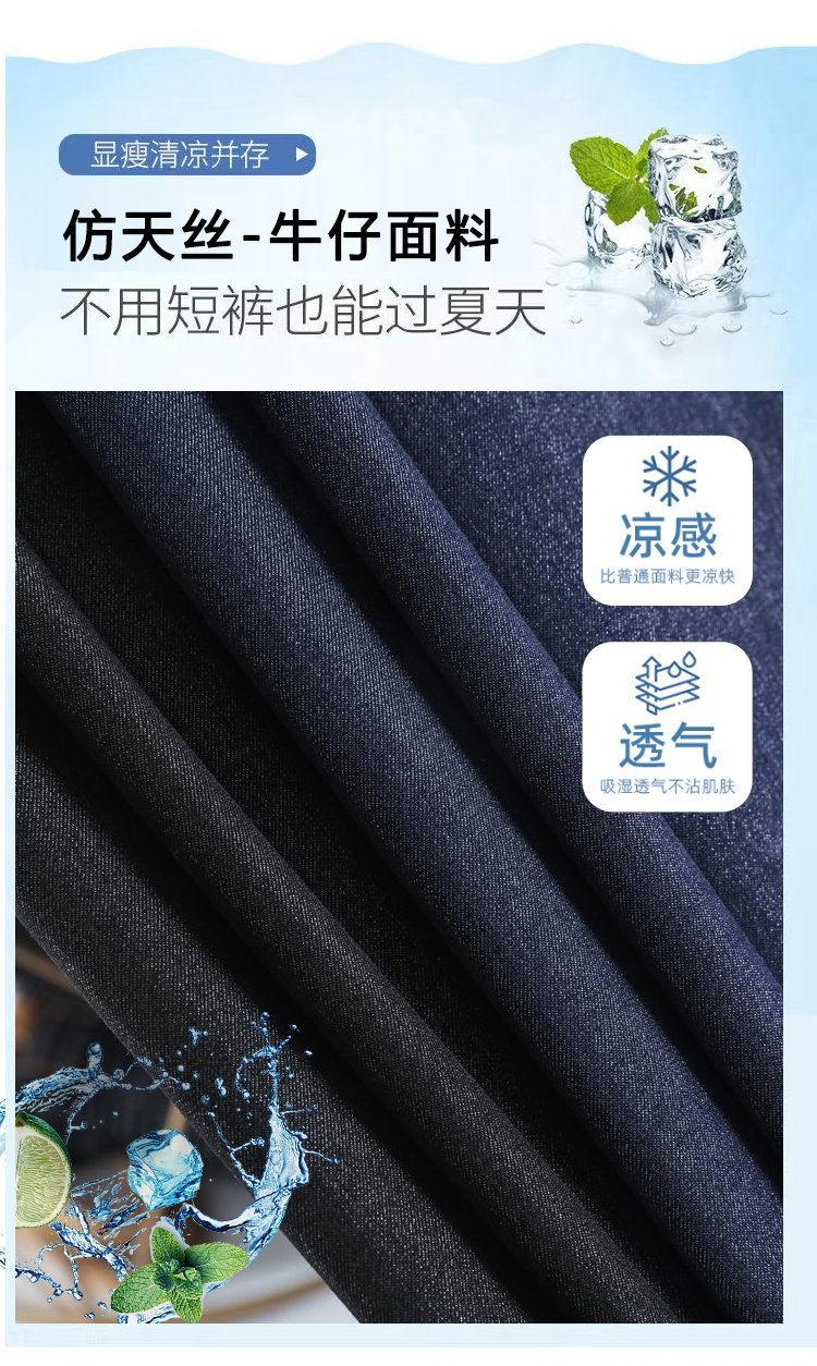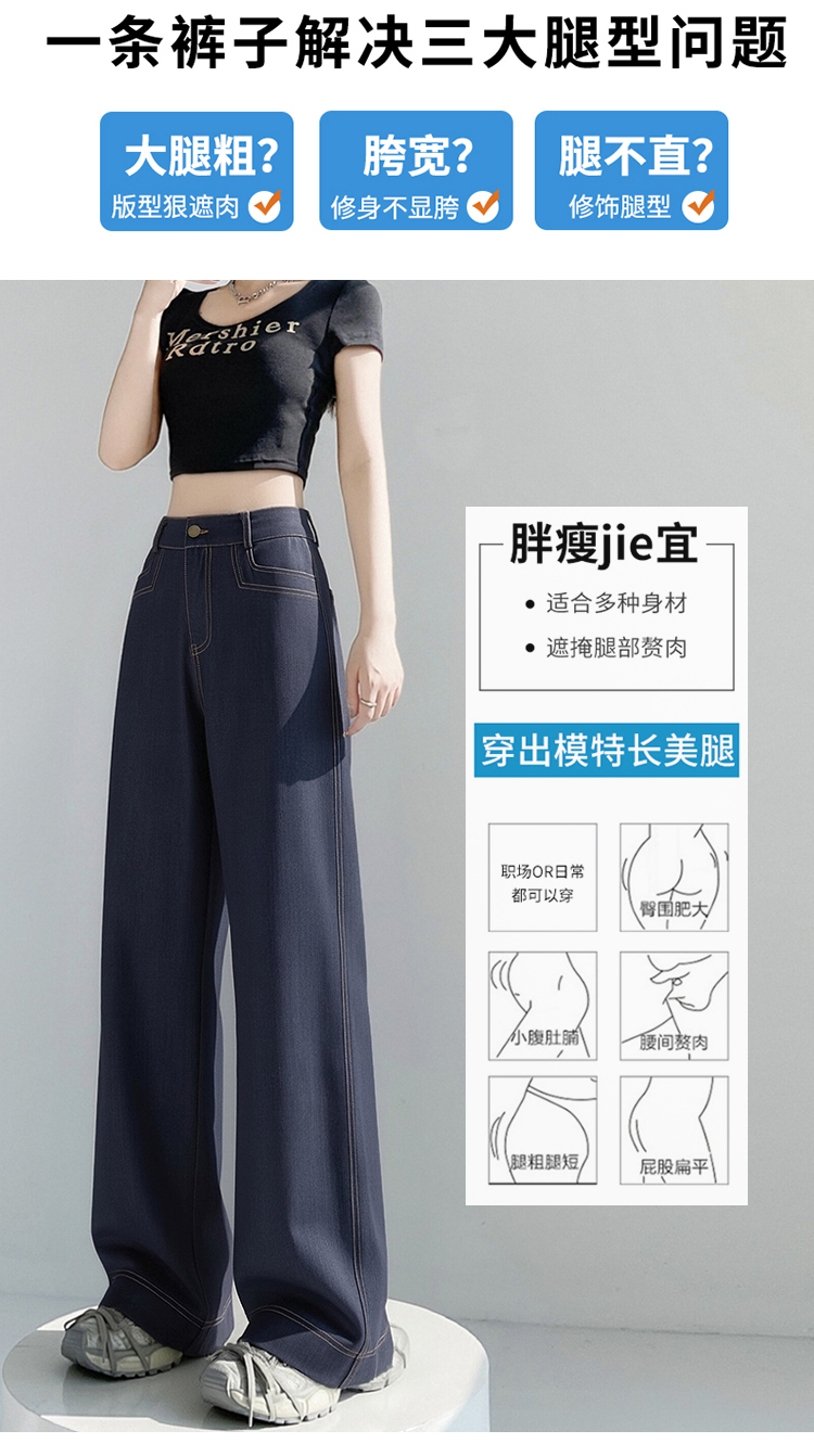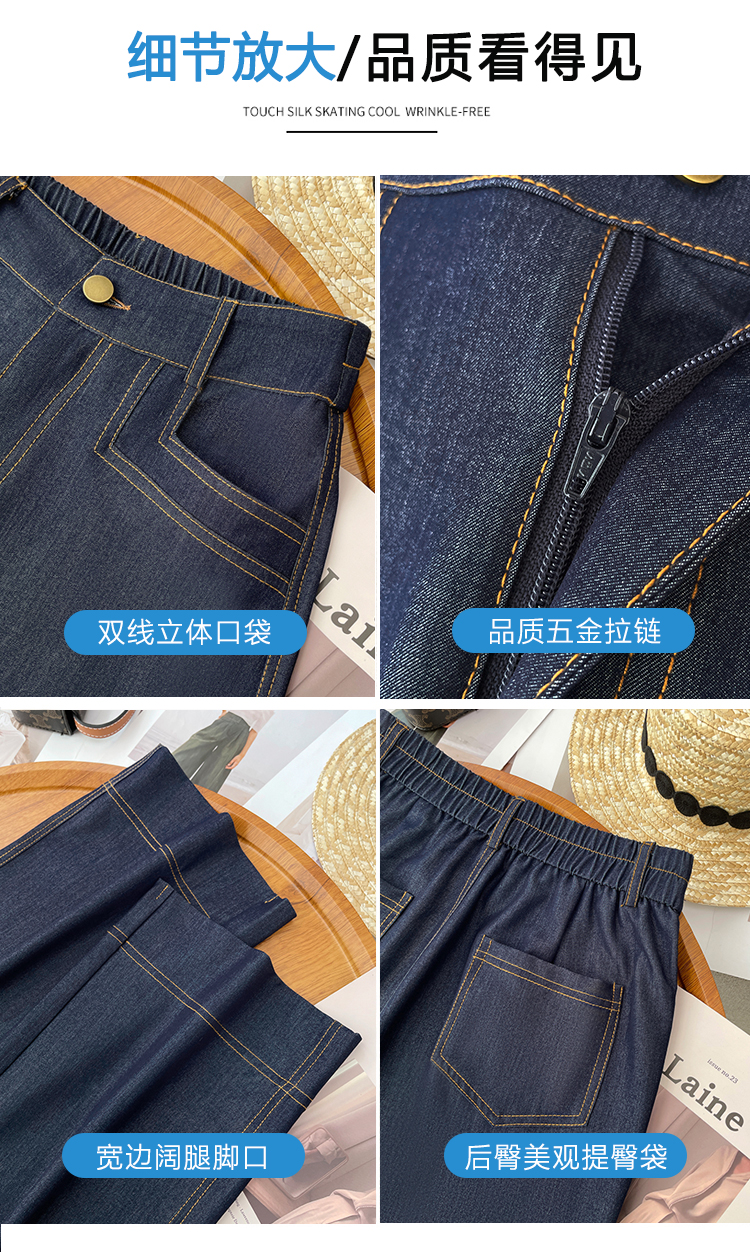 RY2871# 实拍 牛仔裤女夏季薄款新款垂感天丝冰丝夏天裤子大码直筒阔腿裤